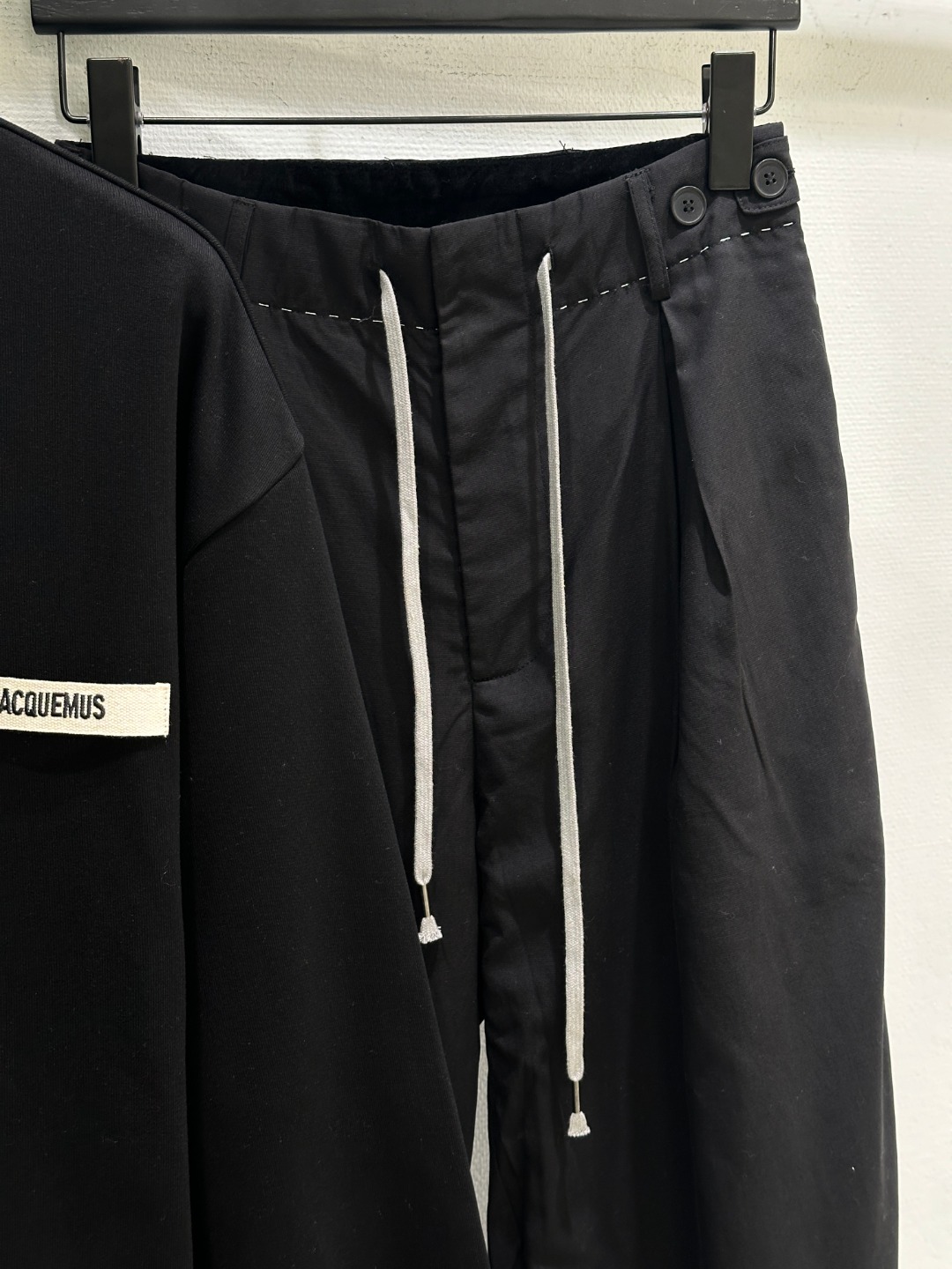 Details: Autumn casual pants with drawstring waist, excellent drape, black color, custom-made, fine workmanship