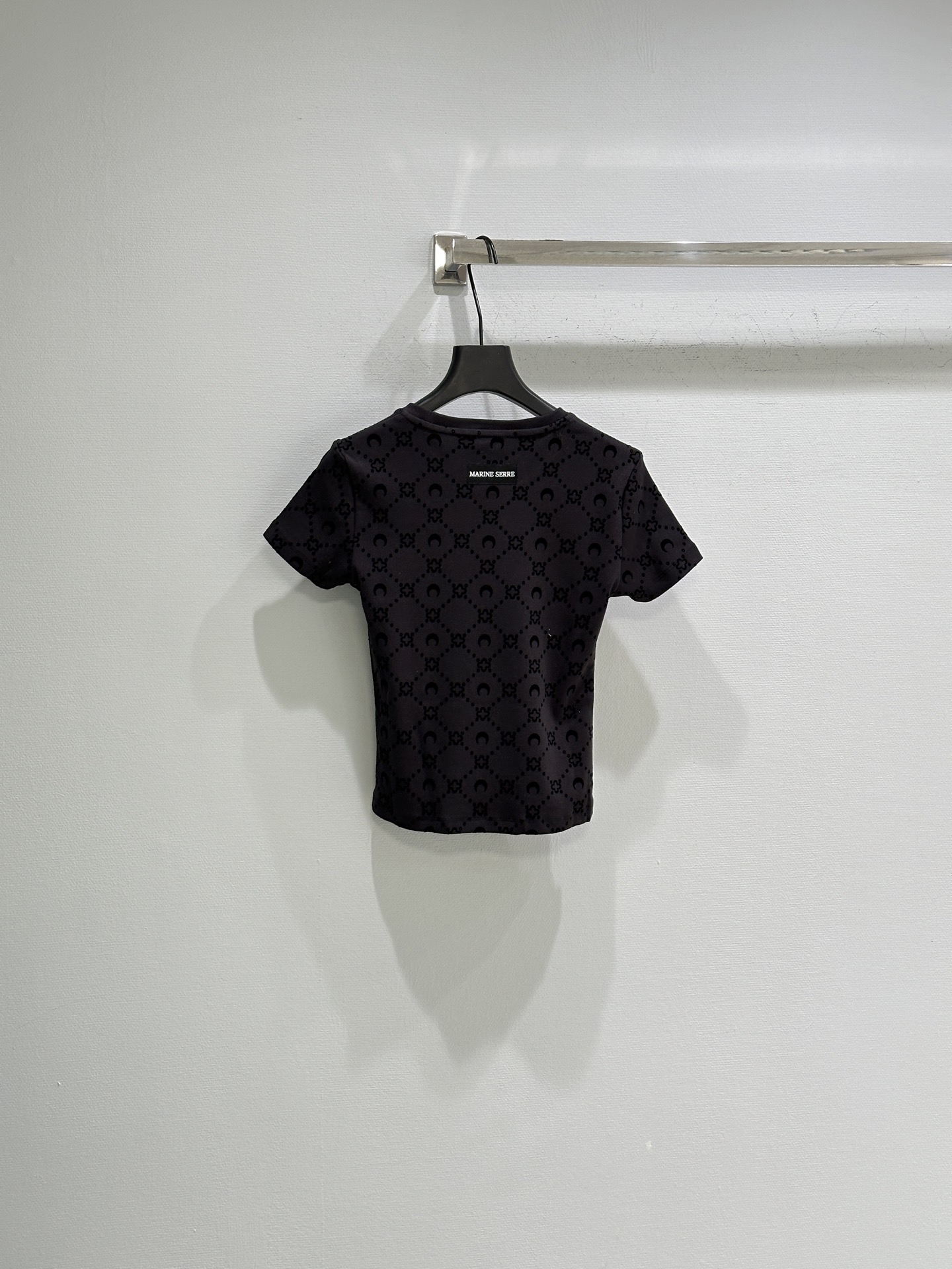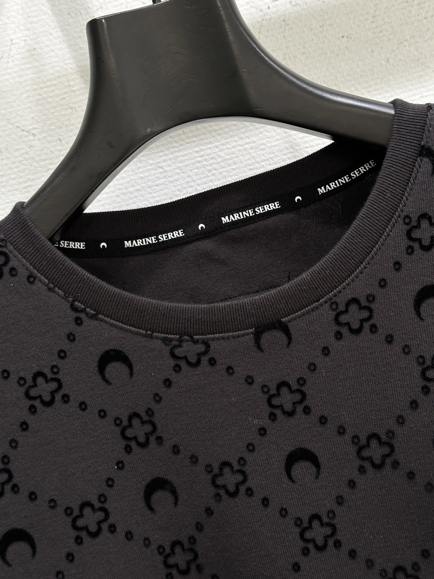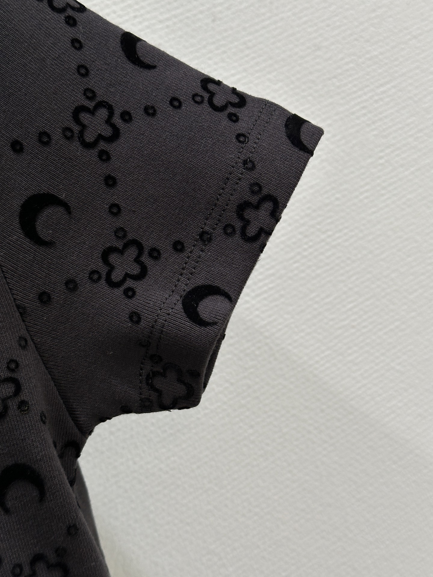 Details: Early spring Dark purple flocked short-sleeved T-shirt with moon patterns, available in SML.