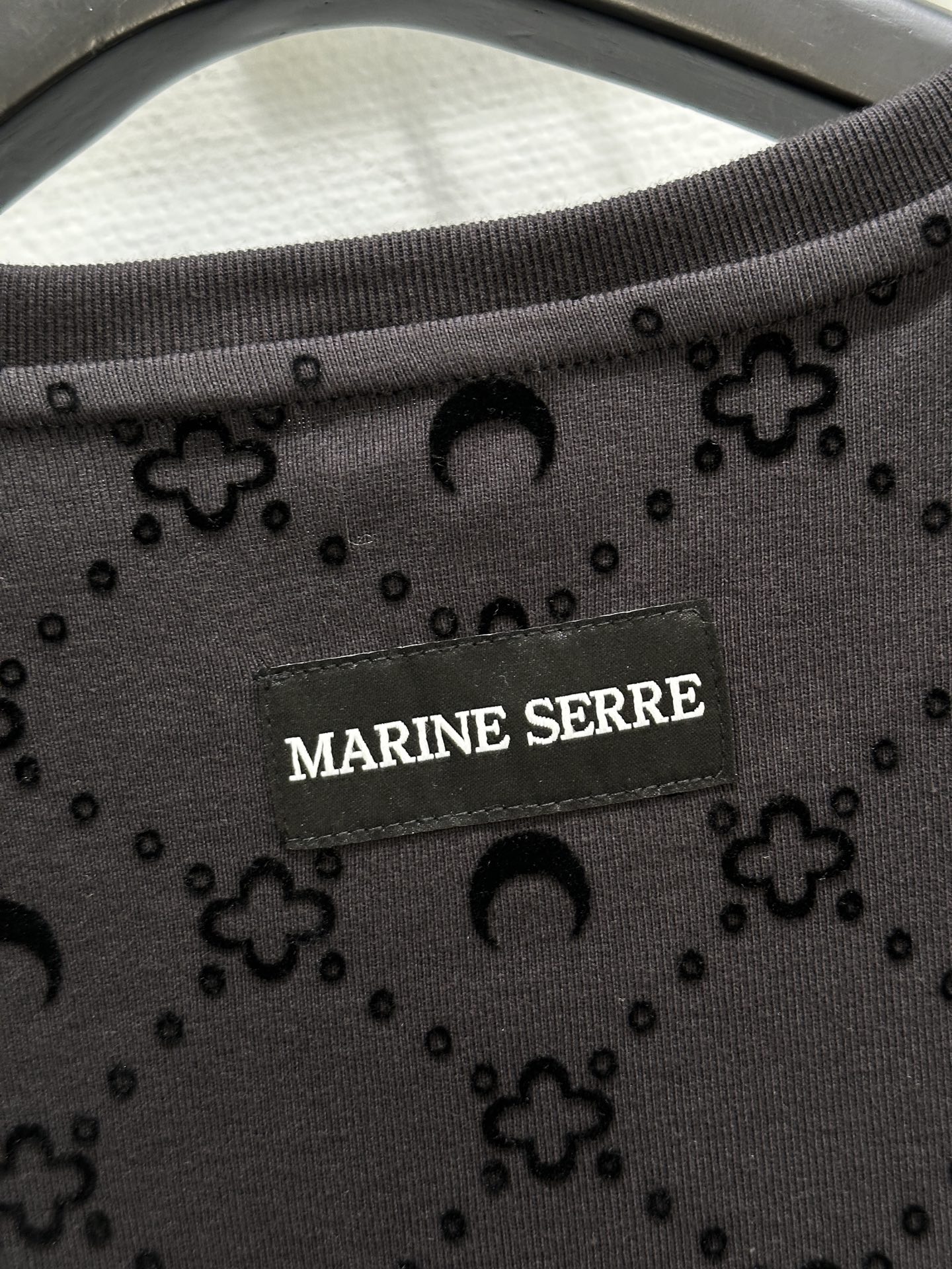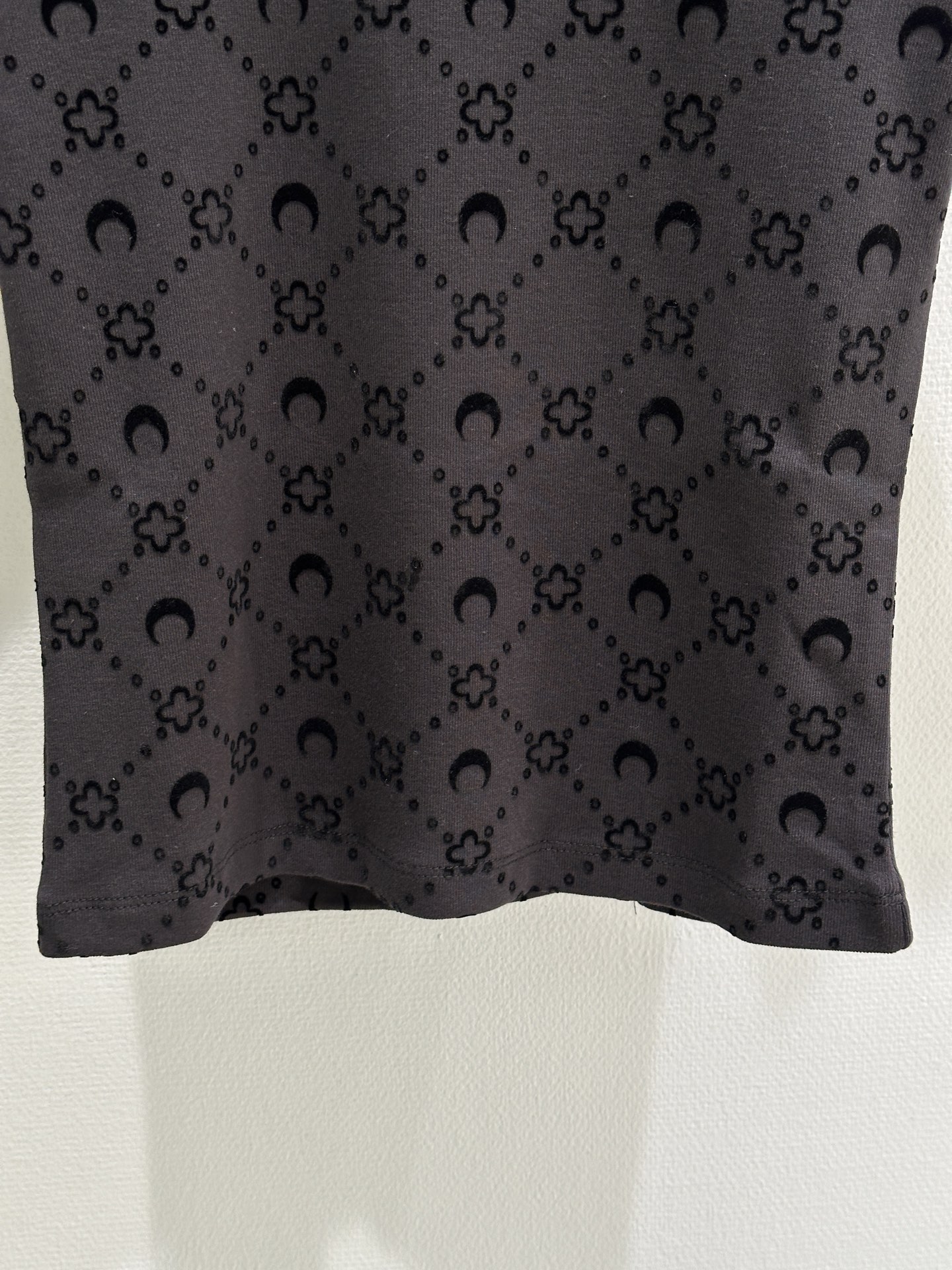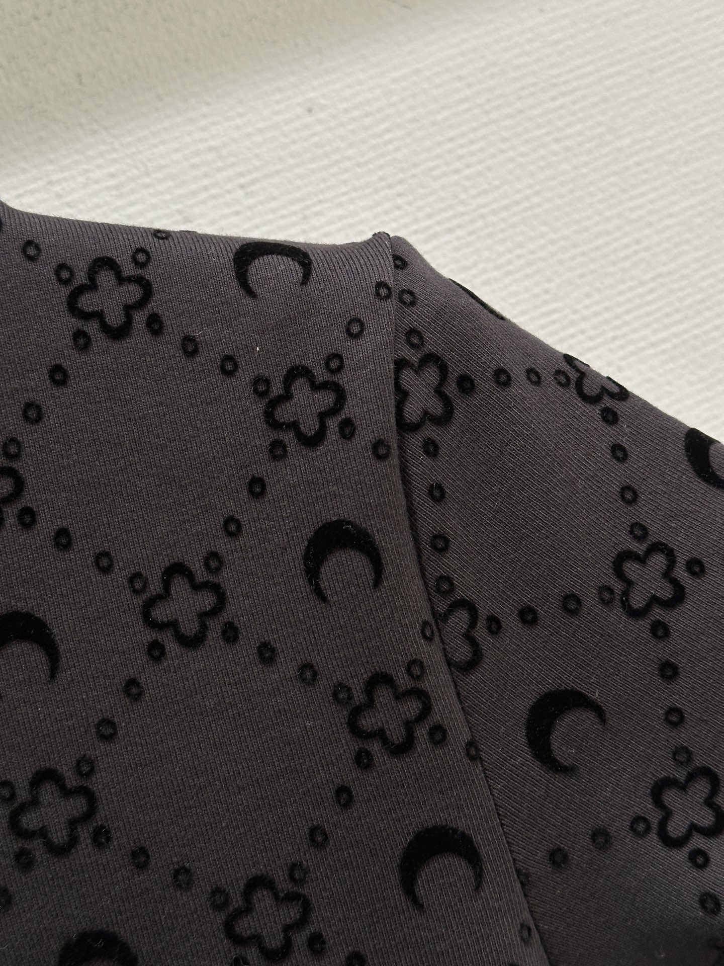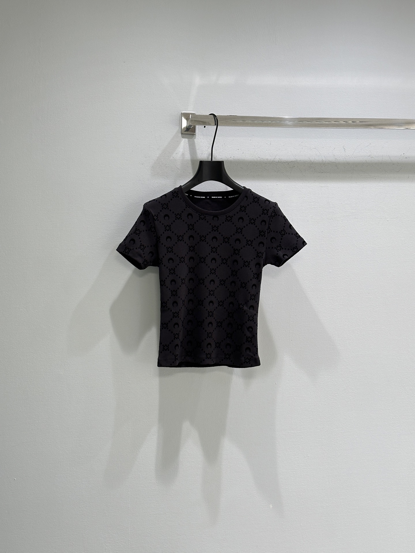 Details: Early spring Dark purple flocked short-sleeved T-shirt with moon patterns, available in SML.