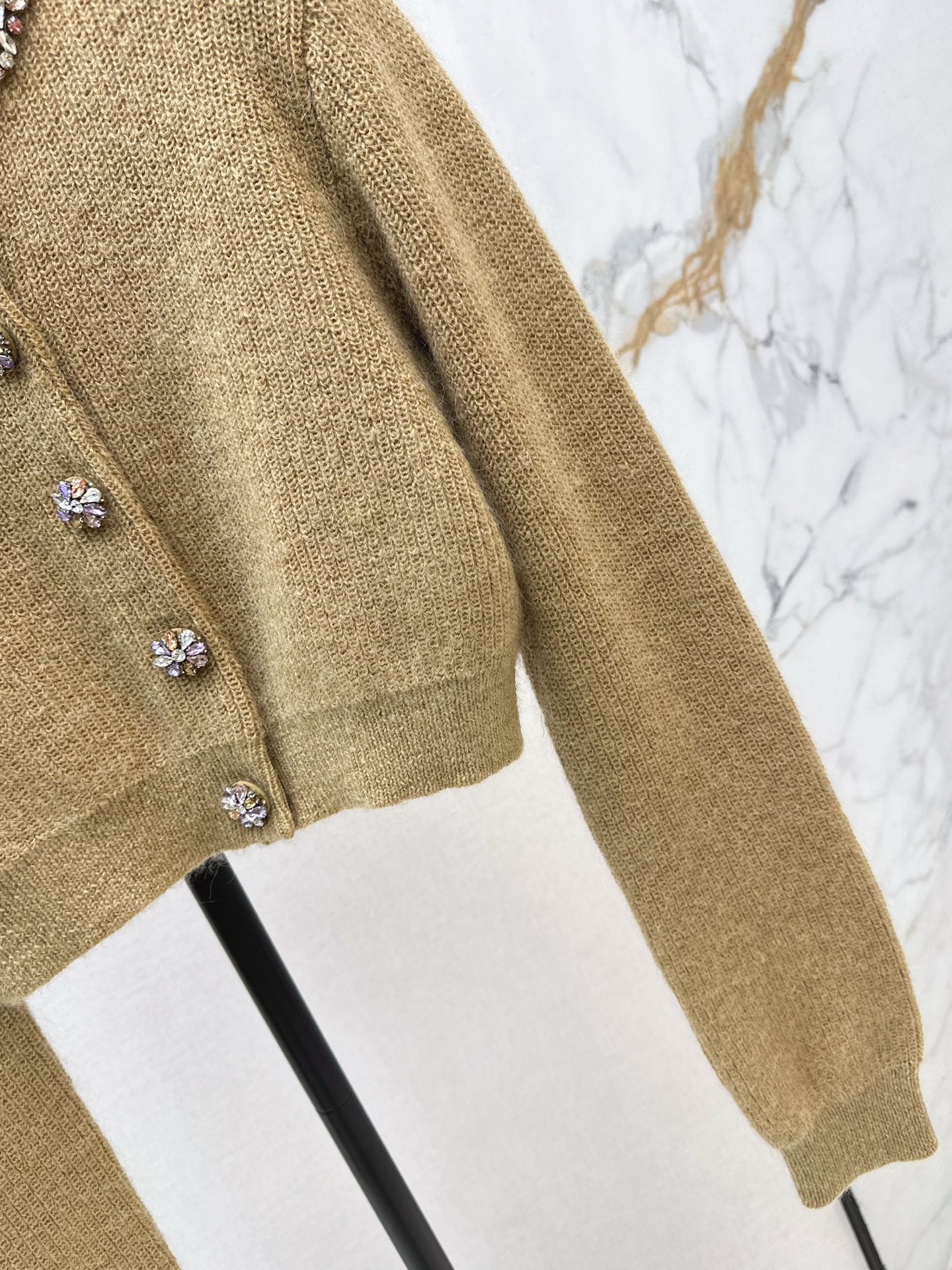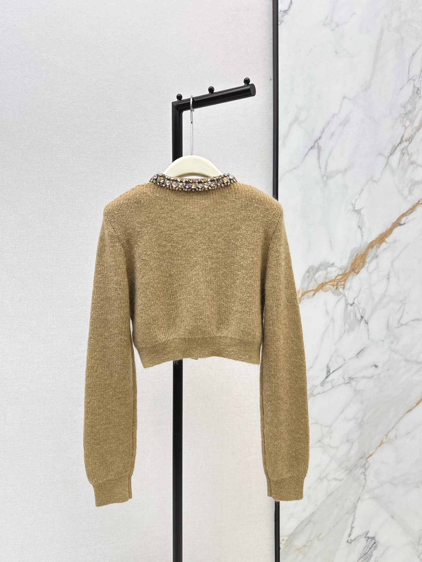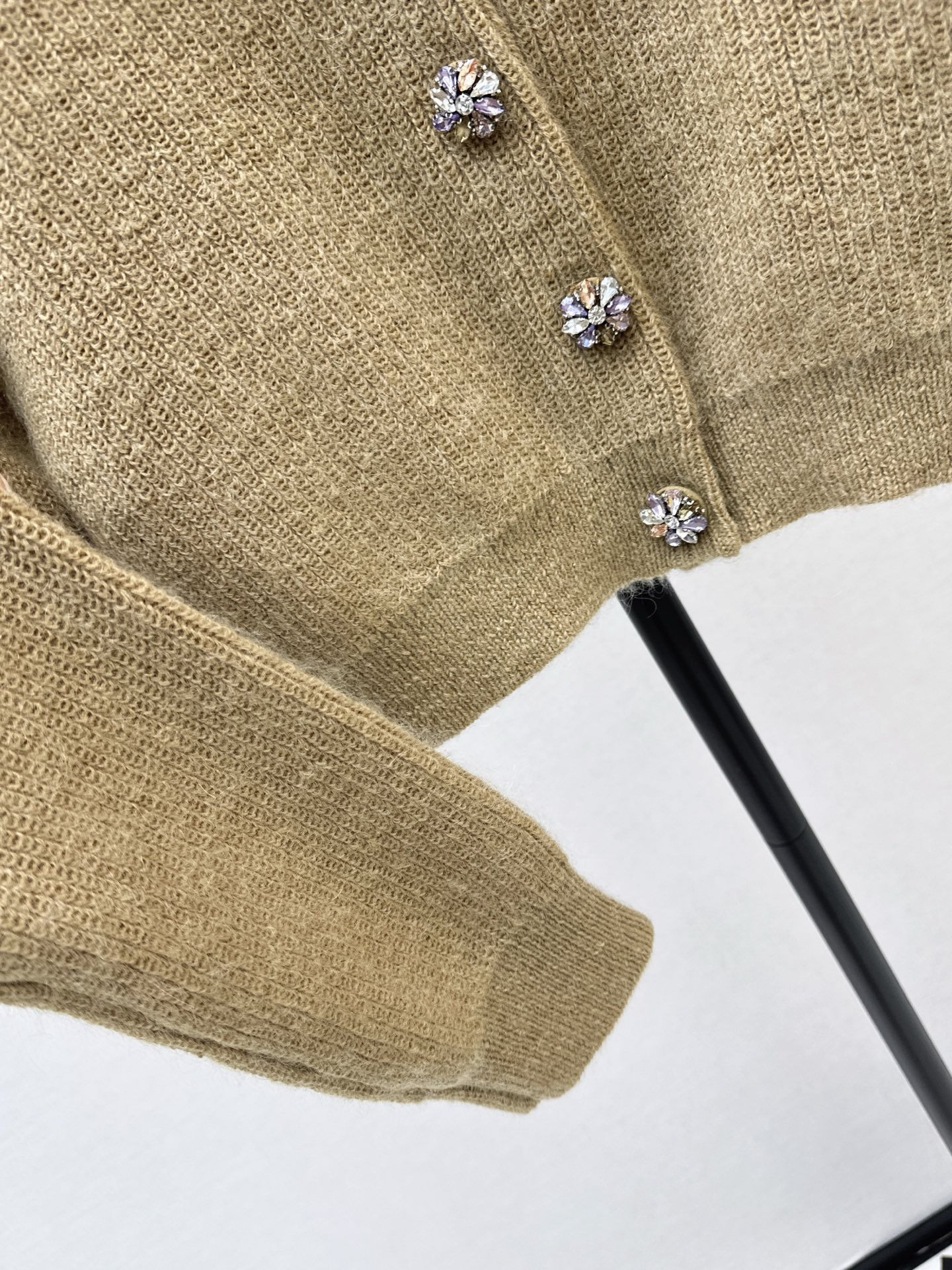 Details: Early spring cropped knitted cardigan adorned with rhinestones, exuding delicacy and style, perfect for enhancing body proportions.