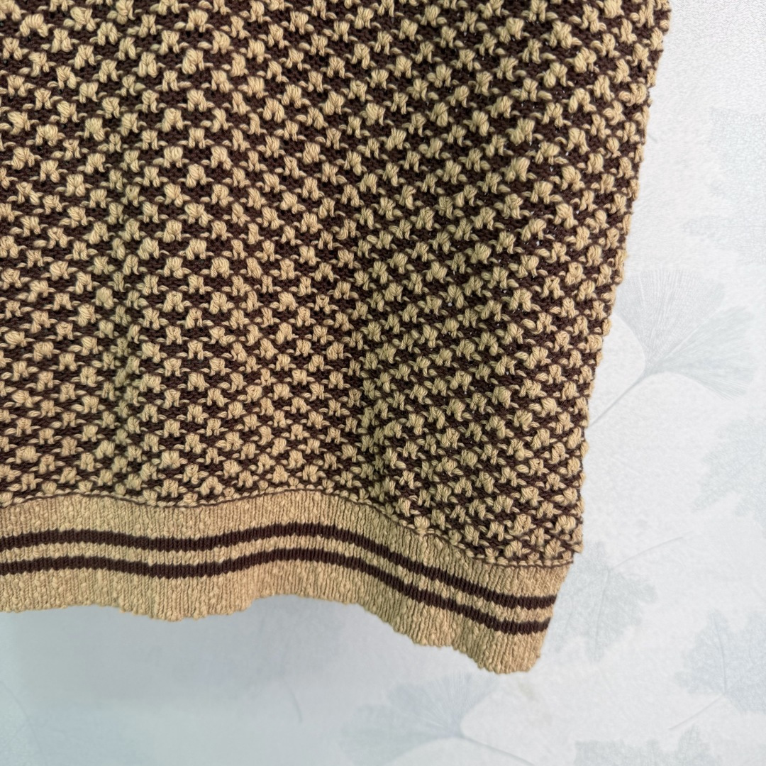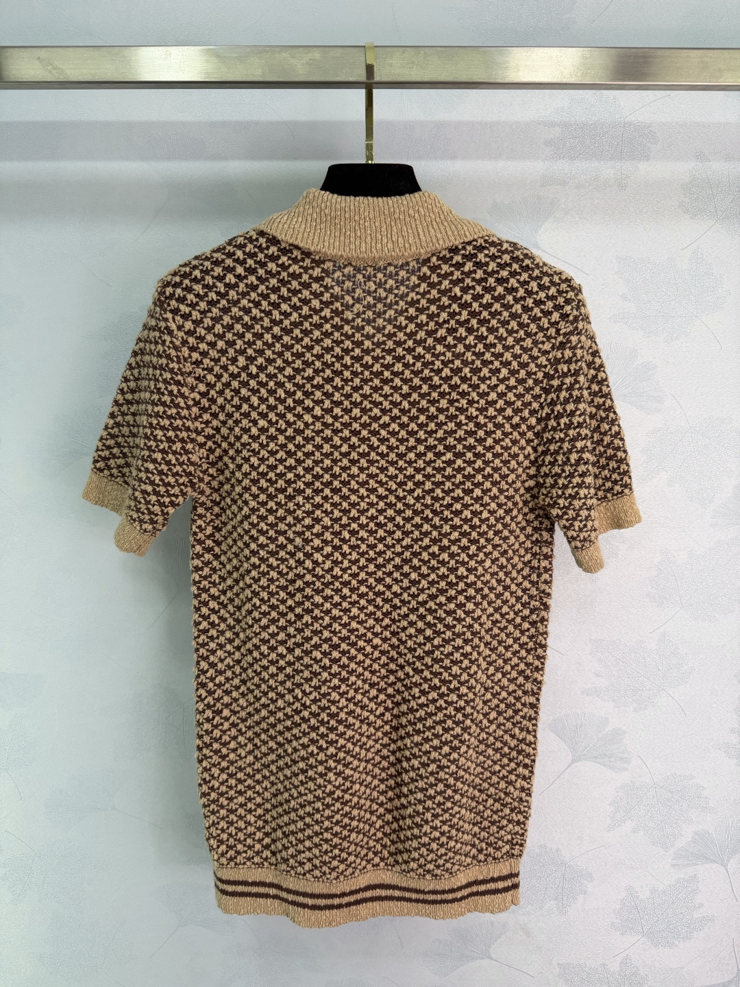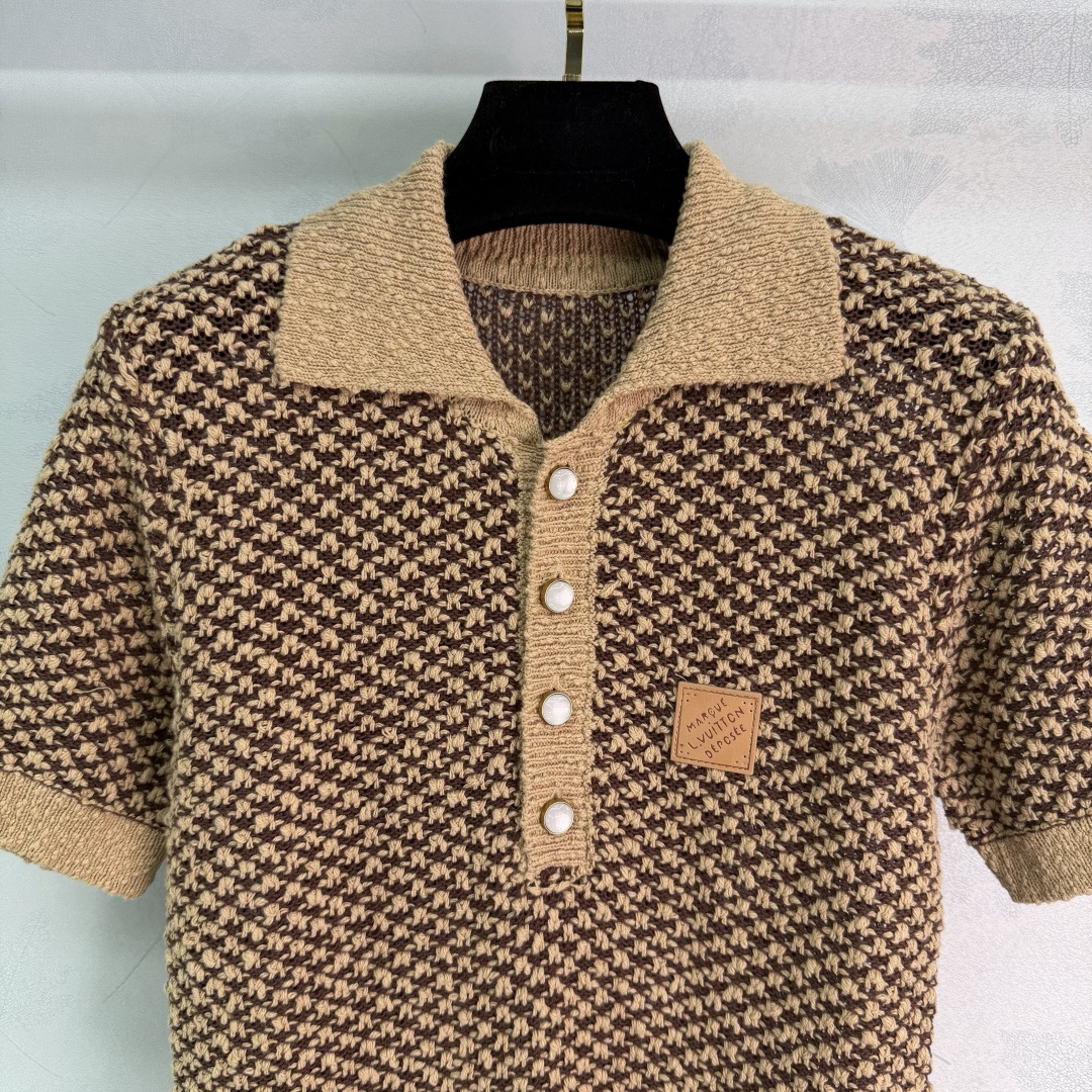 Details: New spring tweed knitted polo shirt, brown and beige, retro British style, suitable for work and leisure.