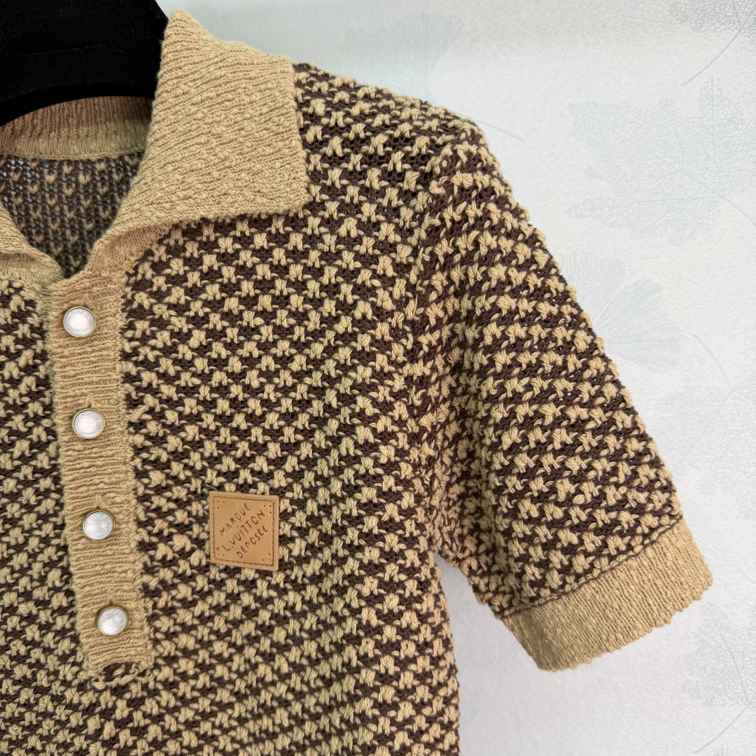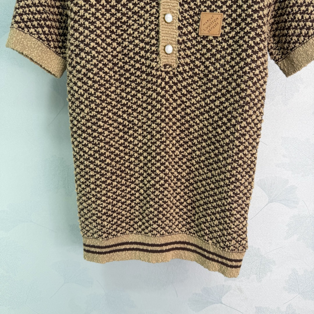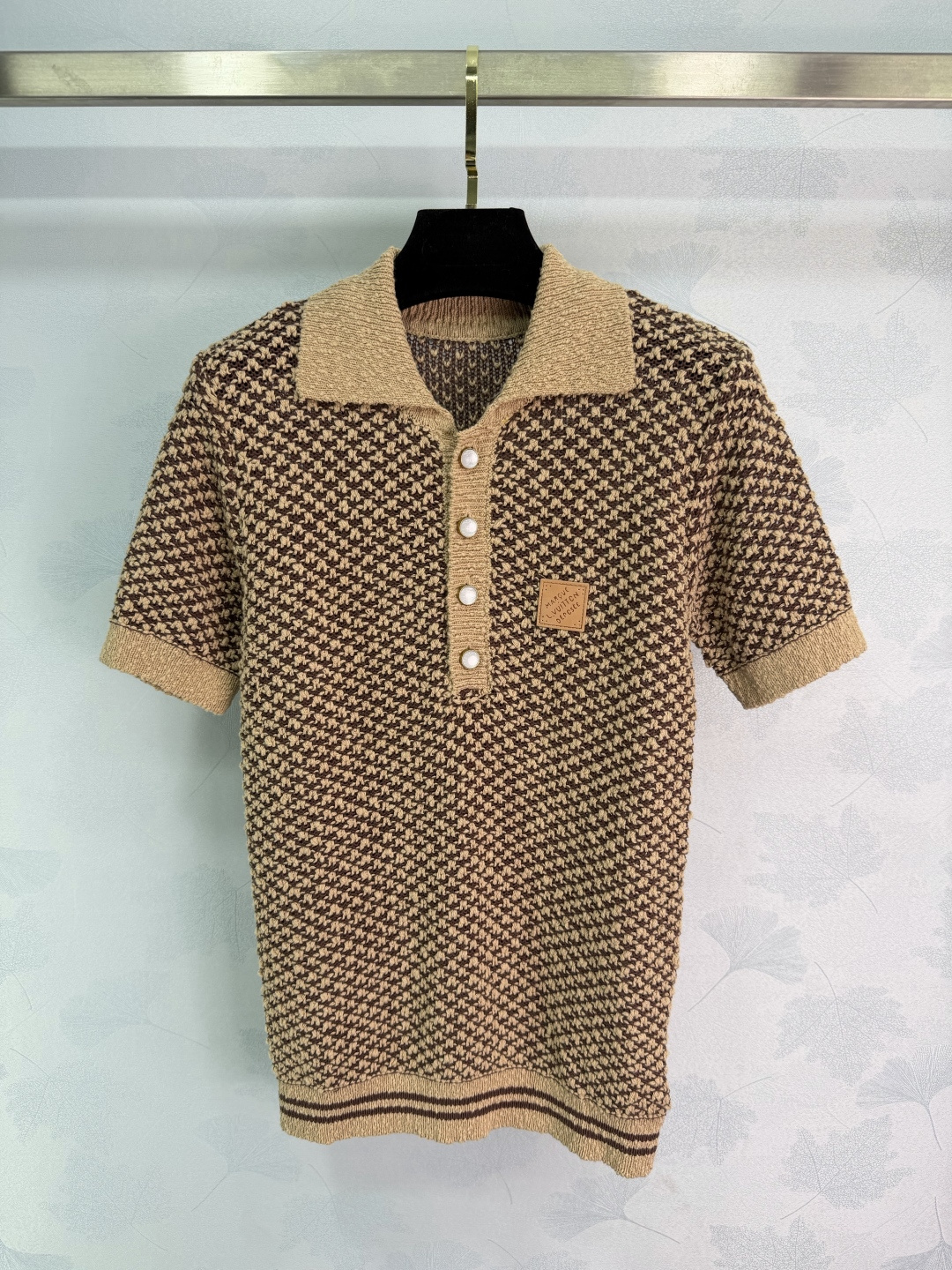 Details: New spring tweed knitted polo shirt, brown and beige, retro British style, suitable for work and leisure.
