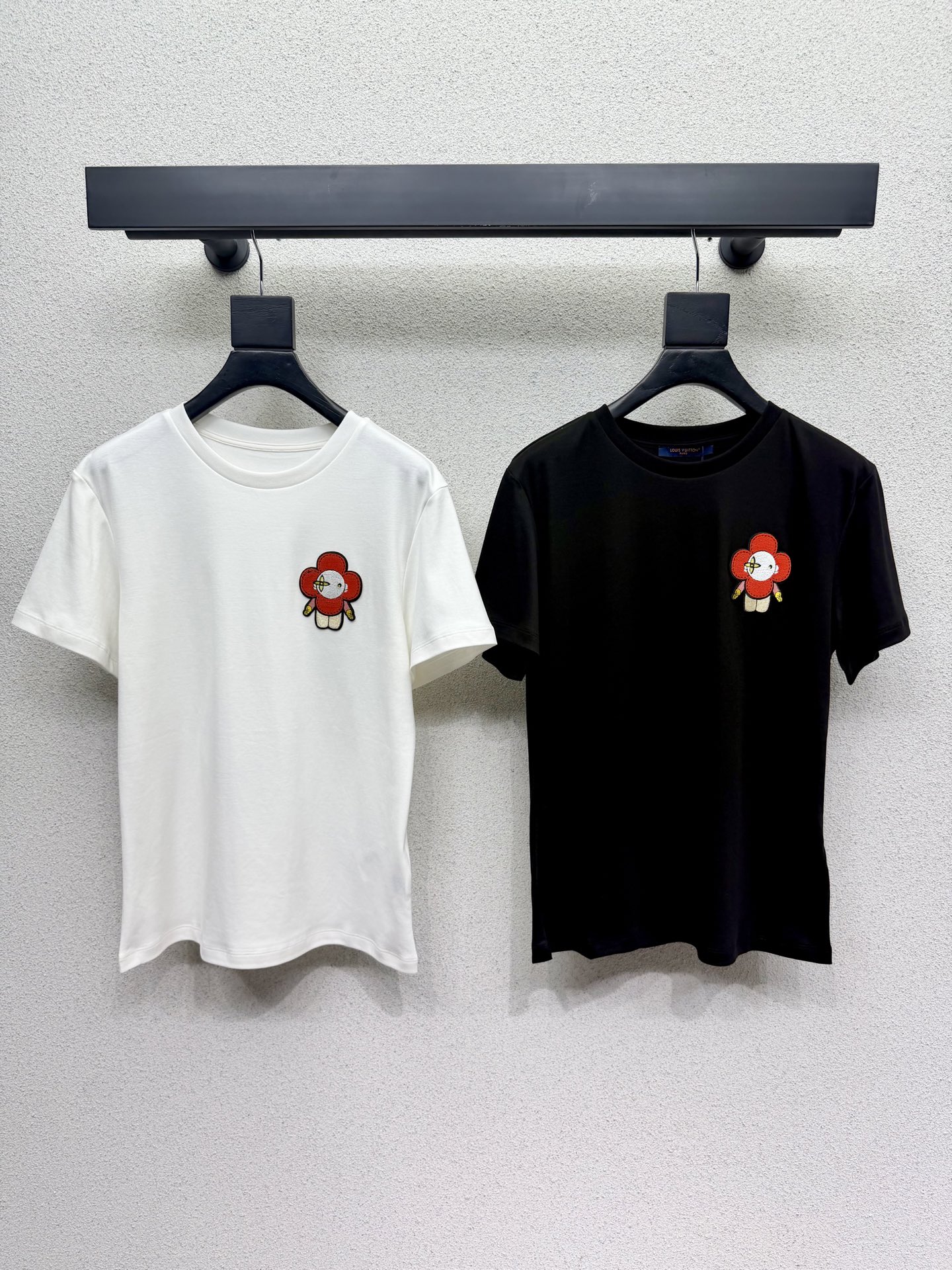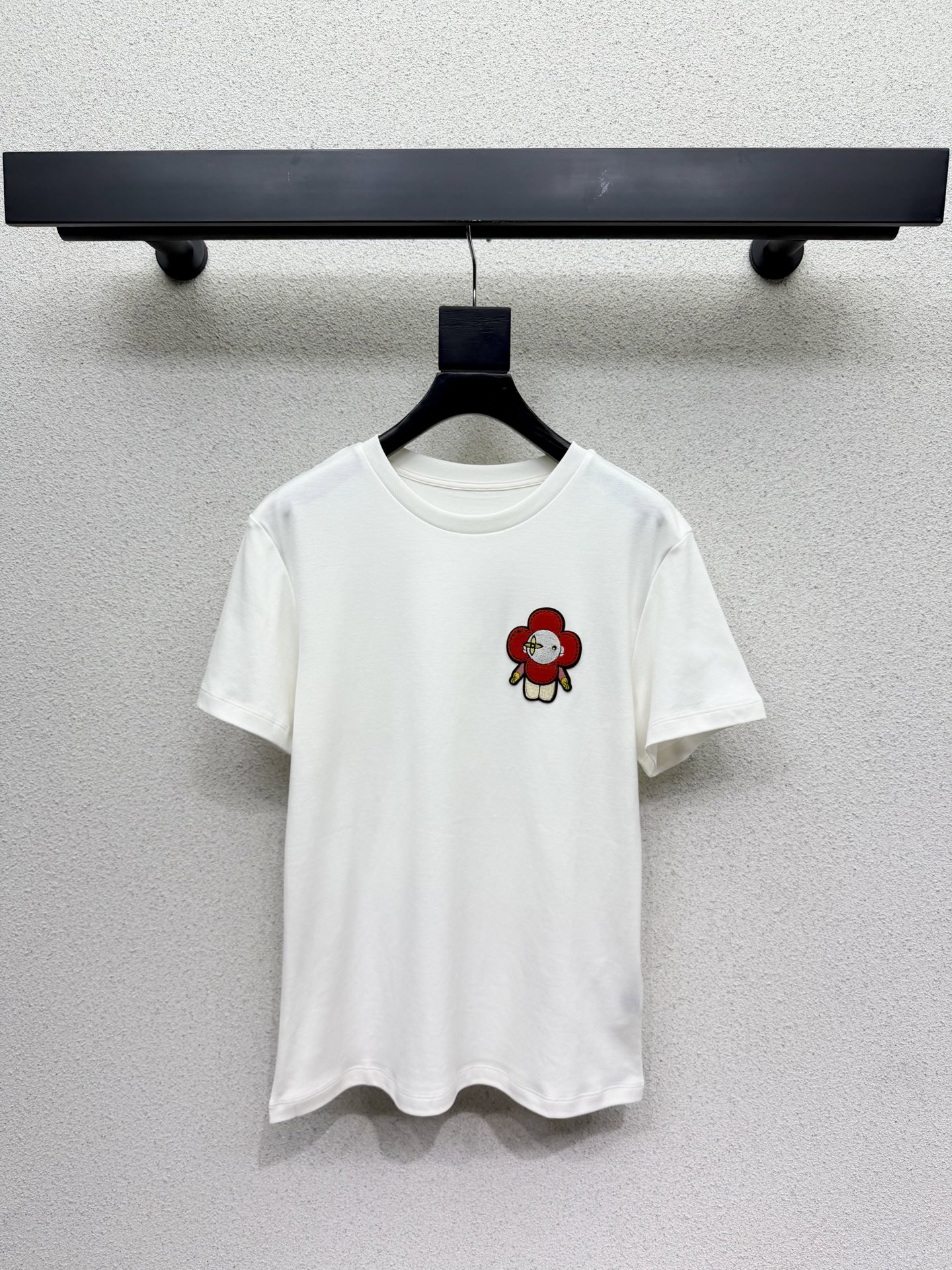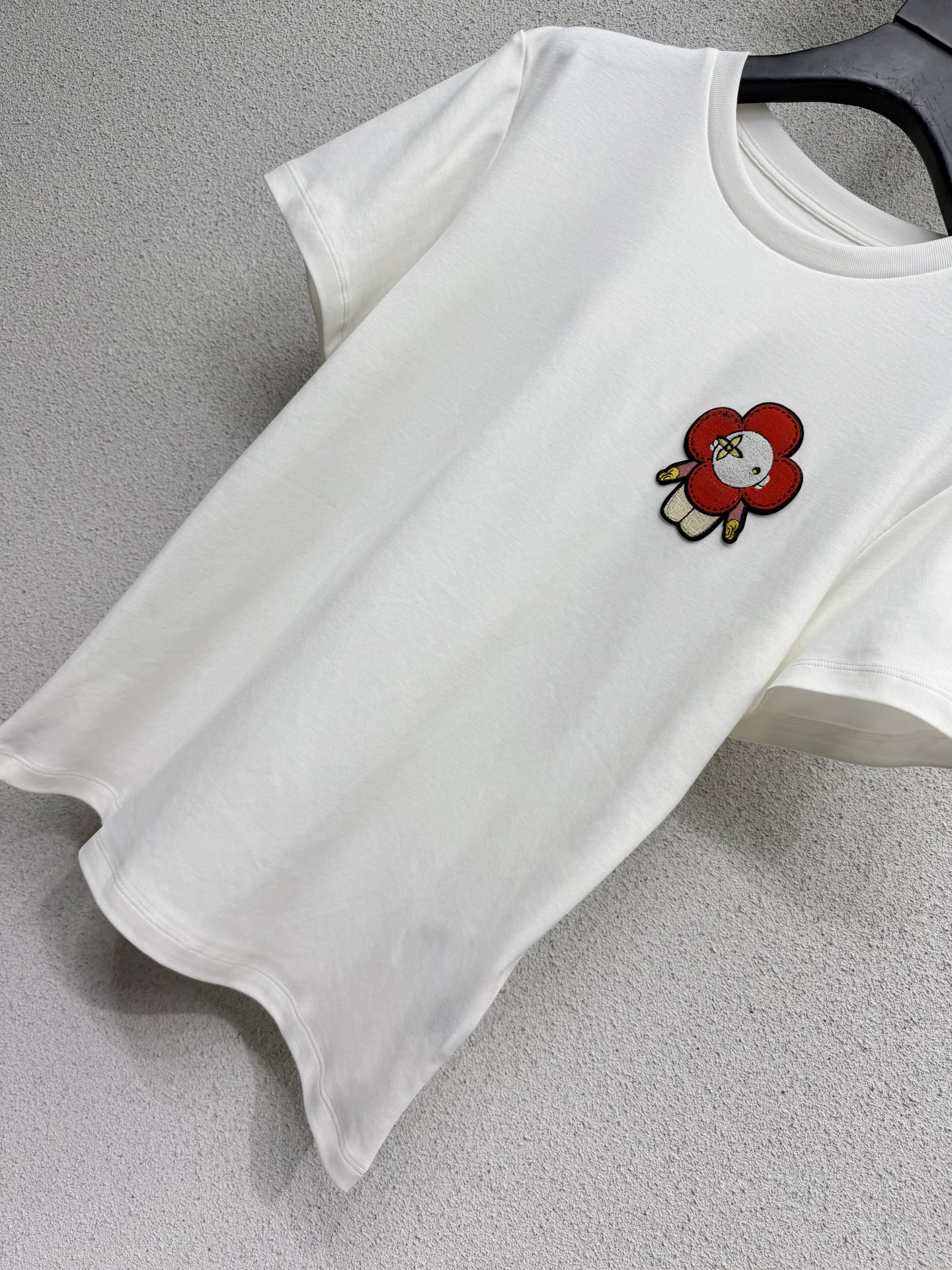 Details: Flower-printed short-sleeves T-shirts with New Year red accents, practical and fashionable. Two colors available, sizes S - M, with high-end customization and delicate workmanship, providing 1:1 original quality.