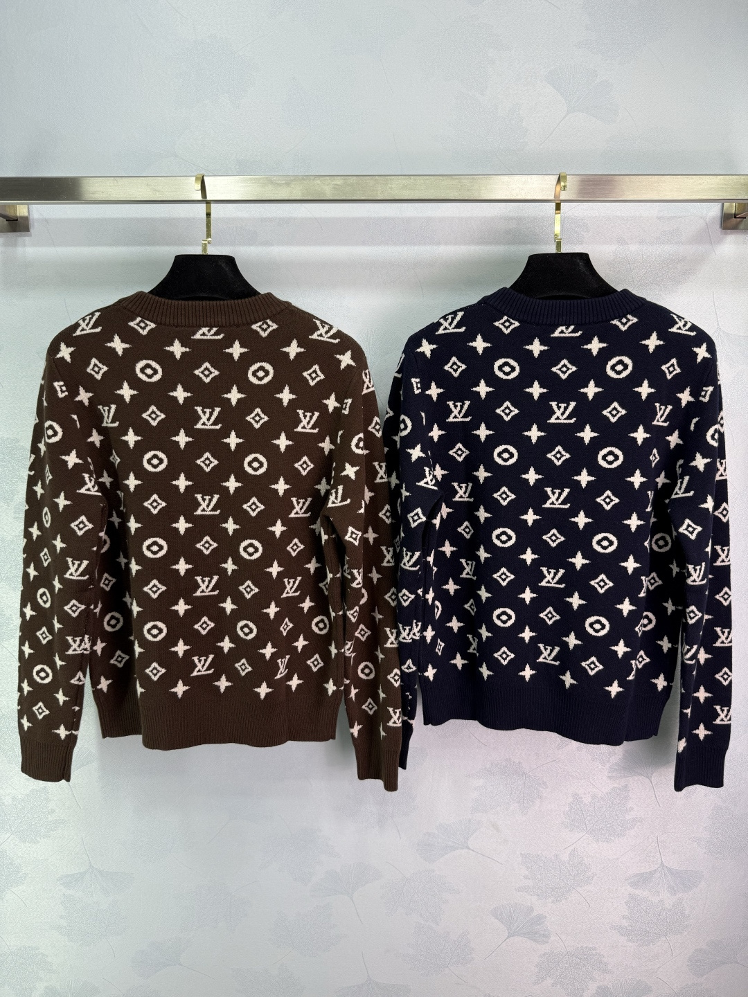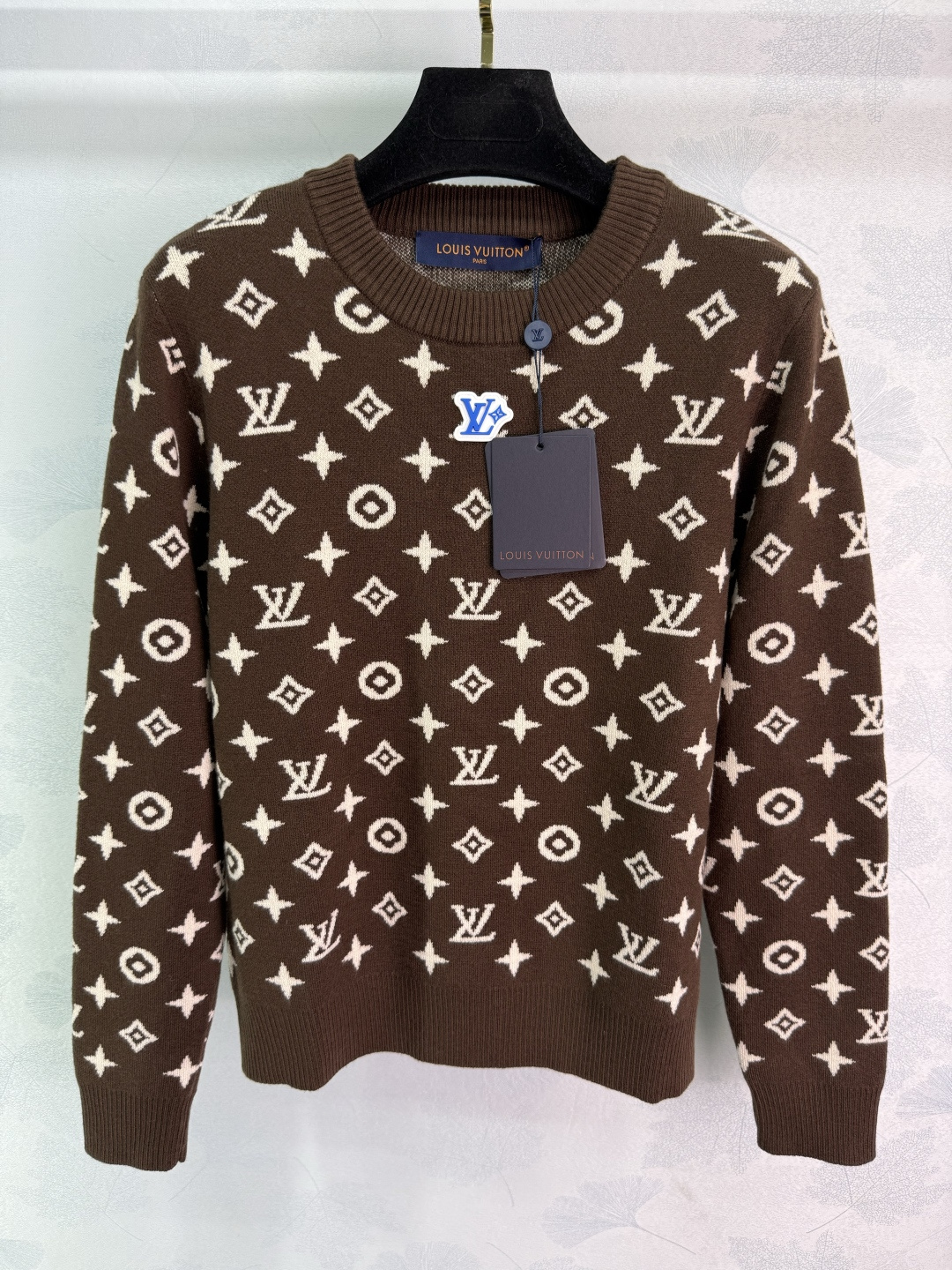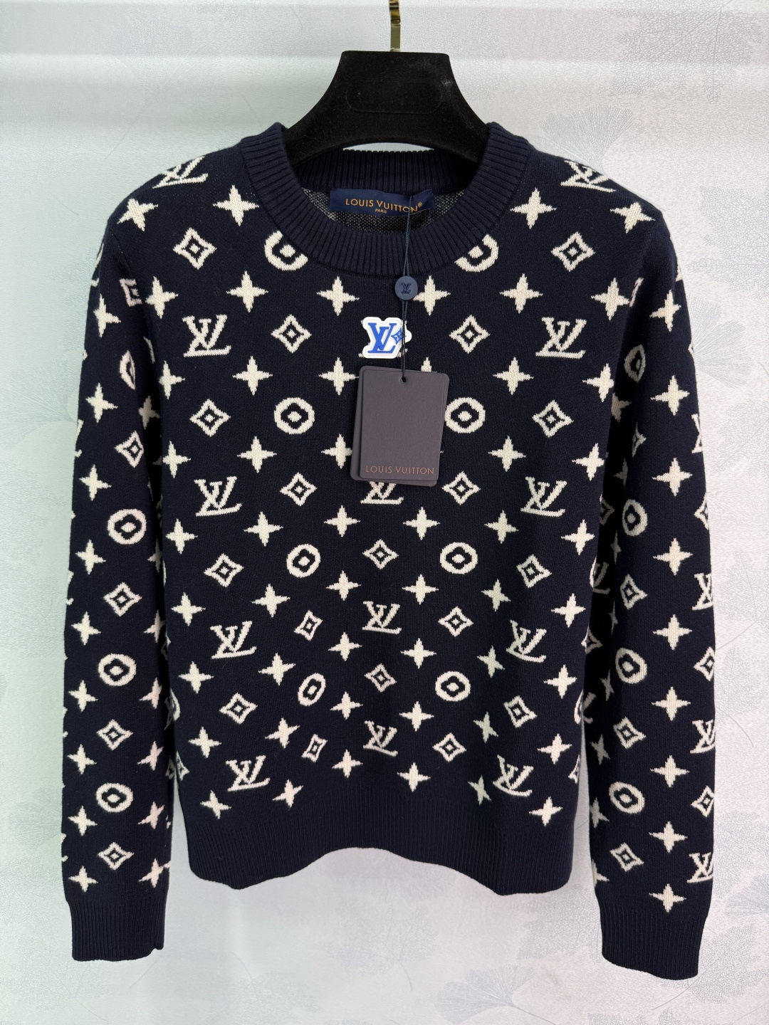 Details: Knitted top with raised logo, wool blend fabric, classic pattern, versatile for skirts or pants, high-quality finish.