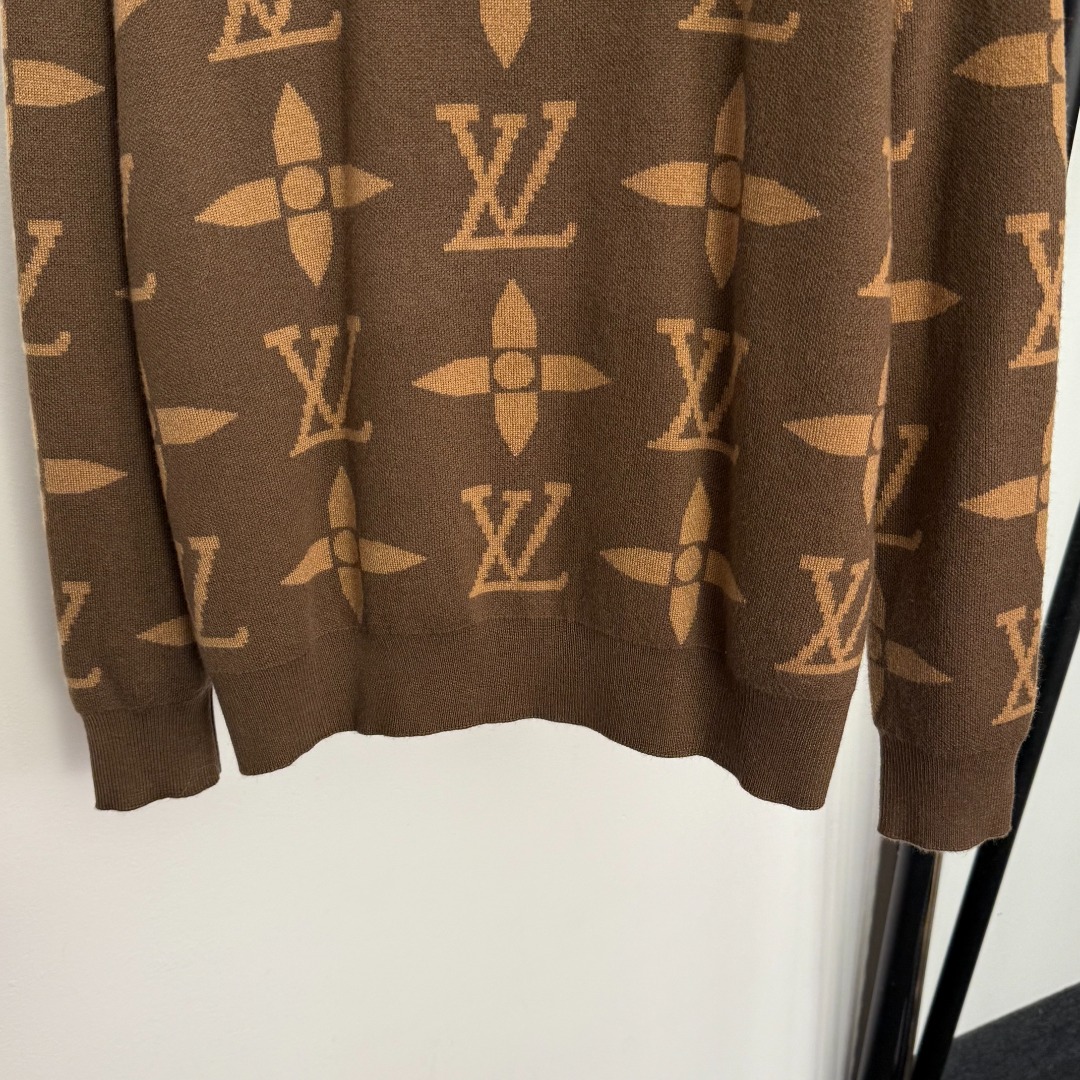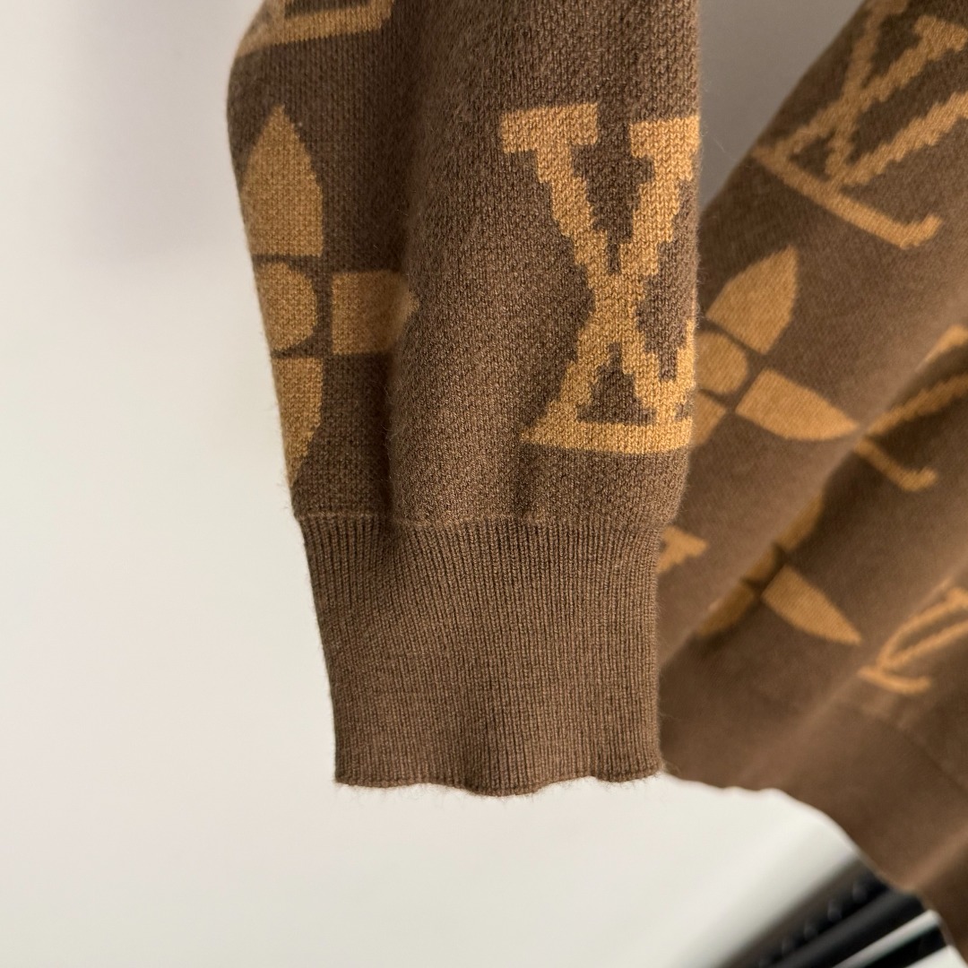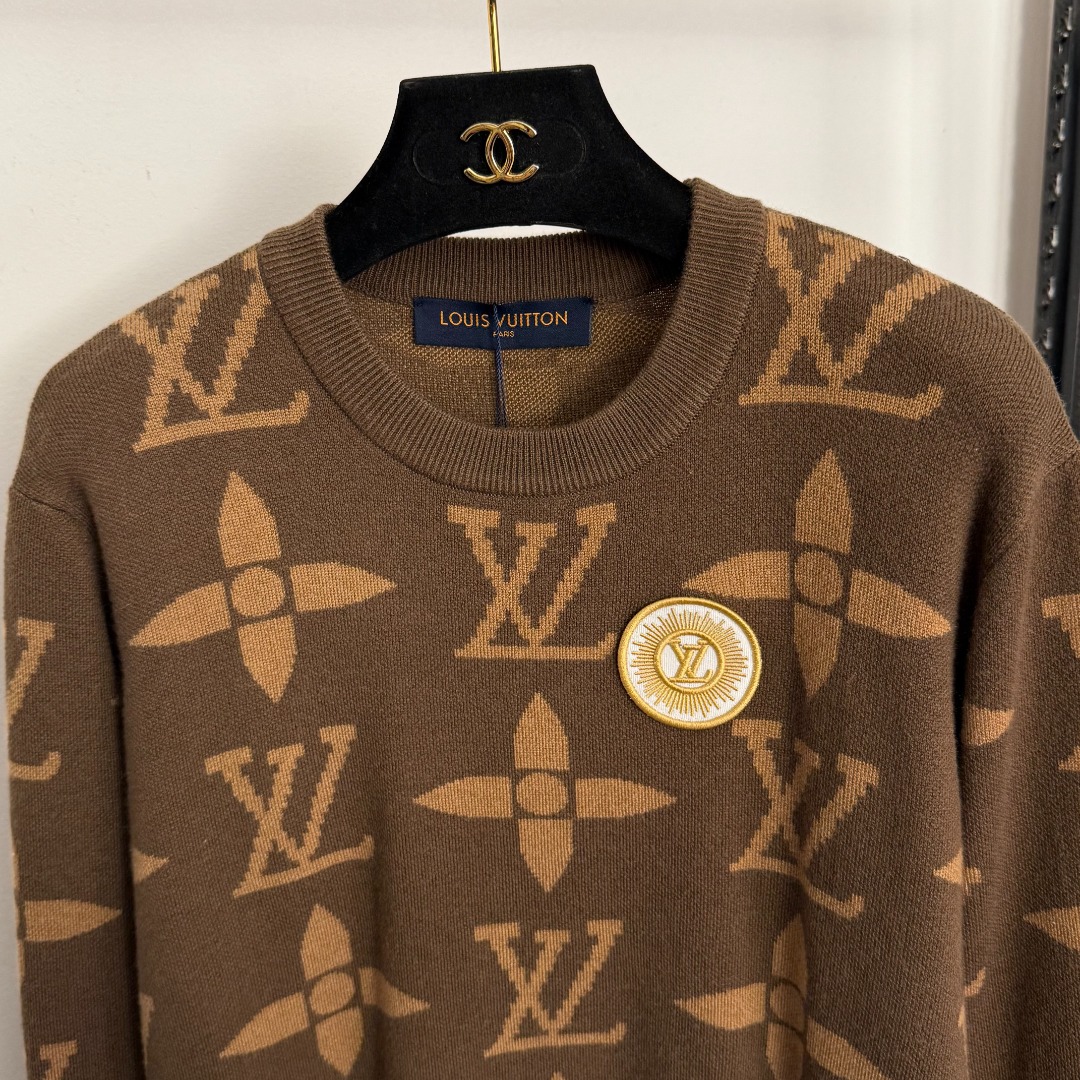 Details: New coffee - colored wool knitted pullover with logo embroidery badge, available in S, M, L.