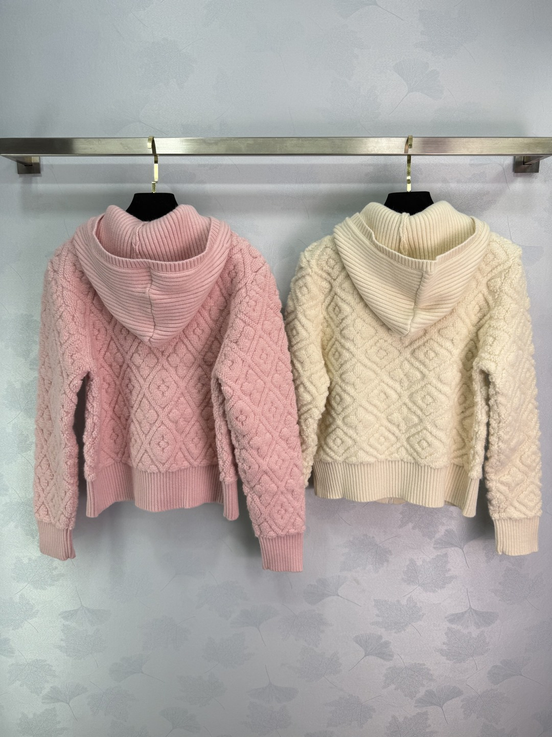 Details: Autumn/Winter diamond knit hooded jacket made of high-quality wool, soft and warm, with short zip design and four colors, featuring exquisite craftsmanship.