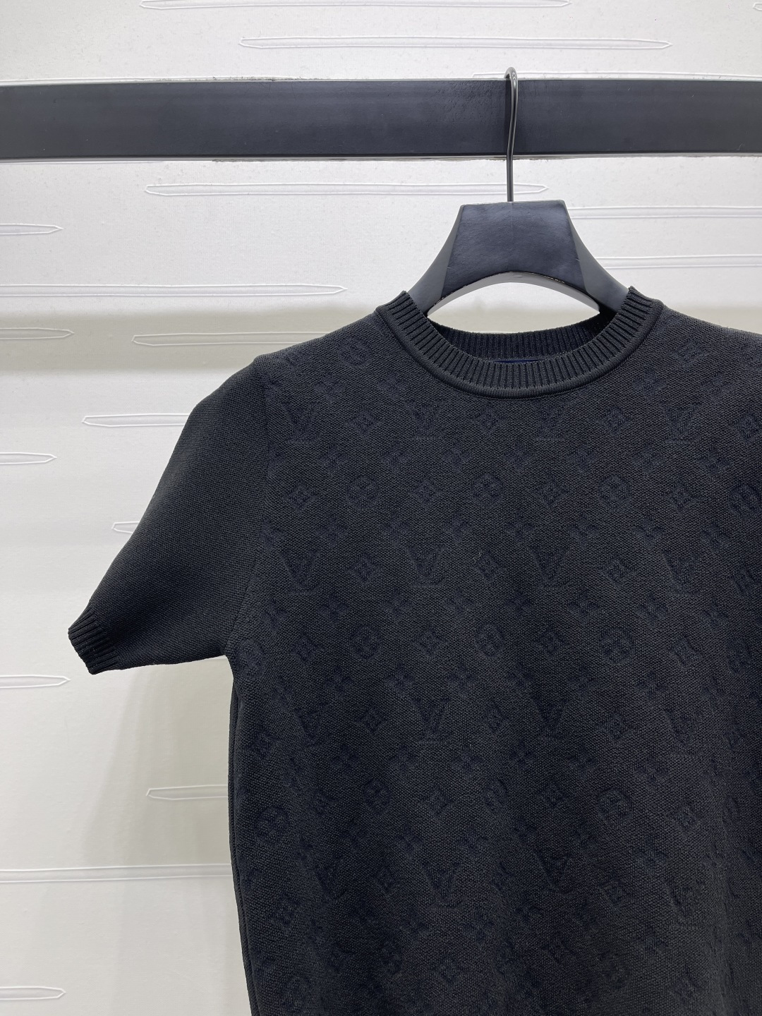 Details: Spring knitted short-sleeved top with logo print, 2 colors, 3 sizes. High-end custom, fine workmanship