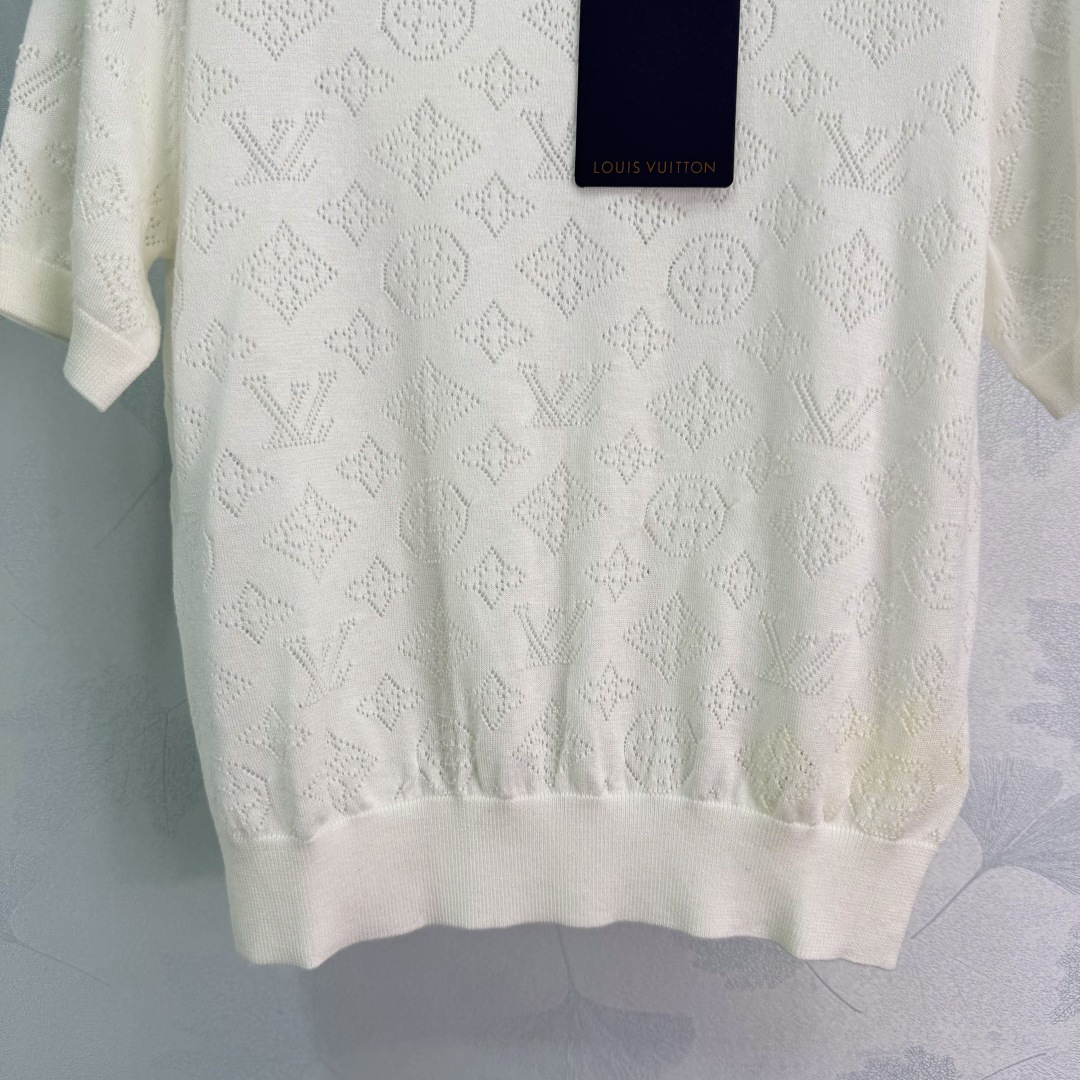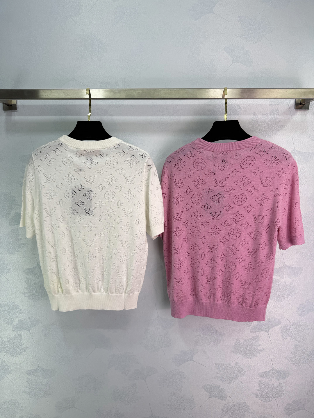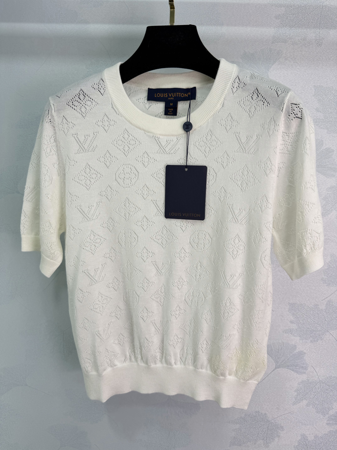 Details: Early spring jacquard knitted short-sleeved top with Monogram, soft and breathable, suitable for various occasions.
