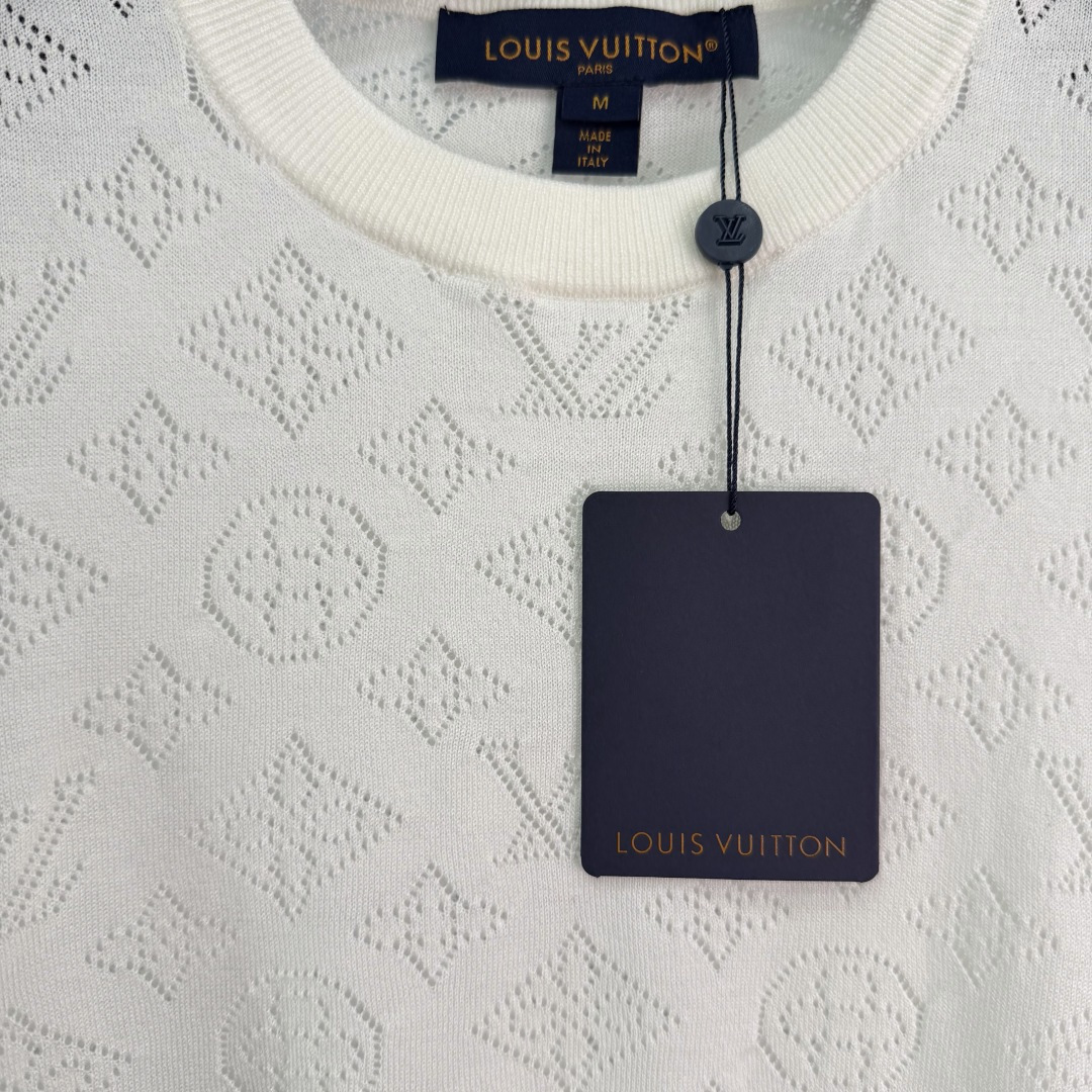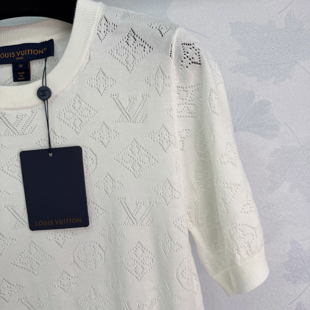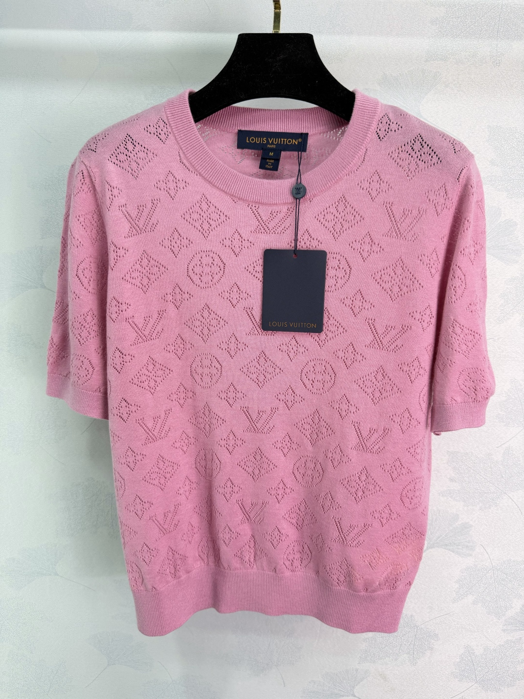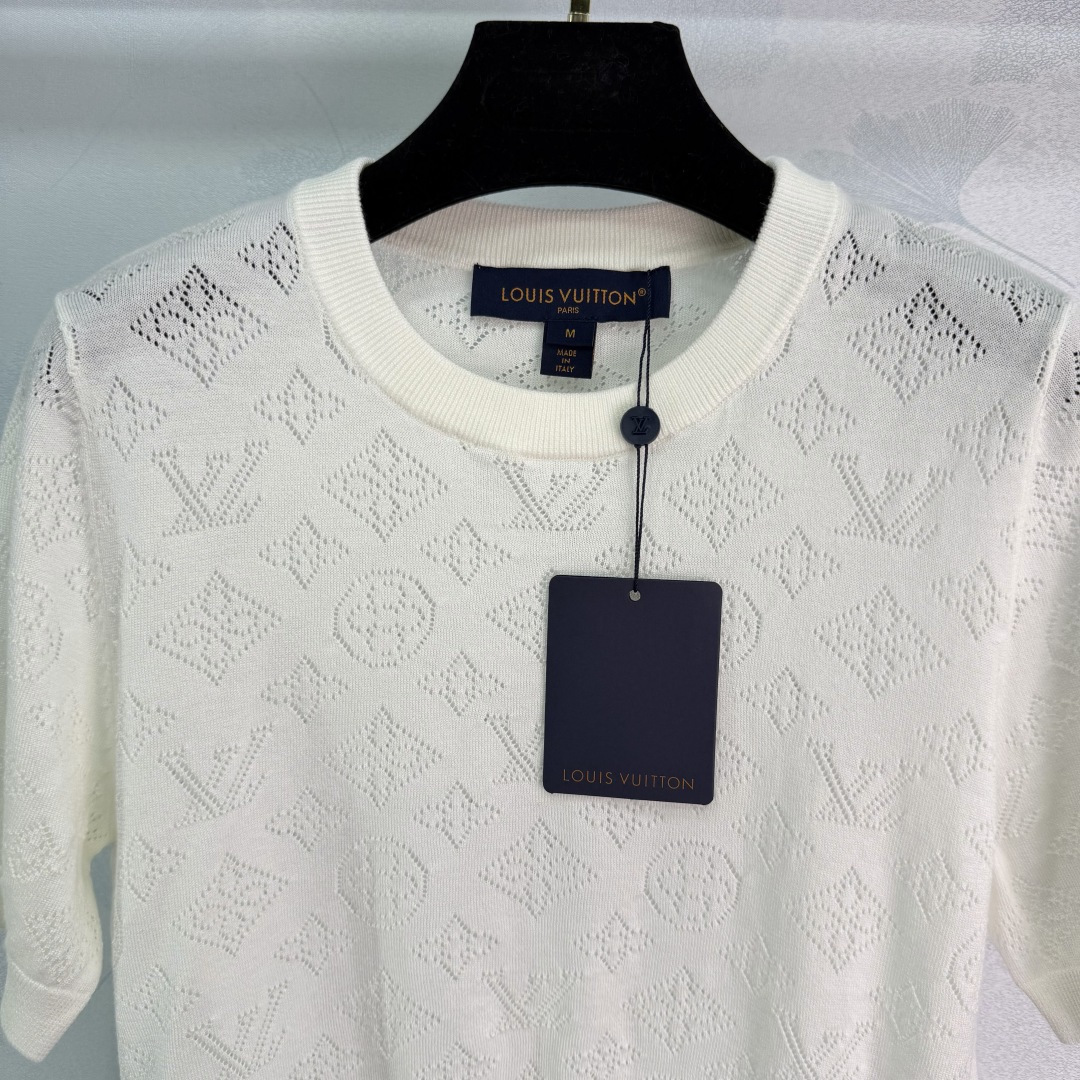 Details: Early spring jacquard knitted short-sleeved top with Monogram, soft and breathable, suitable for various occasions.