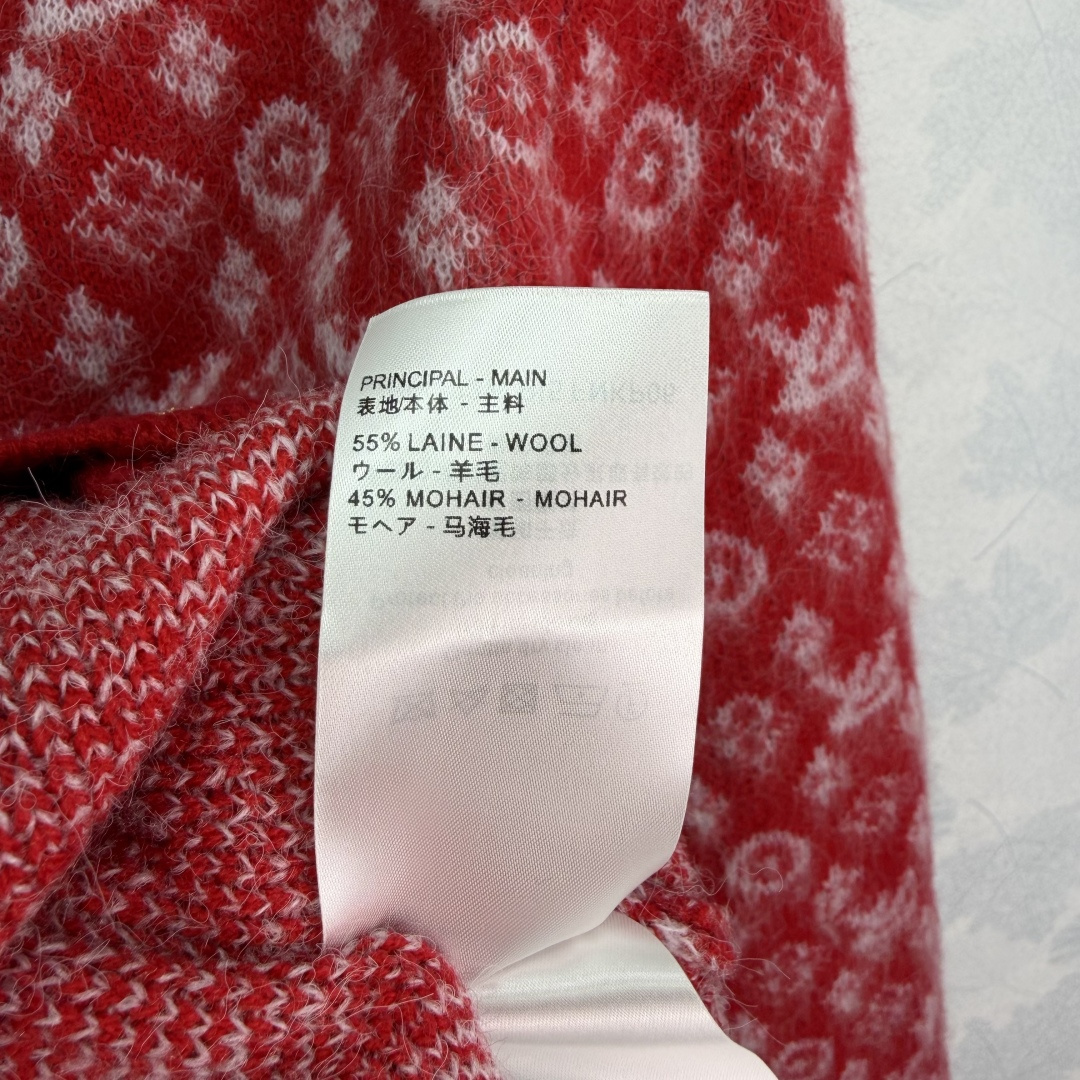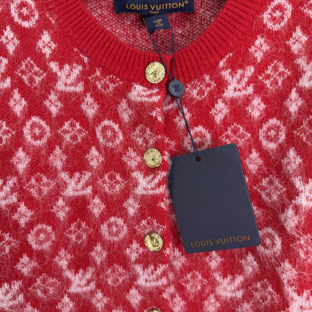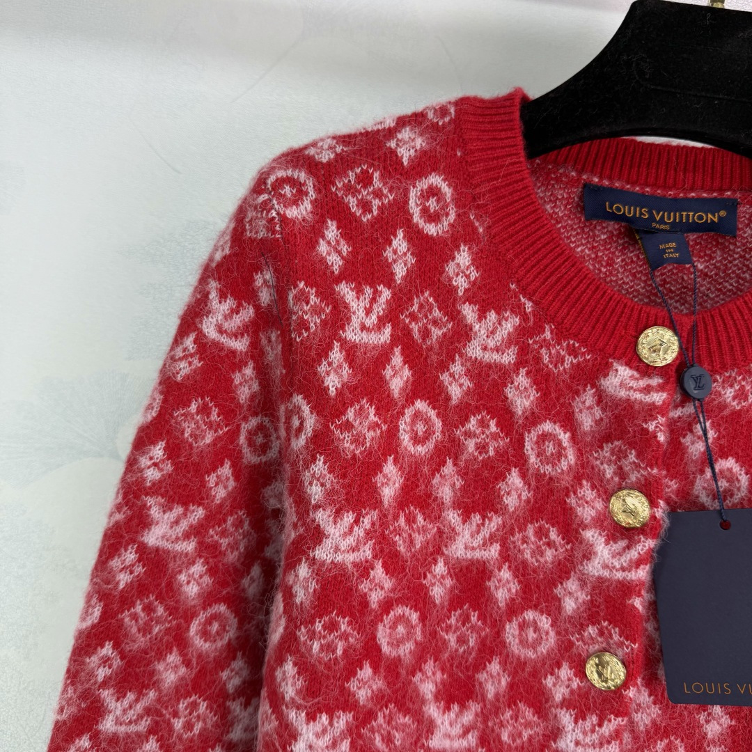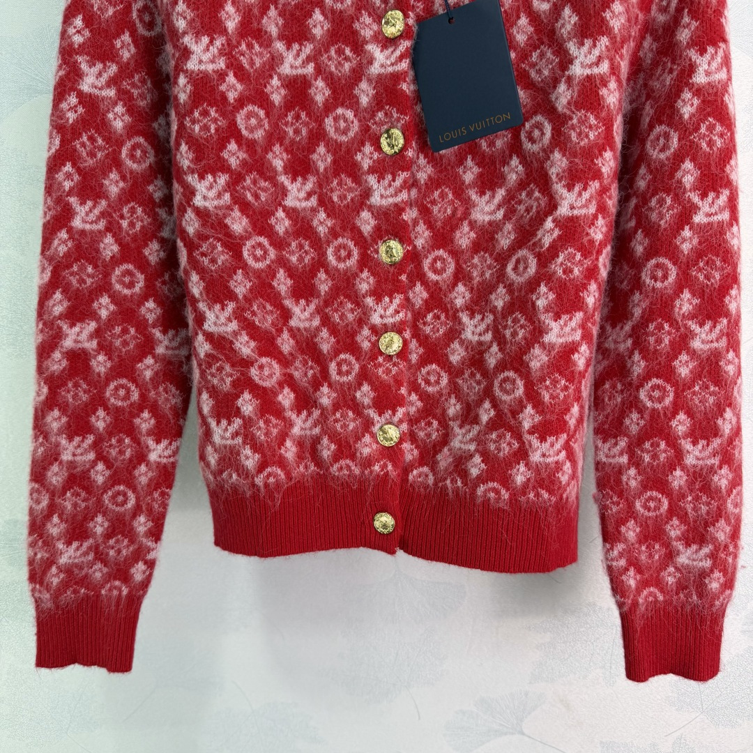 Details: New knitted Christmas-themed open-front sweater with logo jacquard and metal buttons.