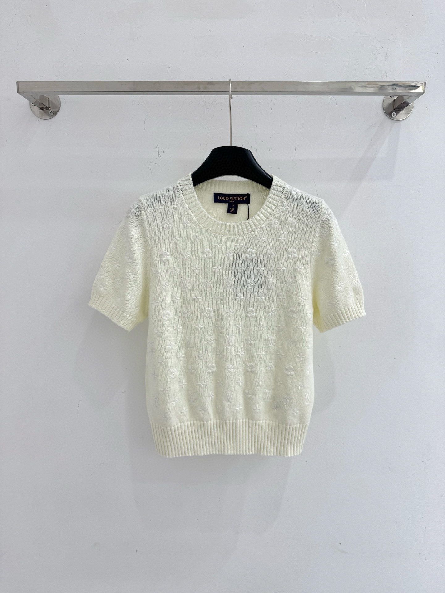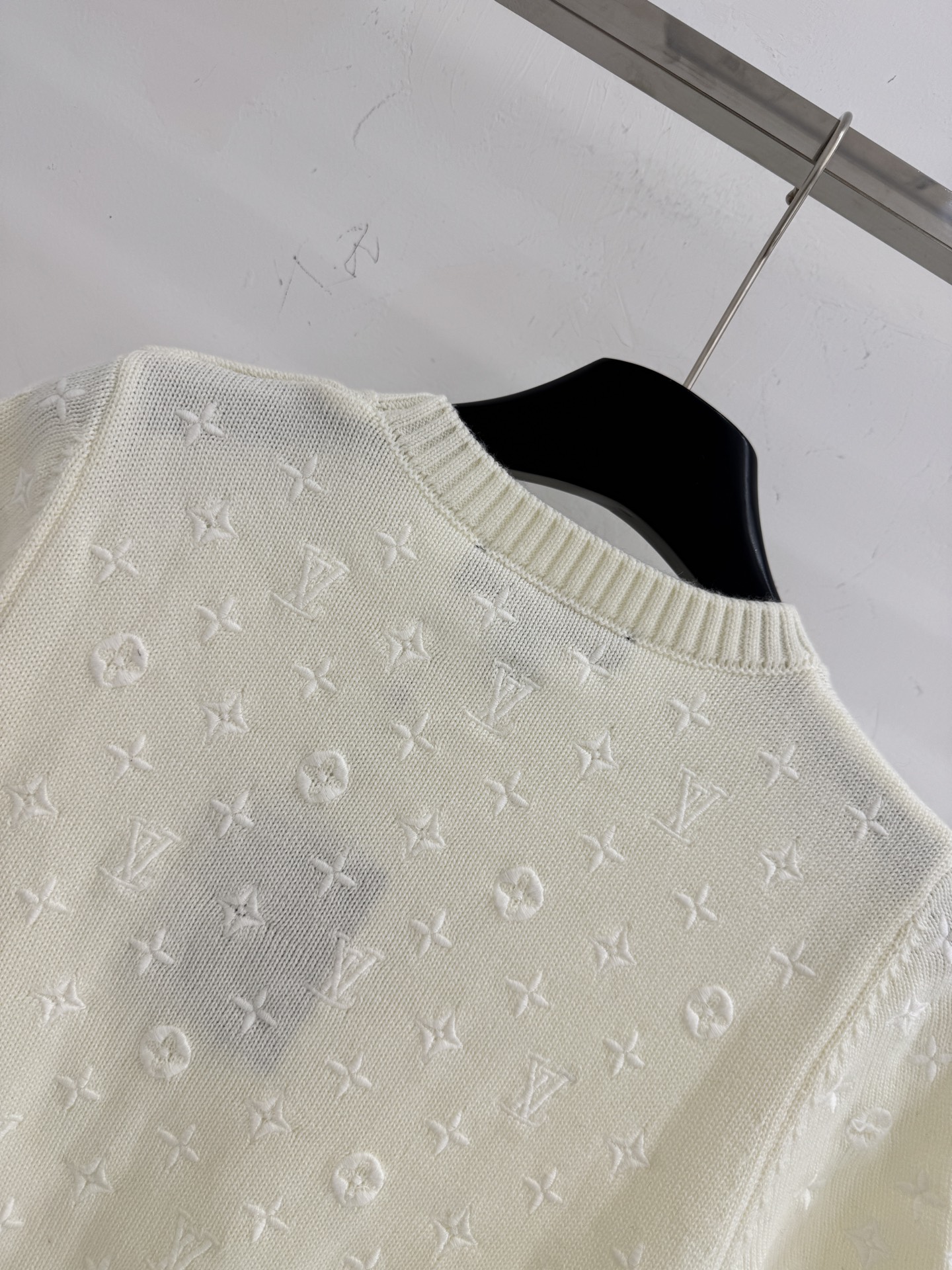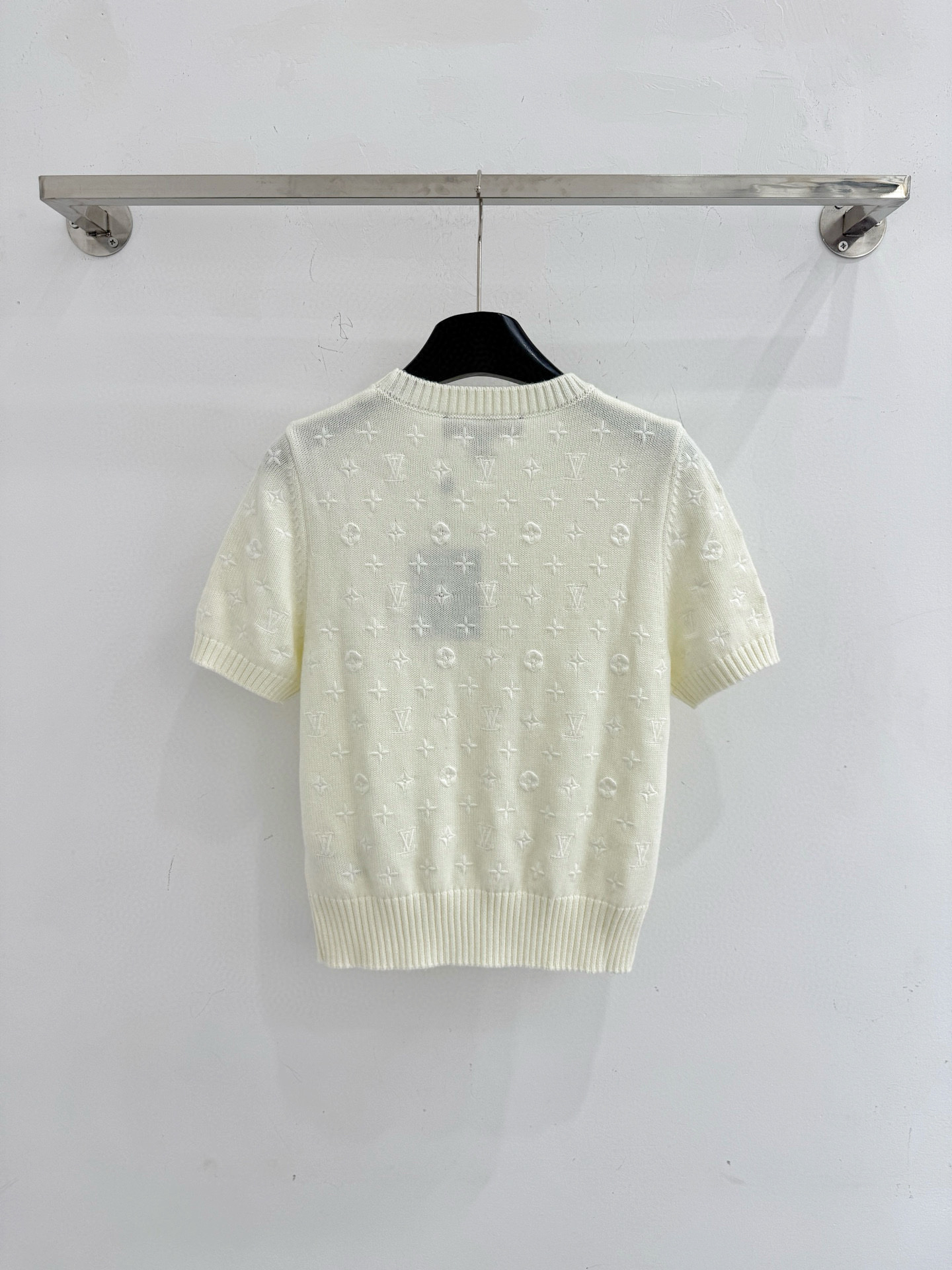 Details: Spring-summer round-neck top with jacquard patterns and delicate fabric texture, highly customizable, finely crafted, with 1:1 original quality.