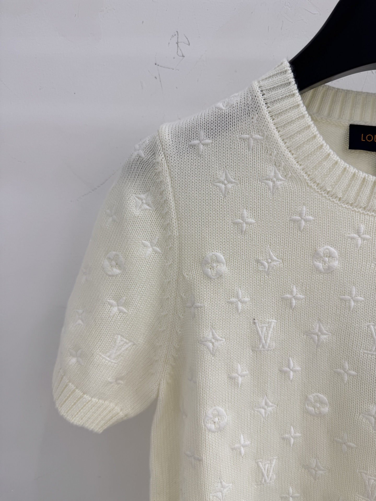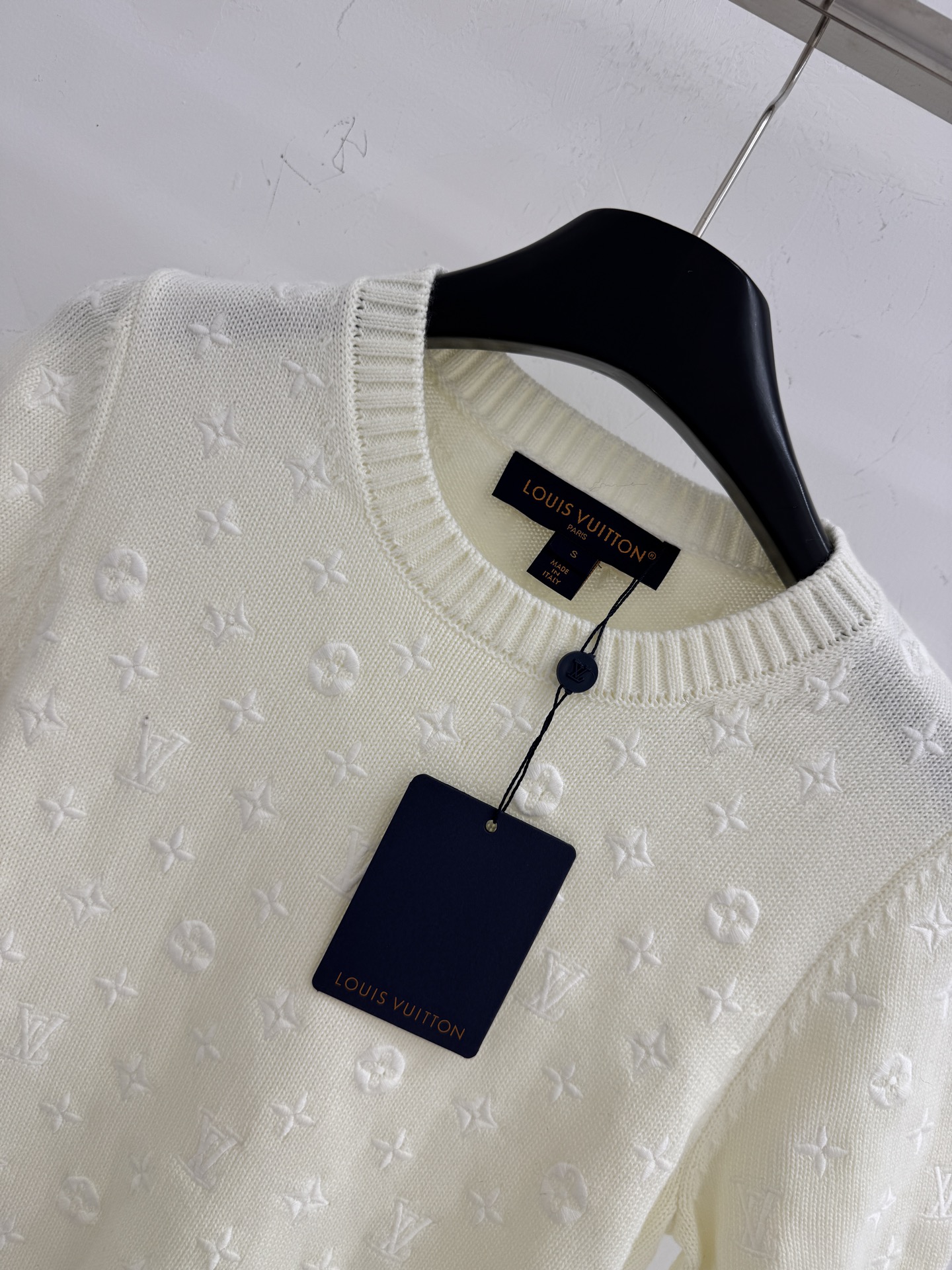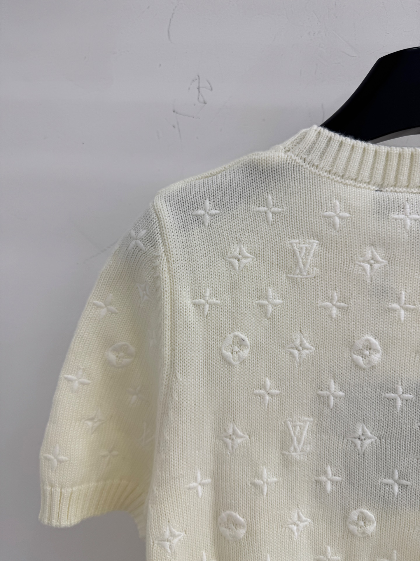 Details: Spring-summer round-neck top with jacquard patterns and delicate fabric texture, highly customizable, finely crafted, with 1:1 original quality.