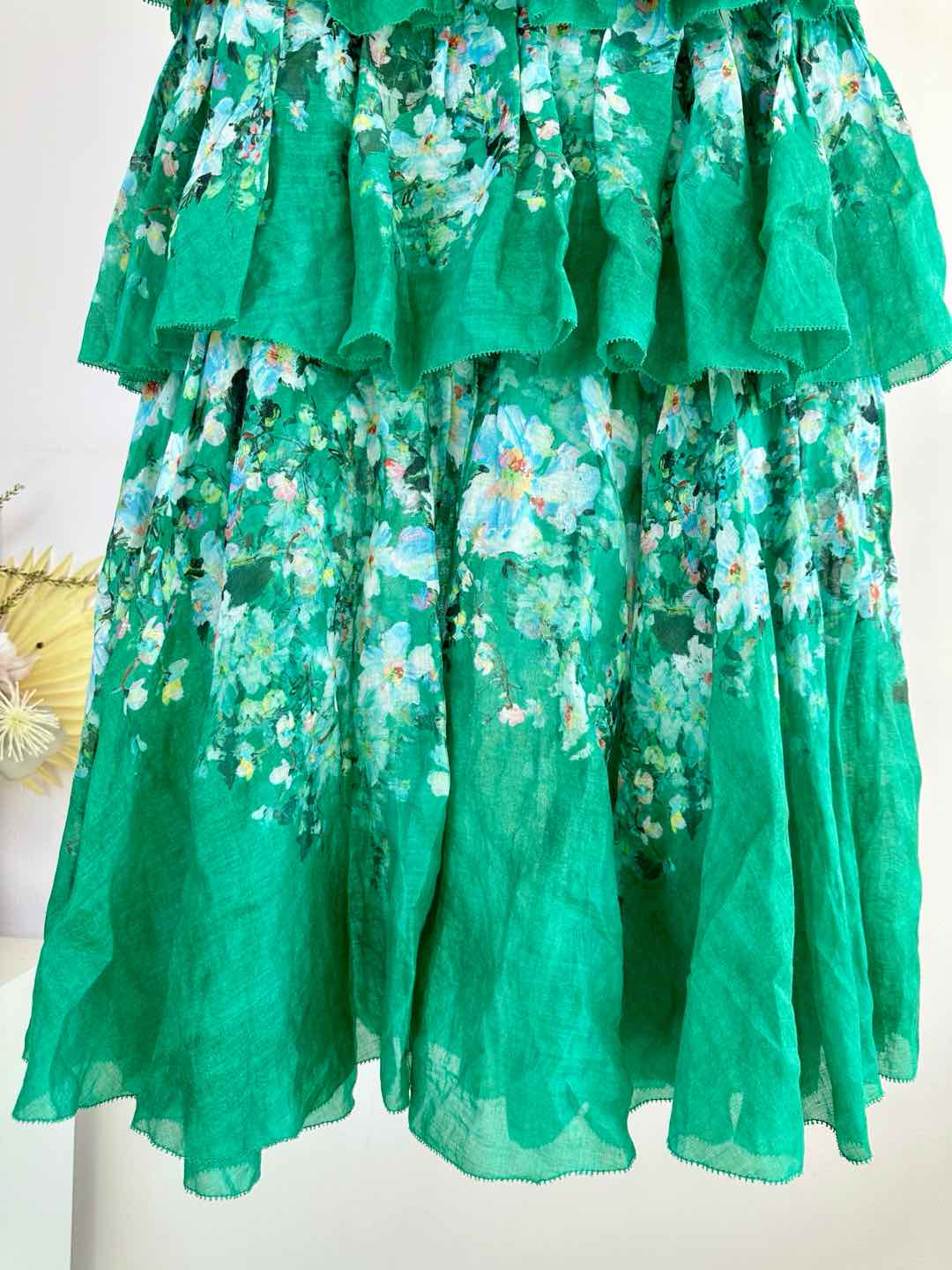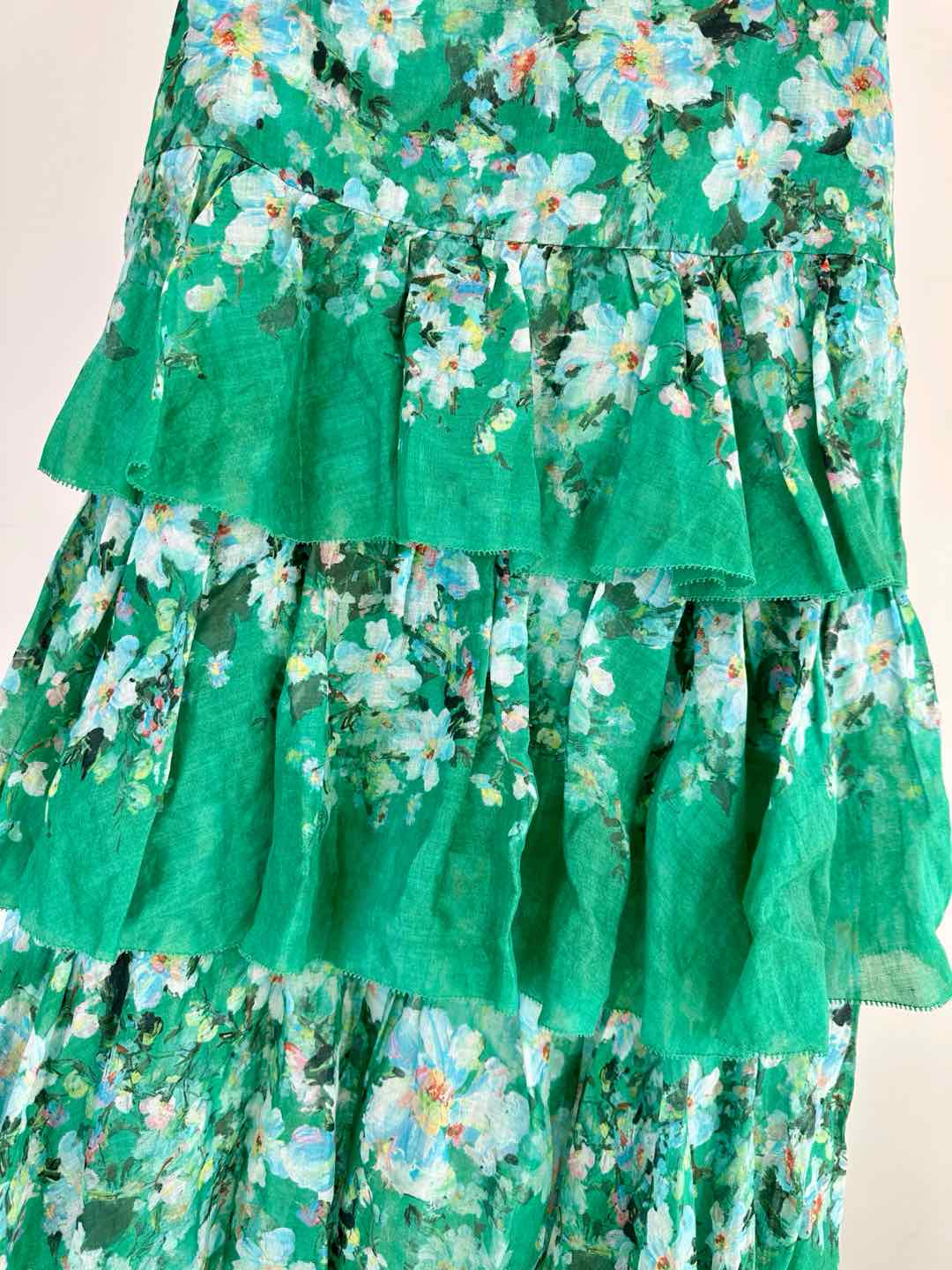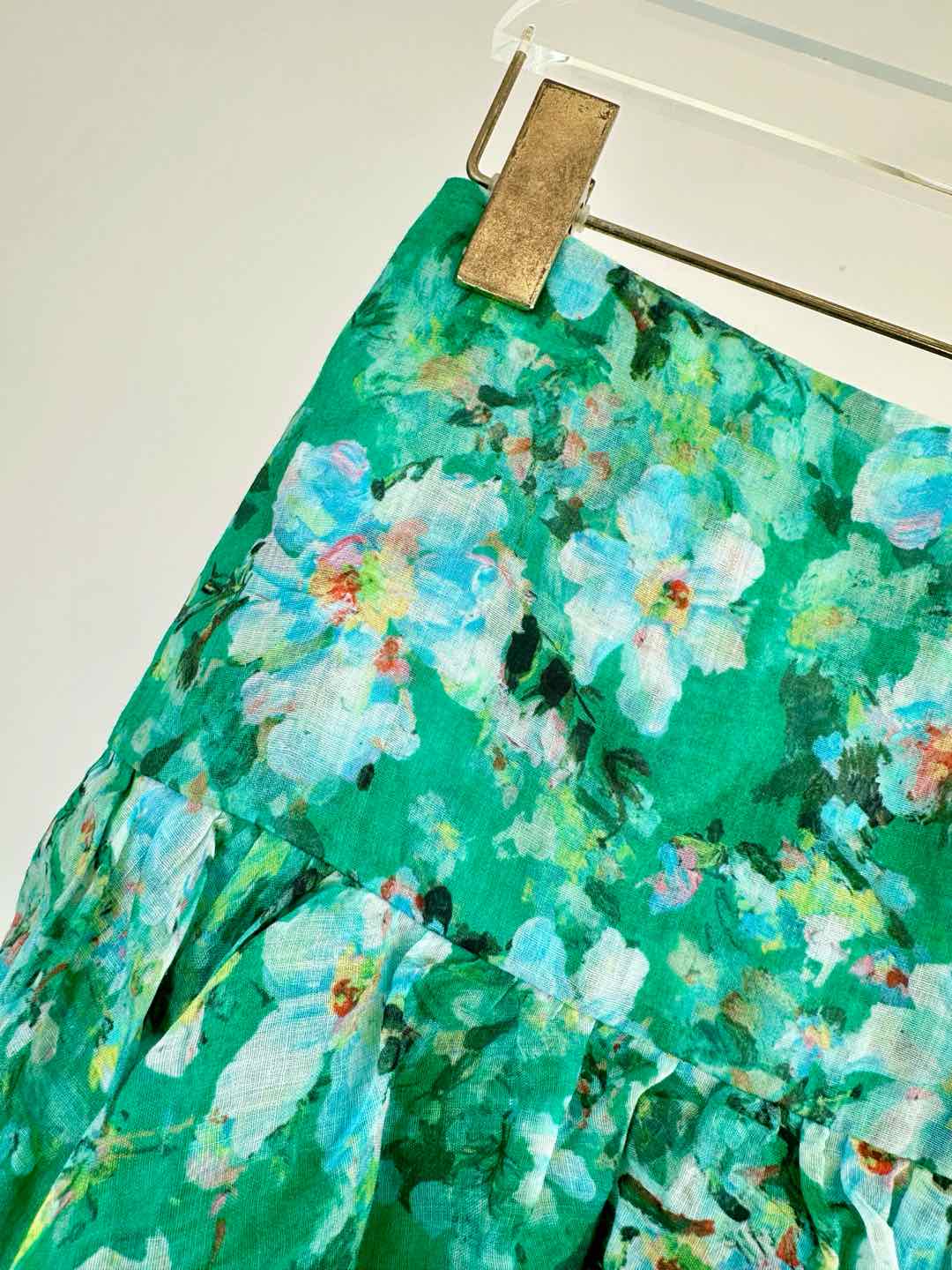 Details: Resort Swim Collection Green Watercolour Floral Ramie Tiered Midi Skirt