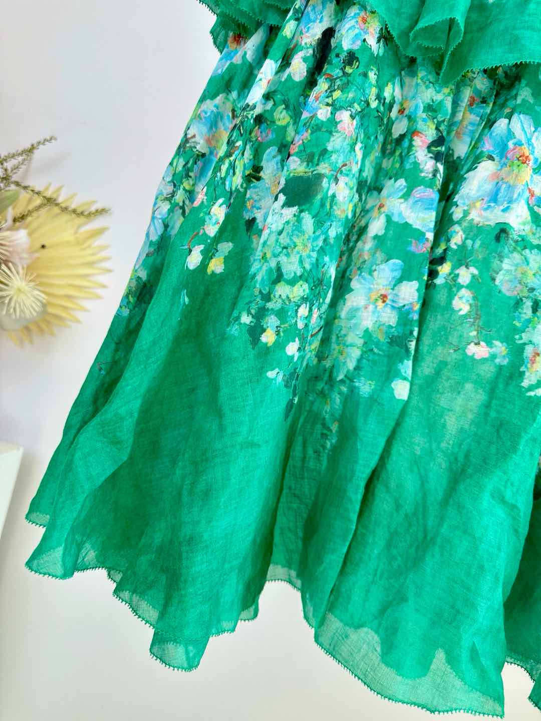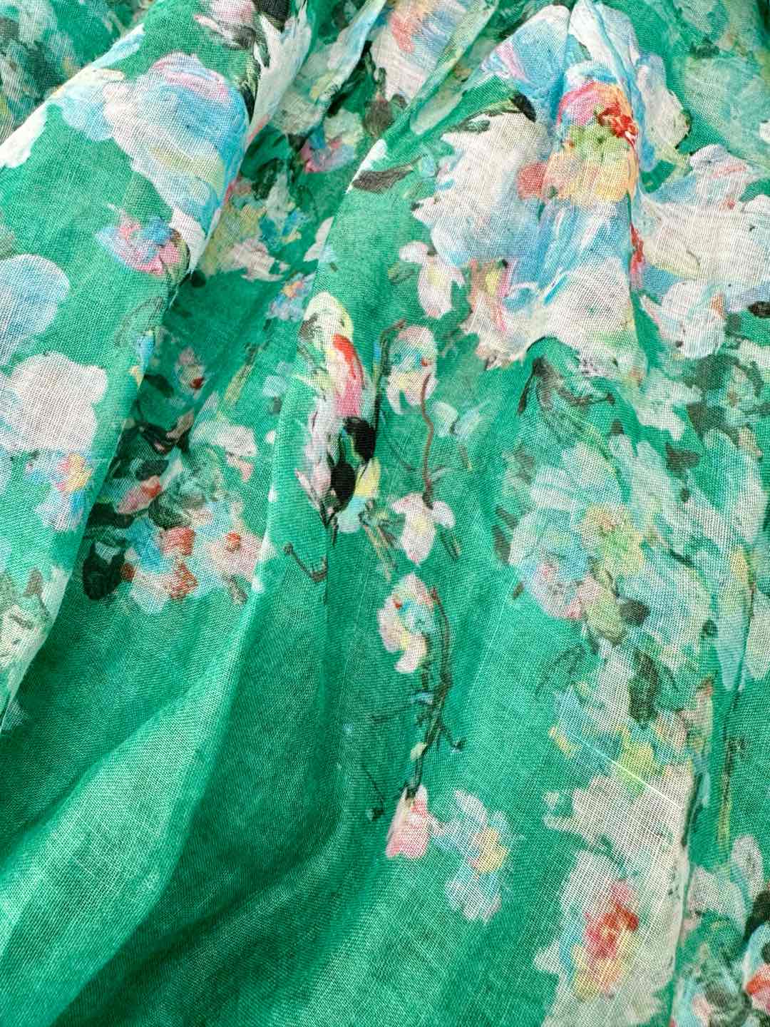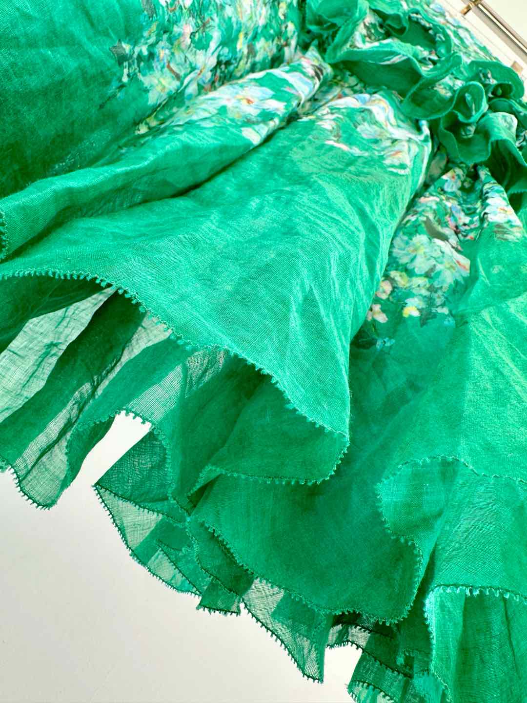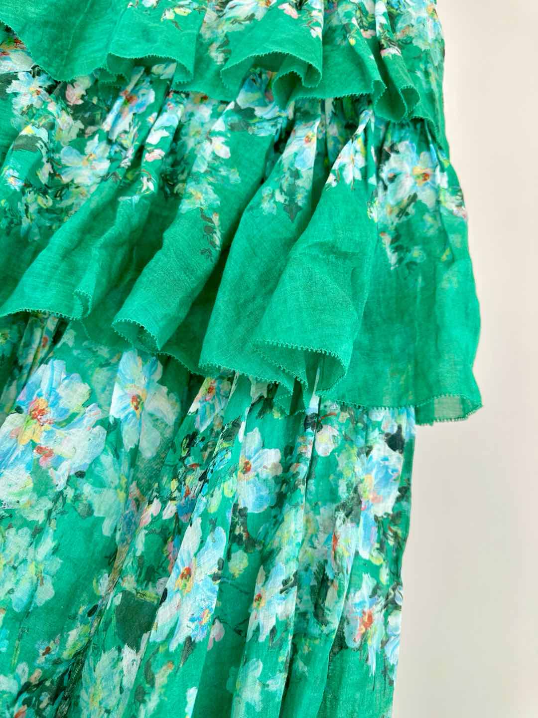 Details: Resort Swim Collection Green Watercolour Floral Ramie Tiered Midi Skirt