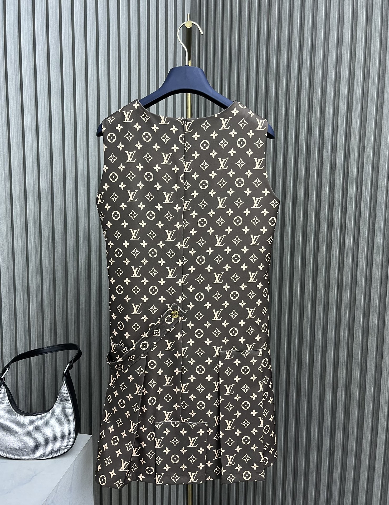 Details: Vintage sleeveless pleated dress in imported twill, fashionable and flattering.