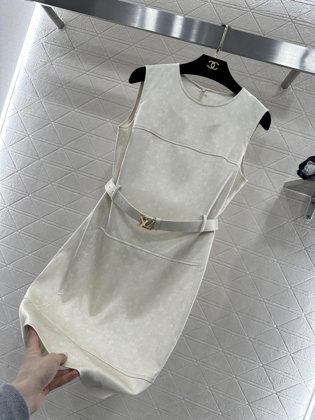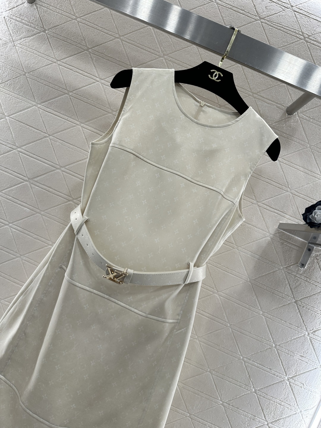 Details: Belted camisole dress in champagne and black, with vintage print, elegant and versatile. High-end custom, fine workmanship, original quality.