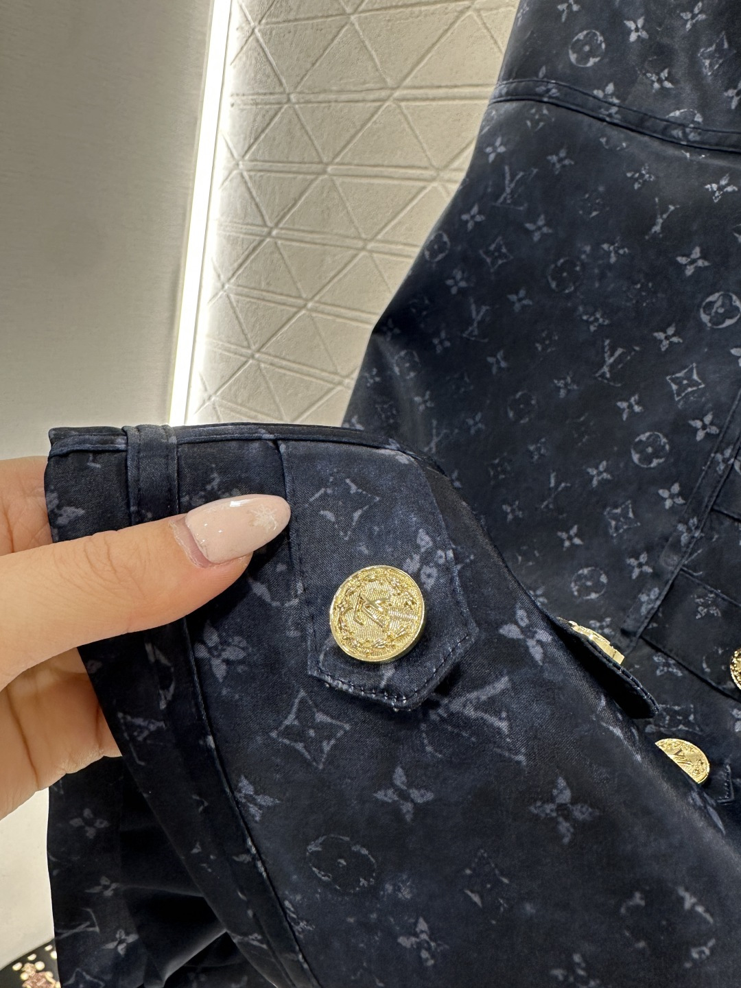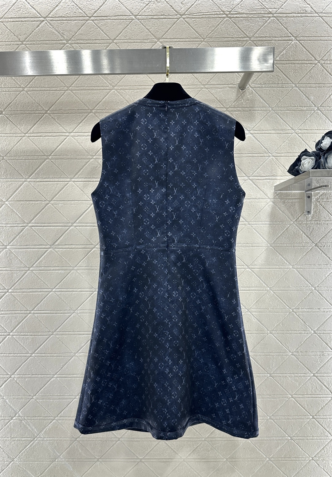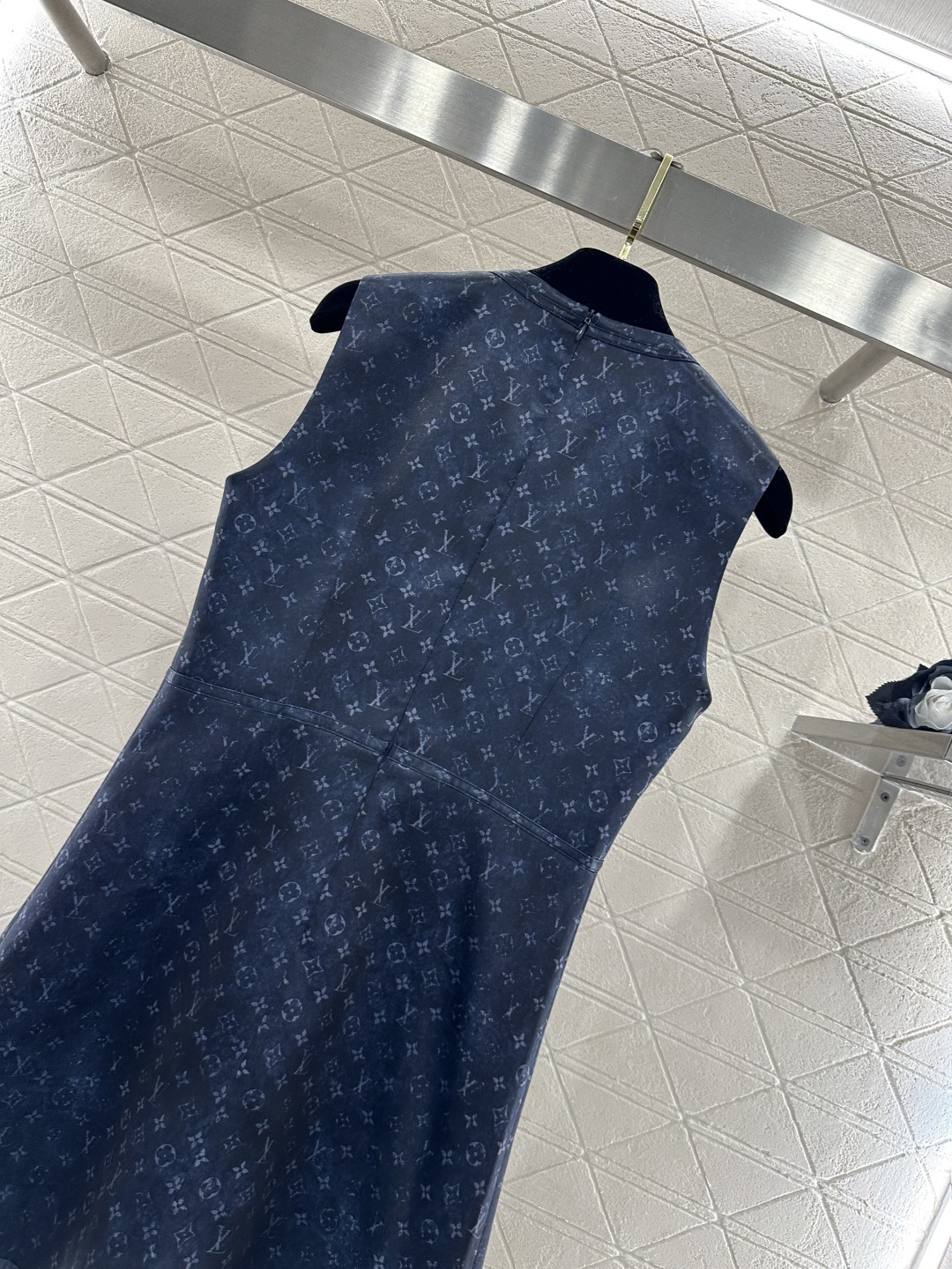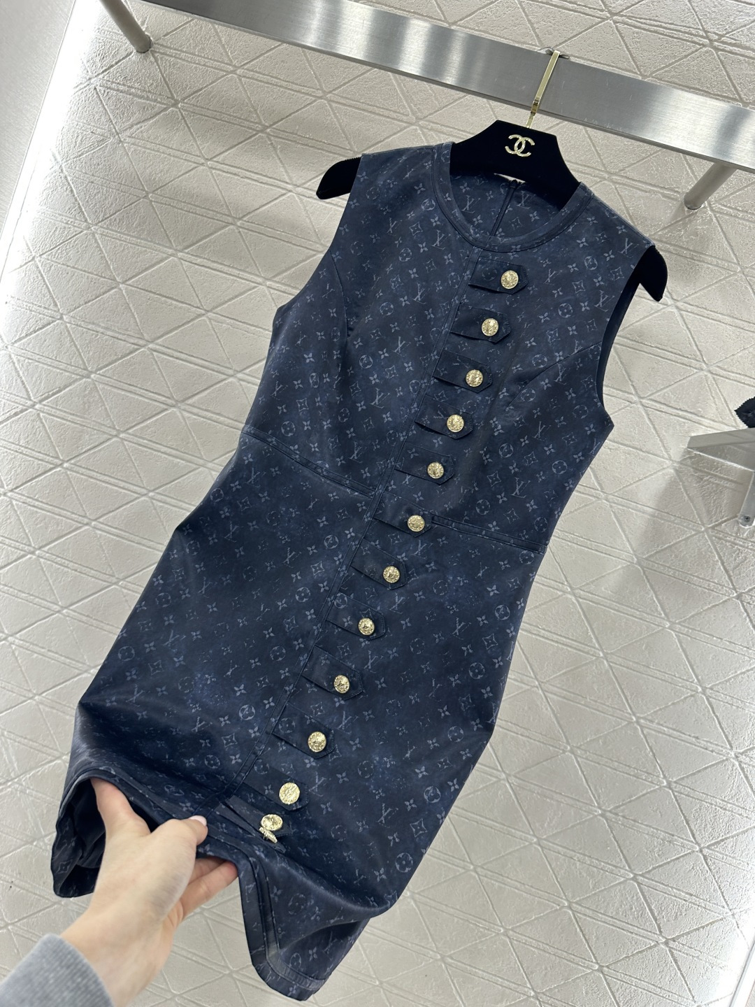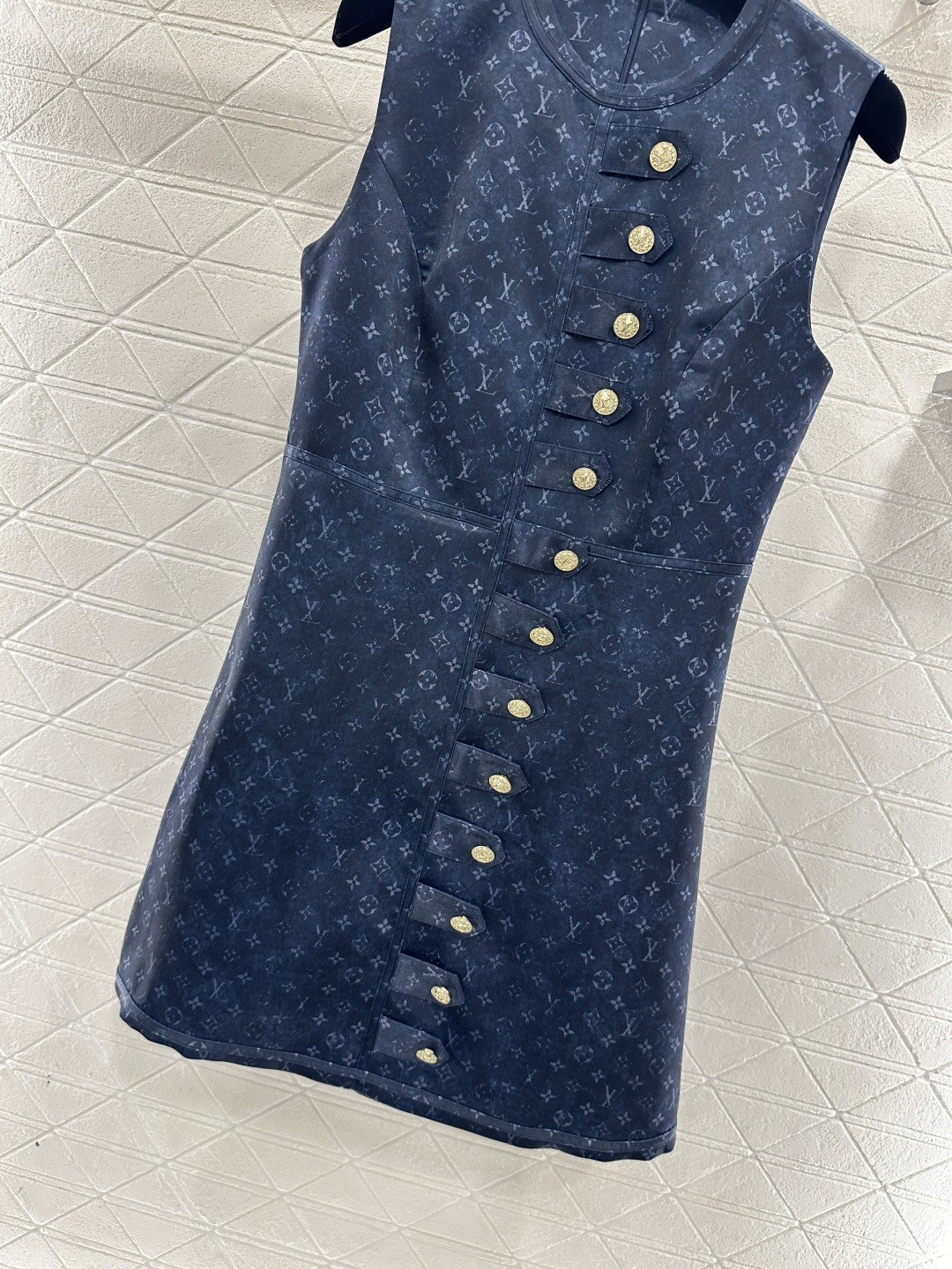 Details: Printed Buttoned Vest Dress in Ivory & Navy, High-end Custom, Fine Craft