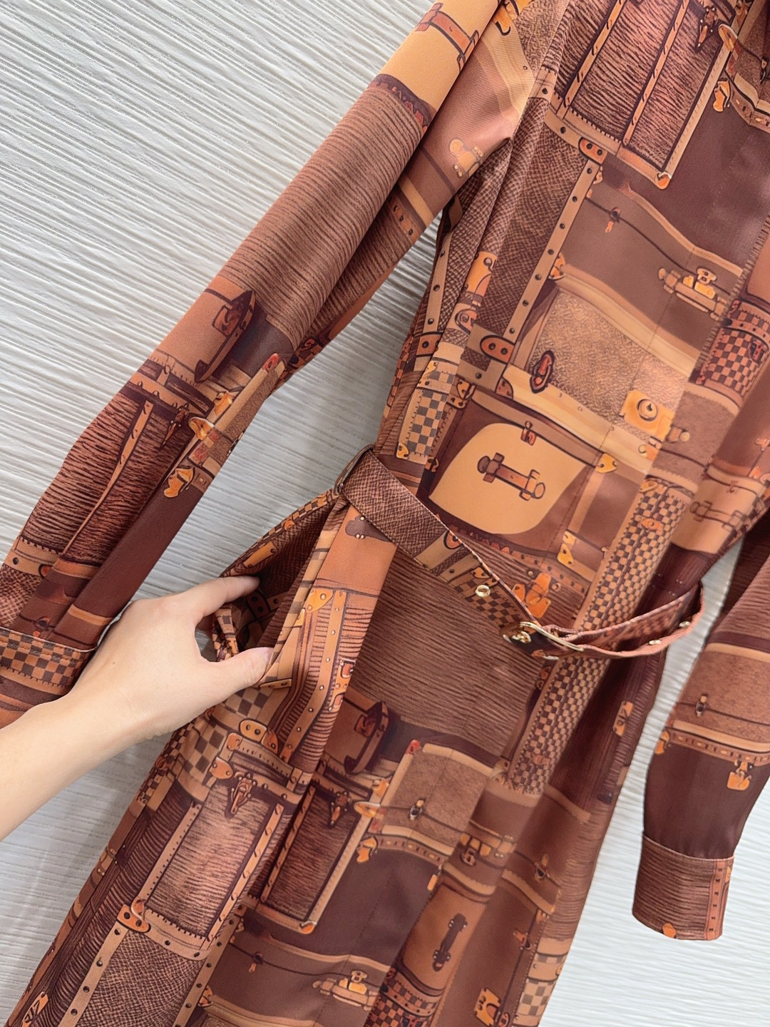 Details: Elegant vintage-inspired dress, featuring digital heat transfer print, with understated luxury, lightweight and graceful, suitable for a lazy romantic vacation, bespoke with fine craftsmanship
