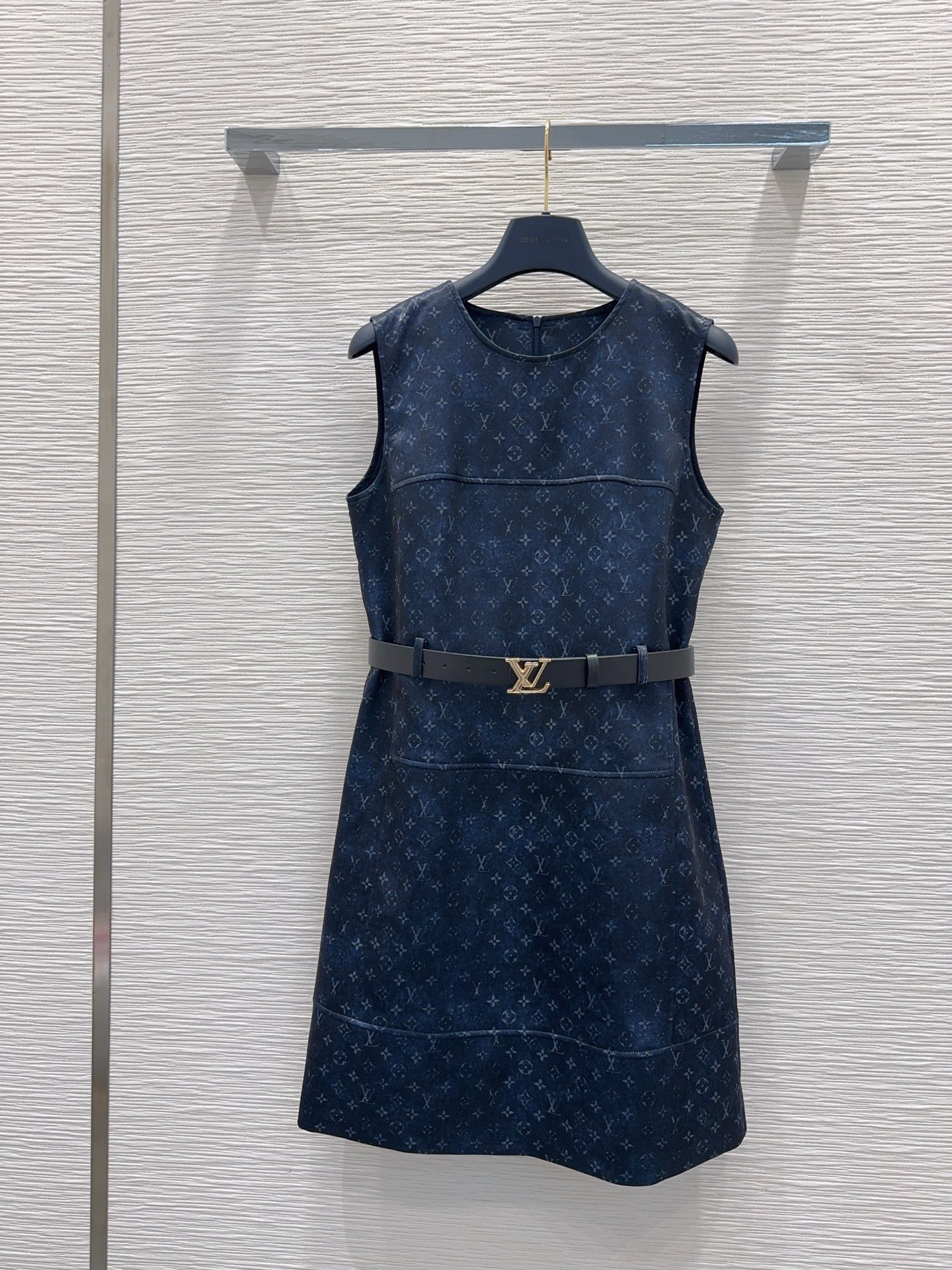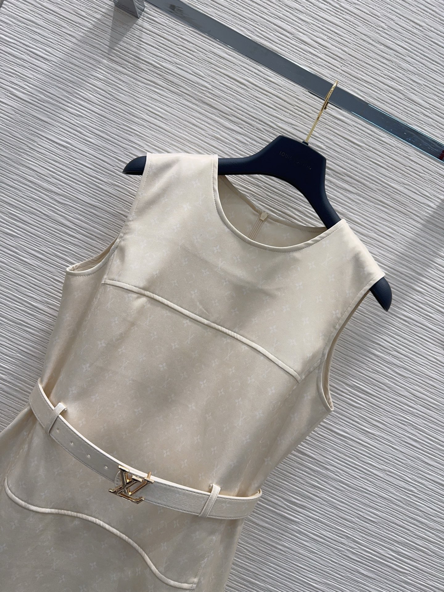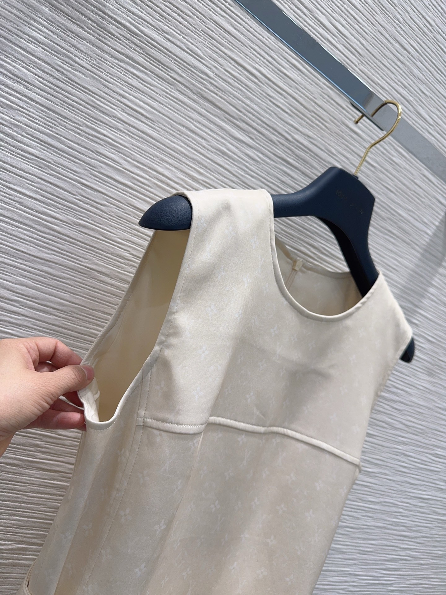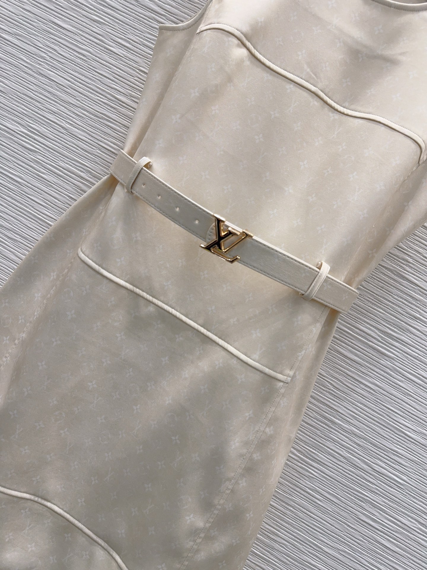 Details: Sleeveless waist-cinching dress with hidden floral pattern, elegant for work and dates. Available in blue and apricot, SML sizes.