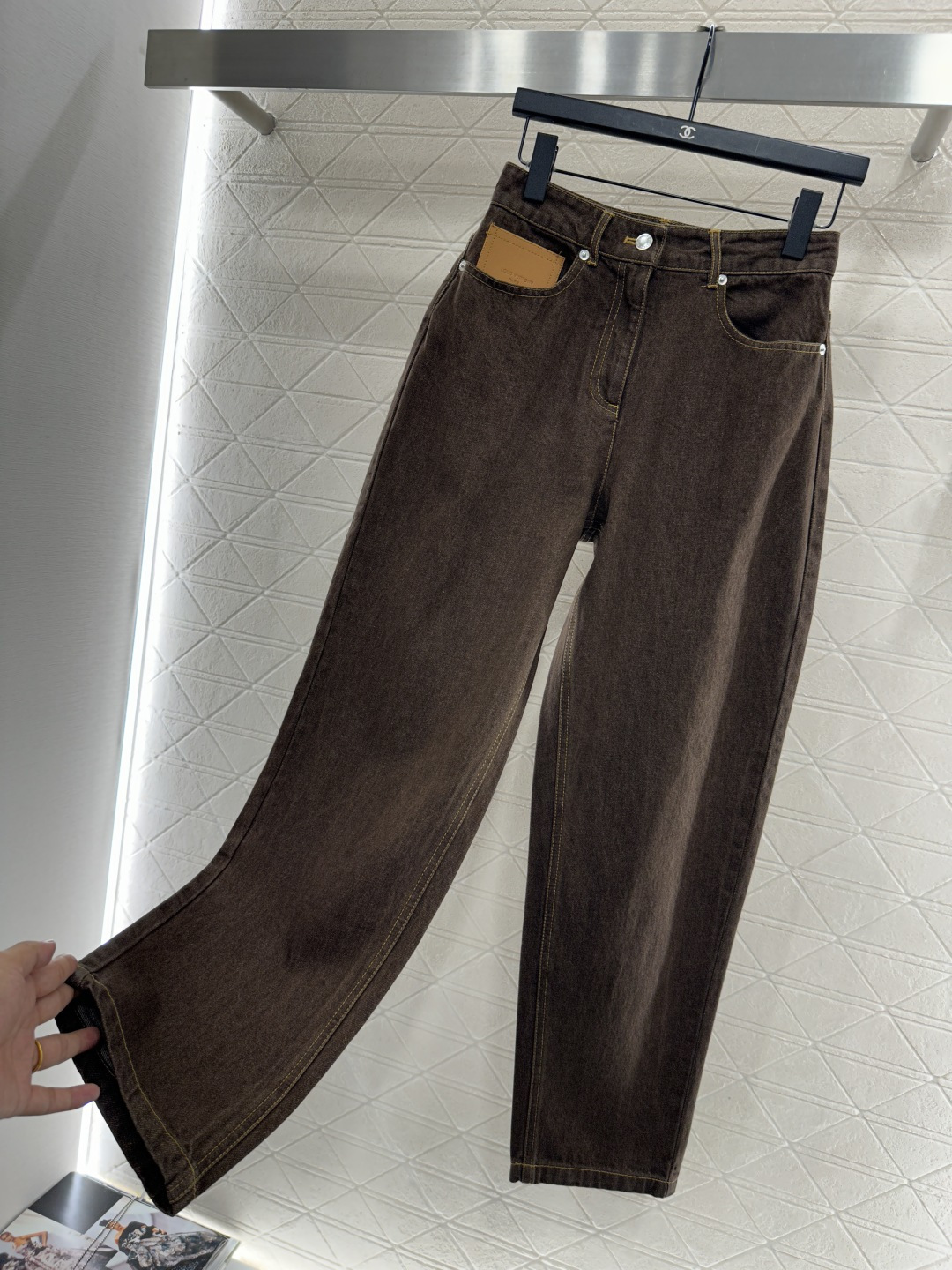 Details: Leather Patch Denim Harlan Trousers, Stylish and Versatile All Year Round, High - end Customization, Exquisite Craftsmanship