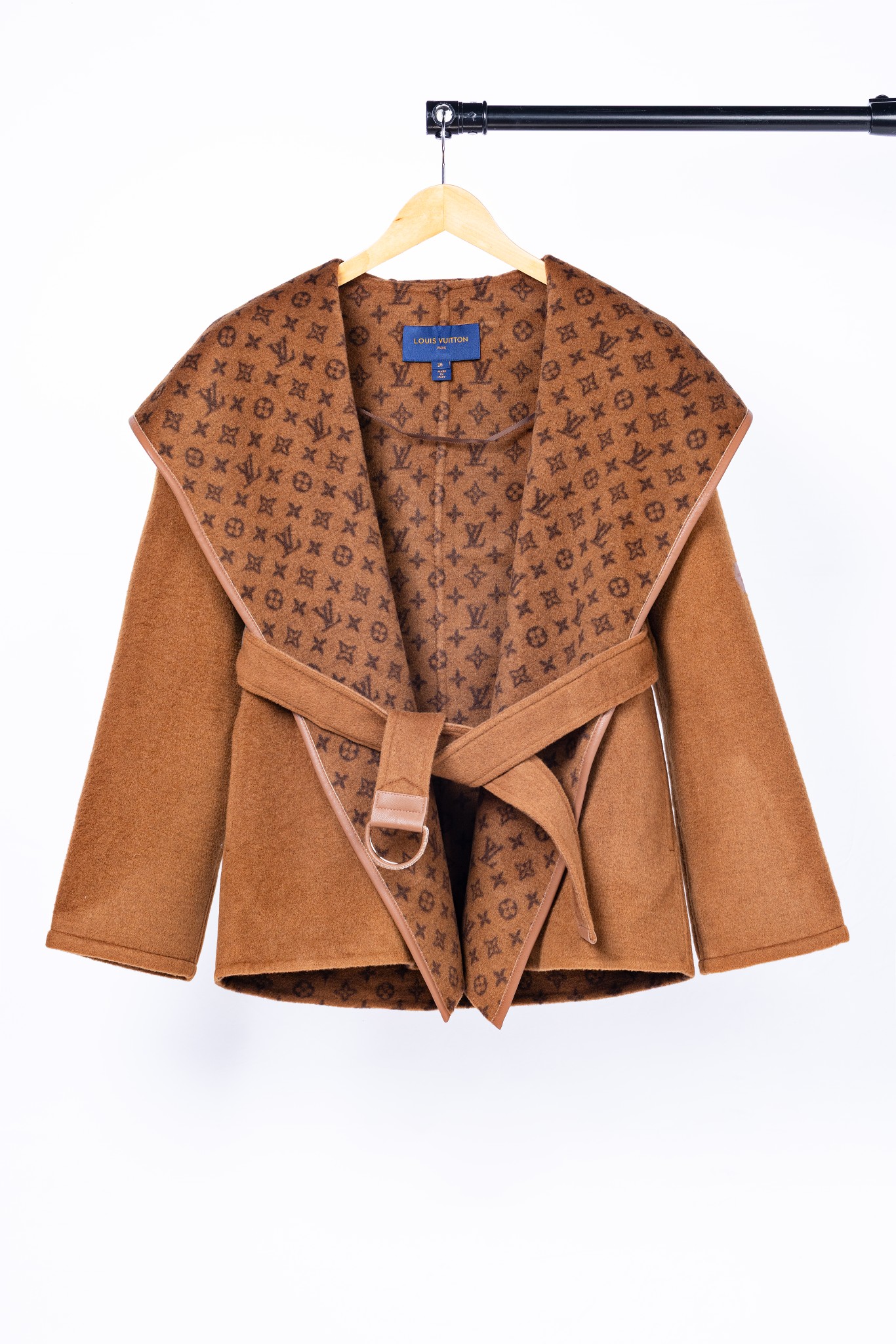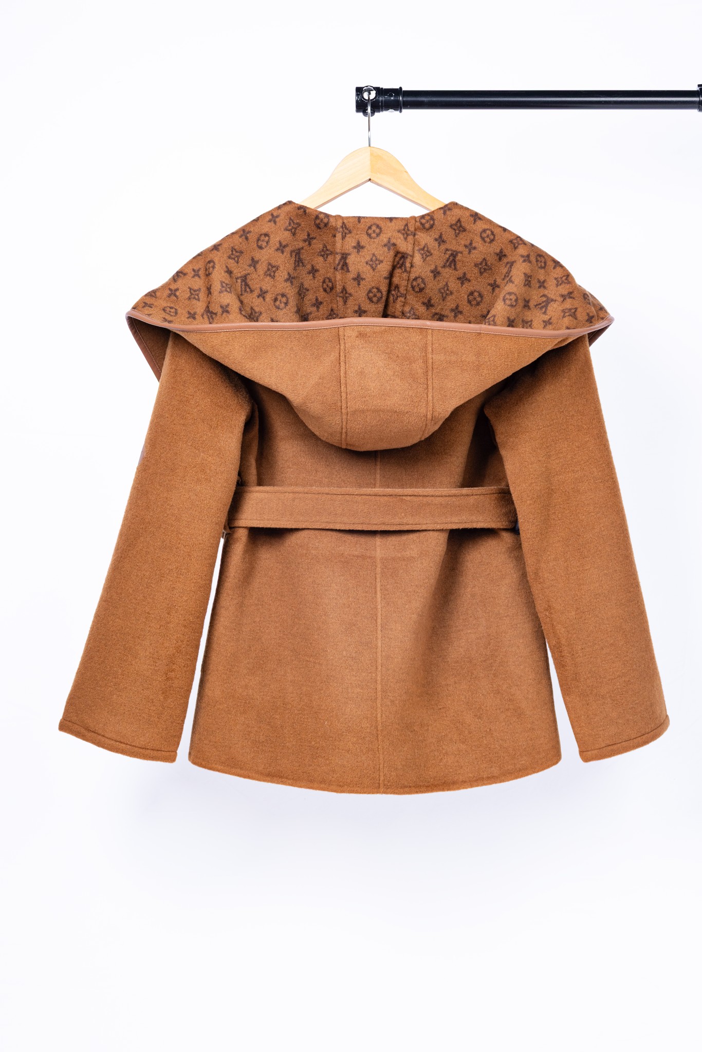 Details: Caramel Small Flower Short Coat, Sizes 34-40, Standard Dust Bag, 99% Wool, 1% Silk