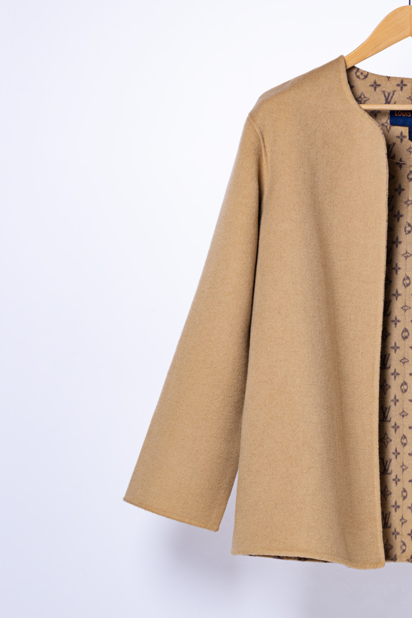 Details: Camel Round Neck Small Flower Short Coat, Sizes 34-40, Standard Dust Bag, 99% Wool, 1% Silk