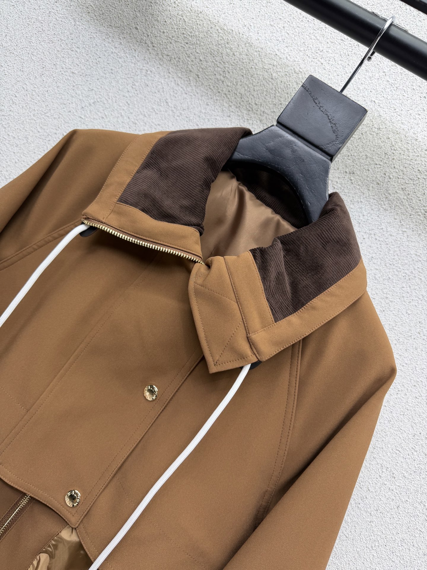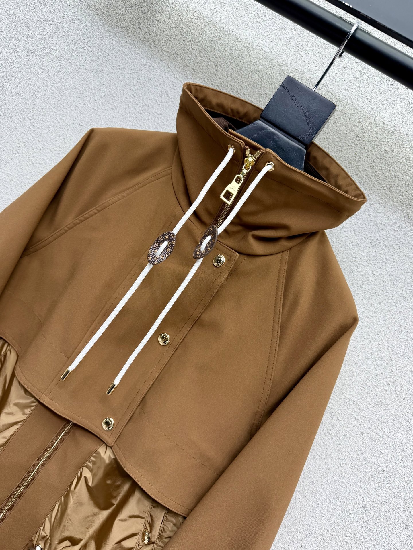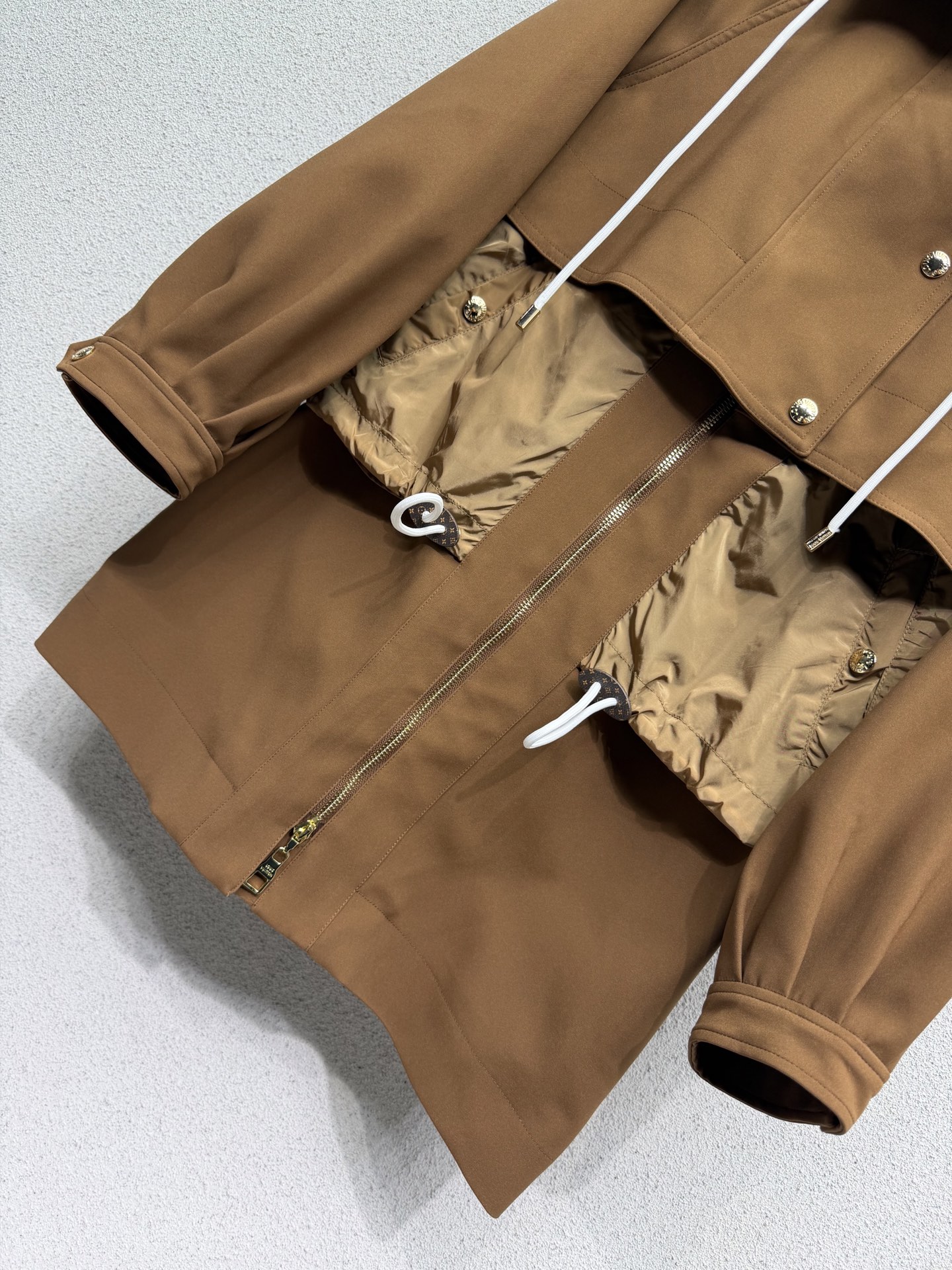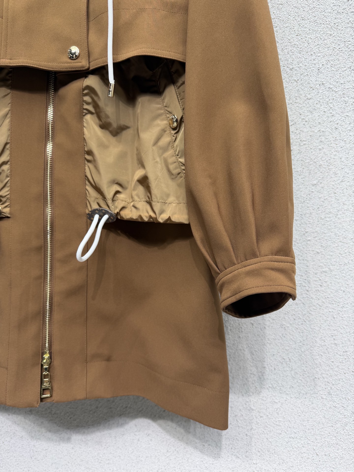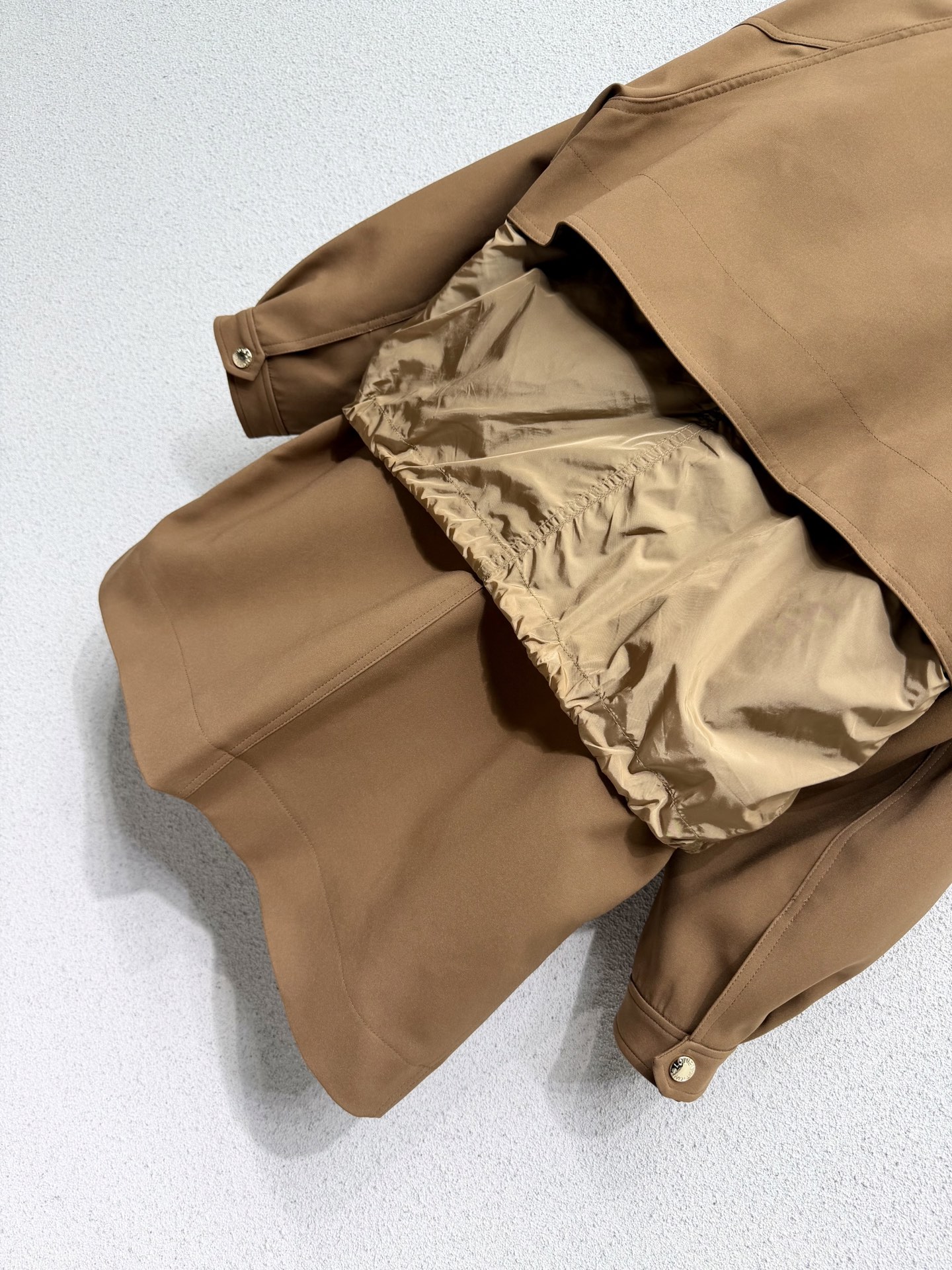 Details: Beige contrast color trench coat, innovative fabric, versatile and stylish, high-quality, sizes S to XL.