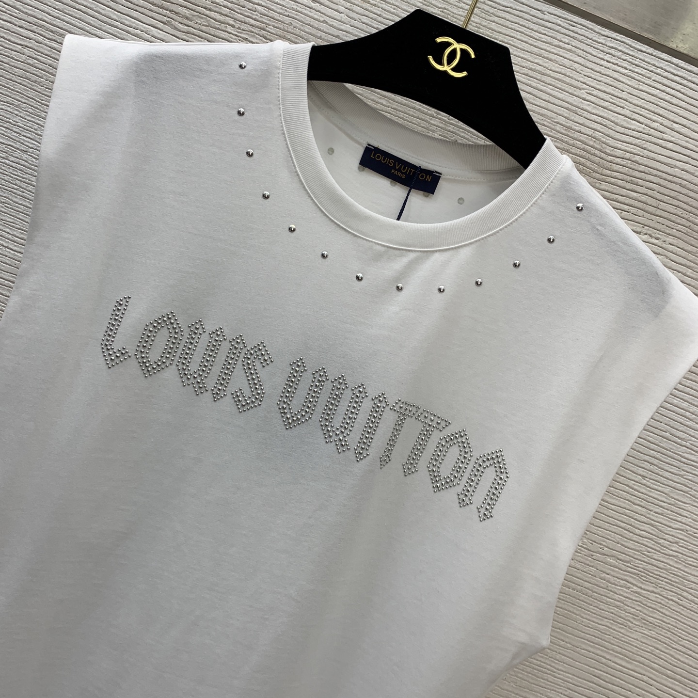 Details: New heavy riveted logo camisole T-shirt, available in black and white, size M. High-end customization with fine workmanship