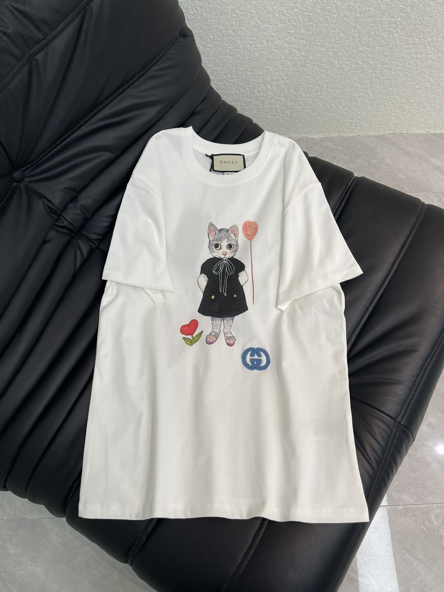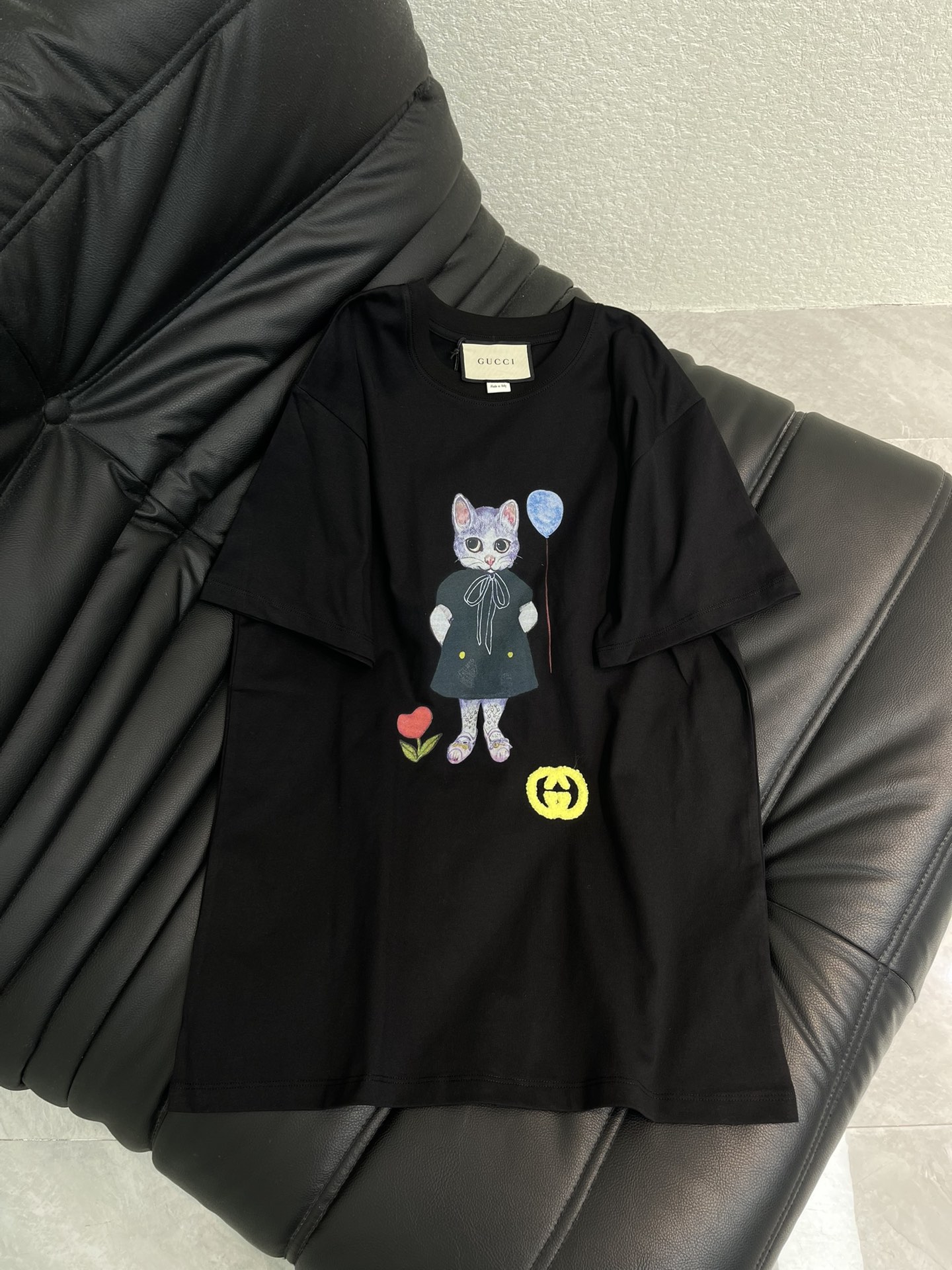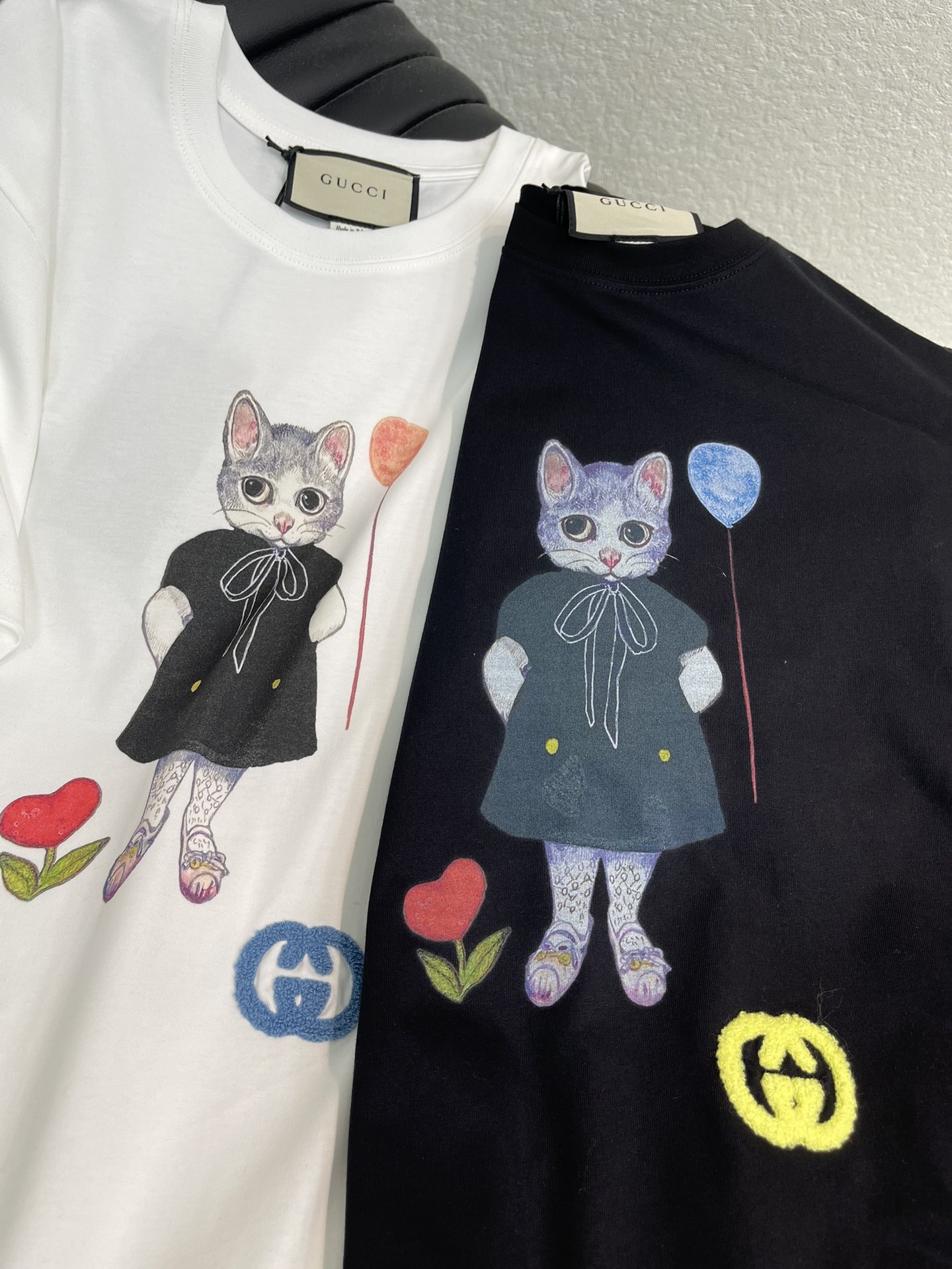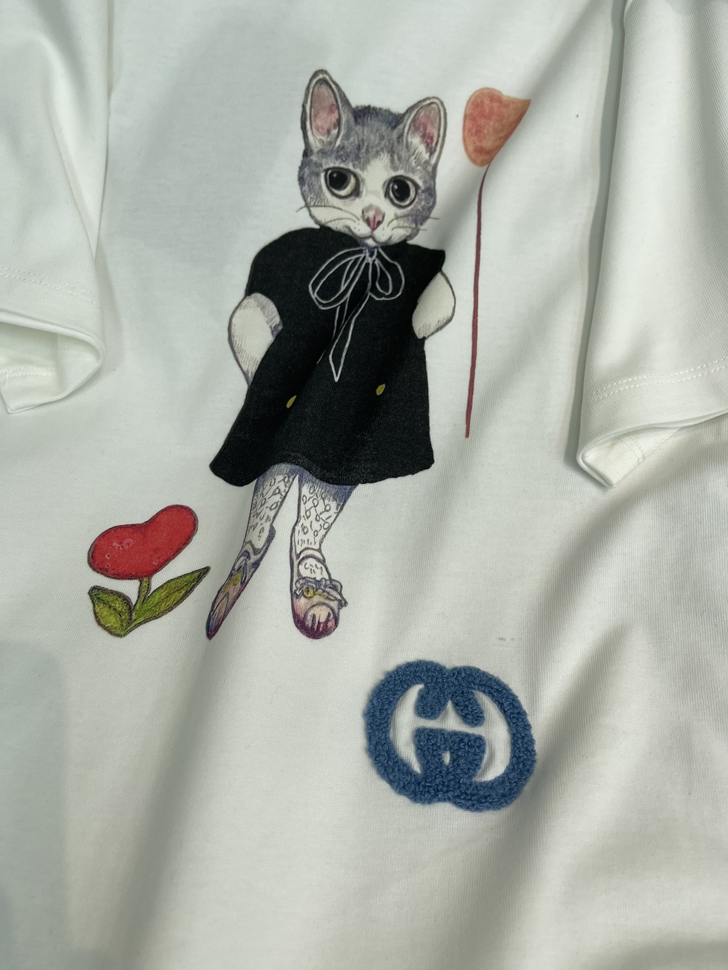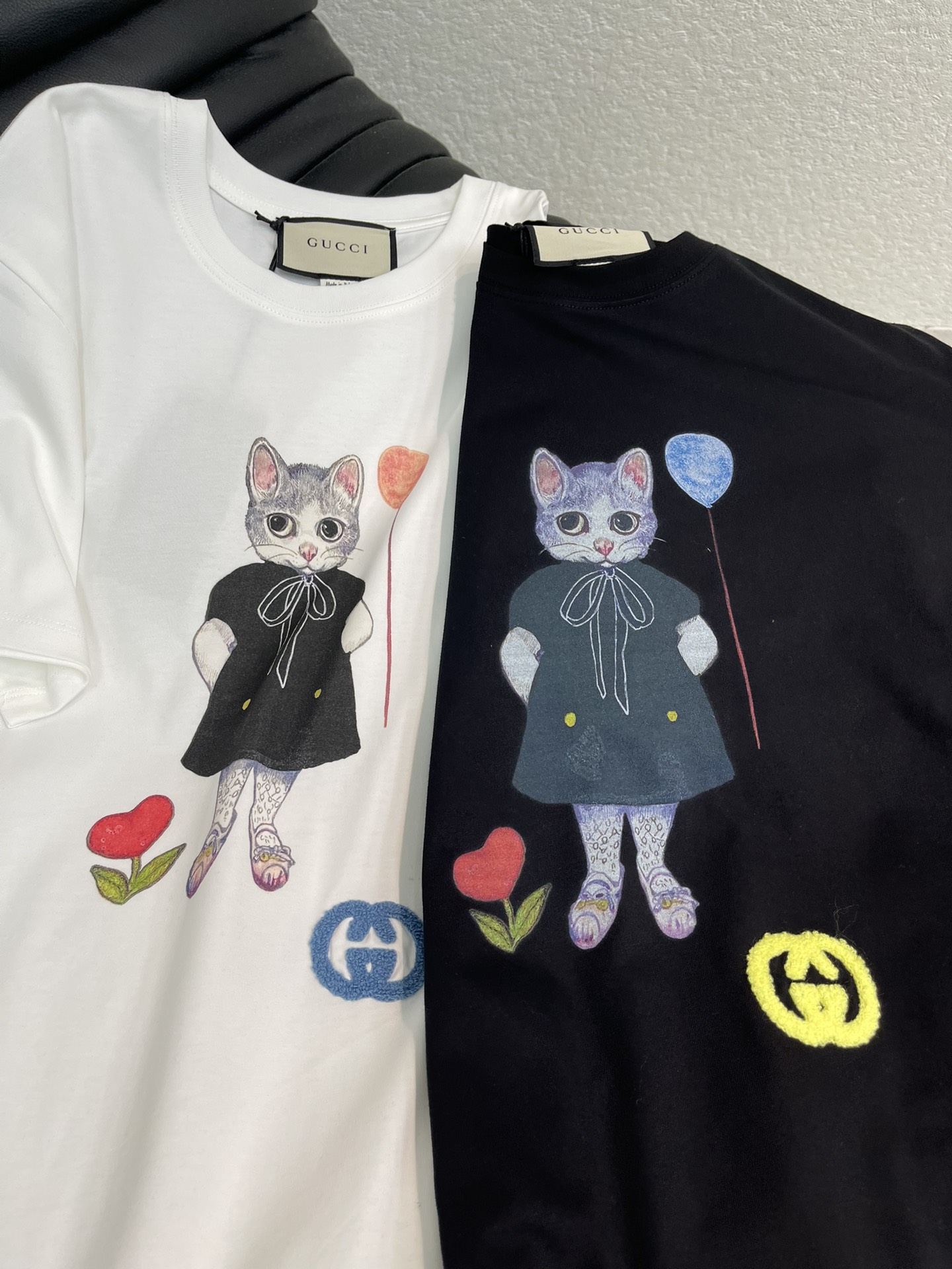 Details: New cotton short-sleeved T-shirt with balloon cat towel embroidery, loose fit, sizes SML AA.
