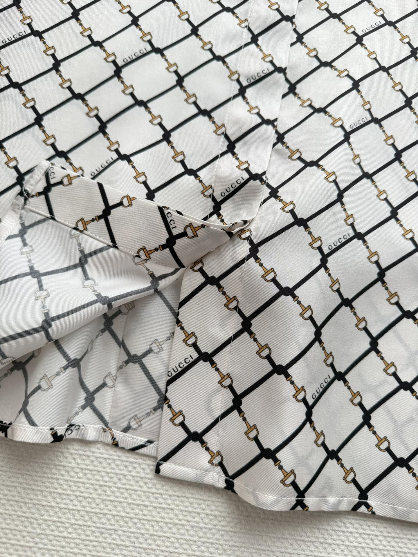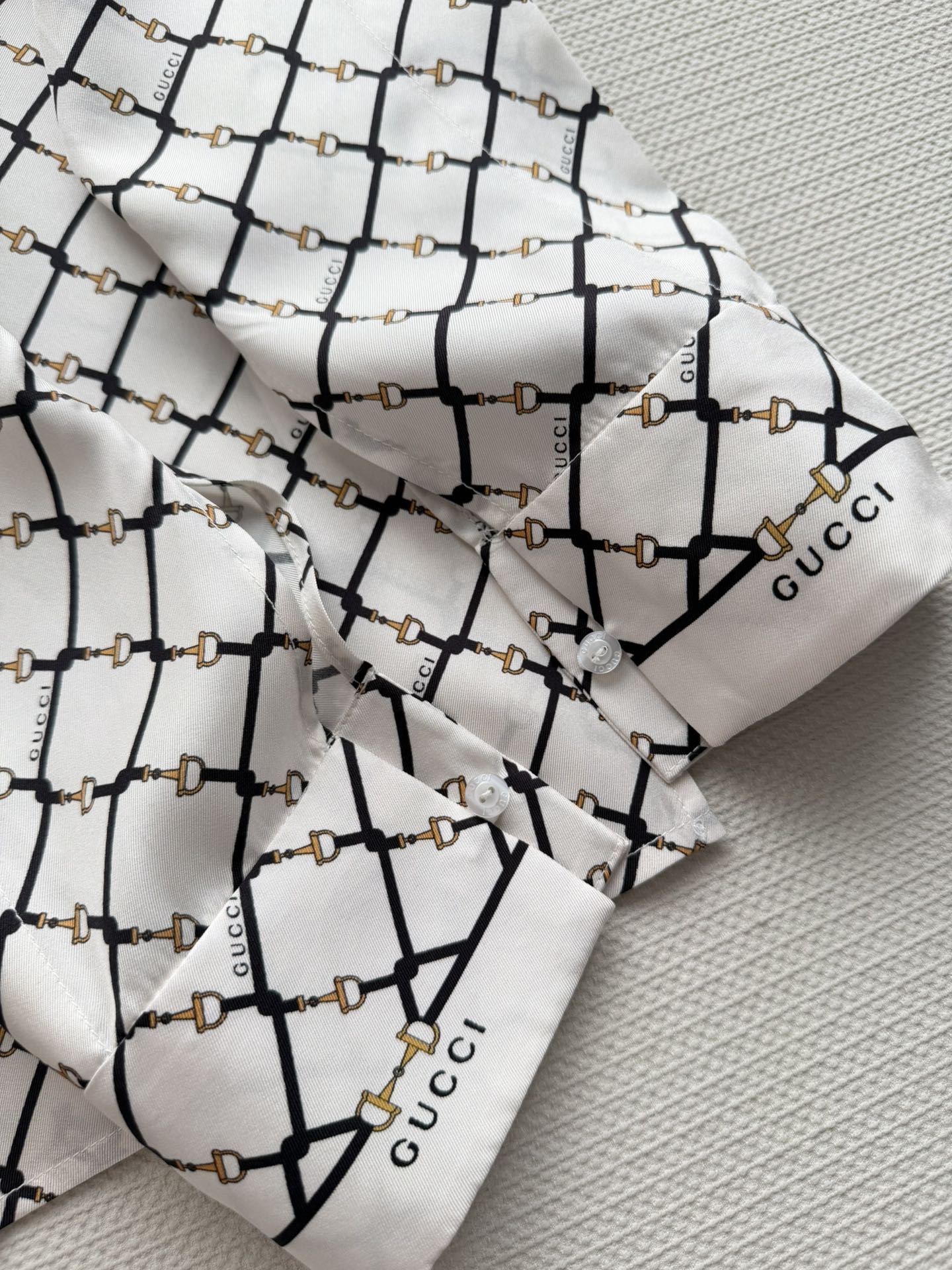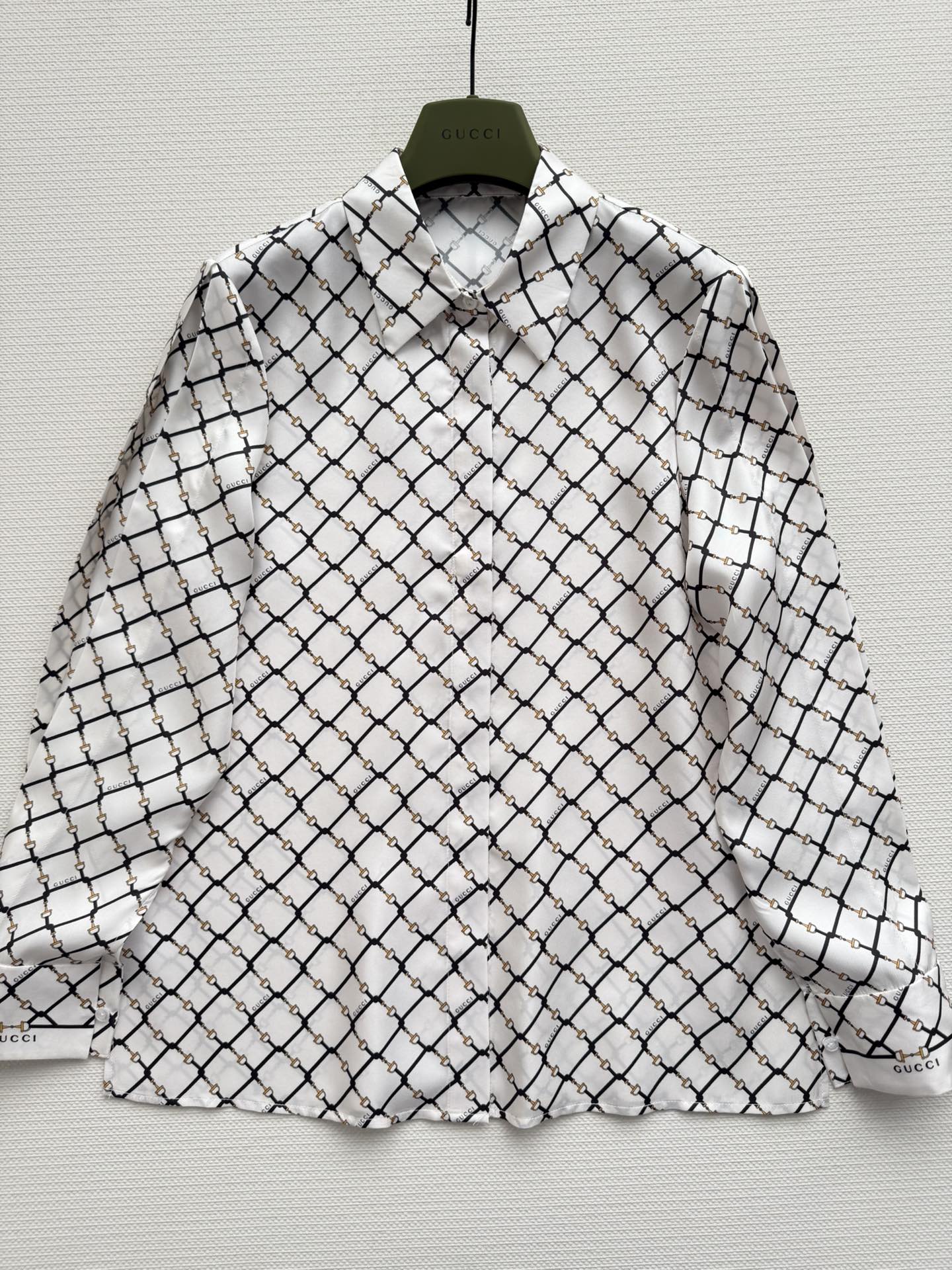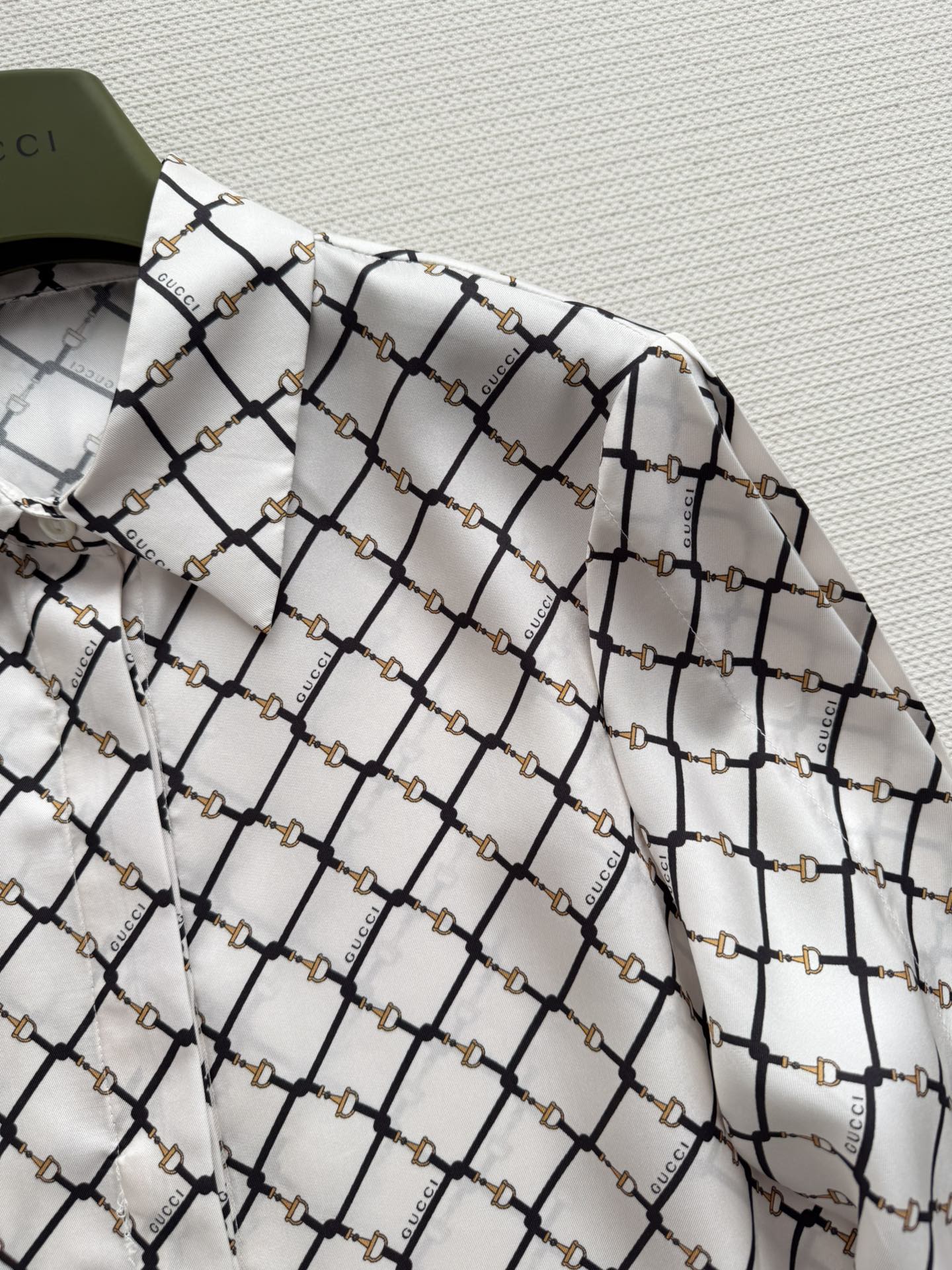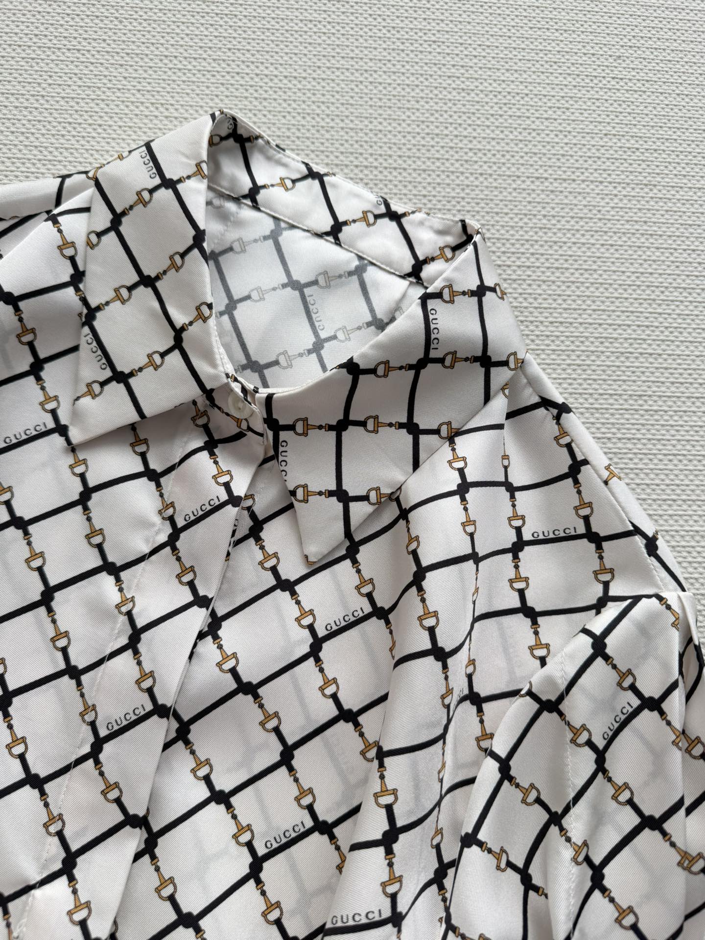 Details: New Horsebit Print Silk Shirt, 100% Silk, Comfortable for Spring and Summer, Versatile for Various Occasions
