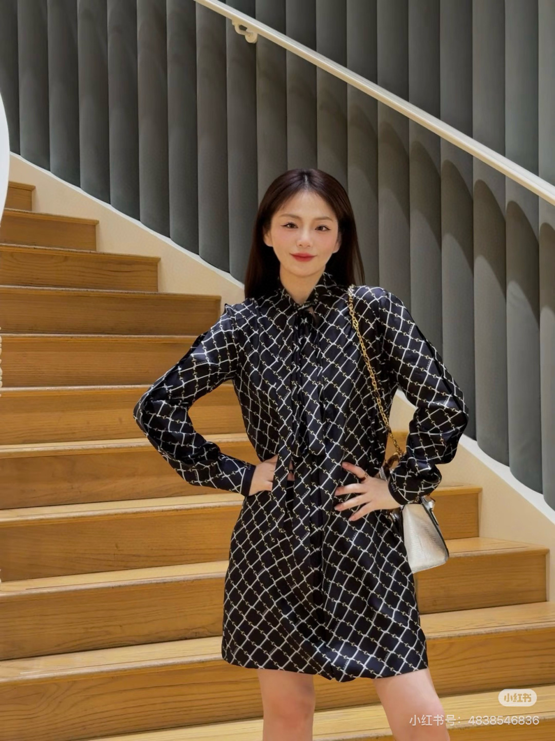Details: New silk dress with horse bit logo, black, size M, high-end customization, fine workmanship
