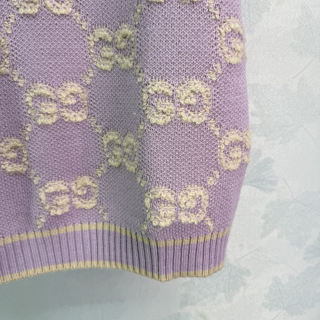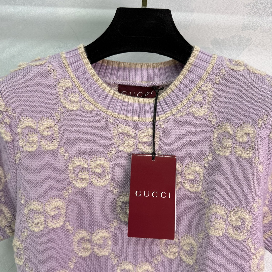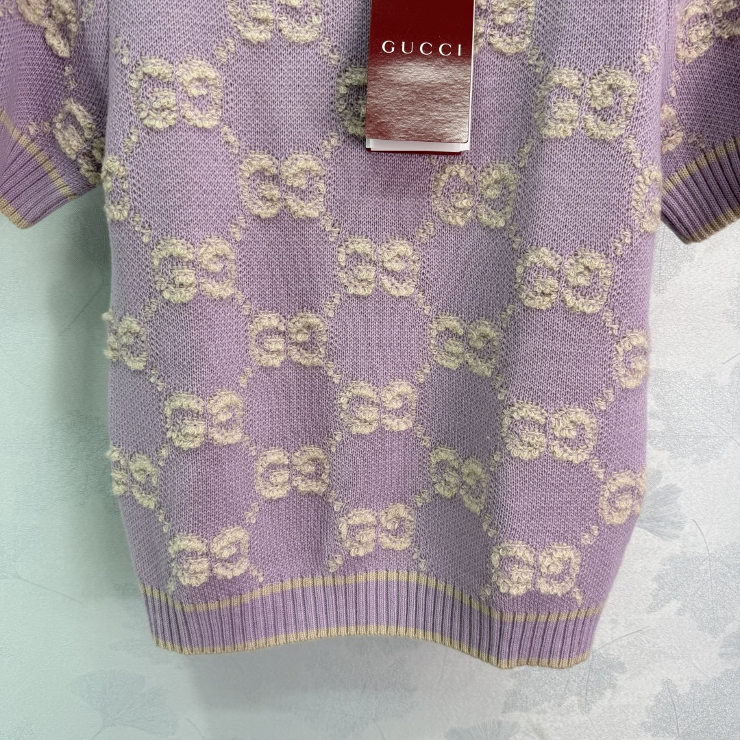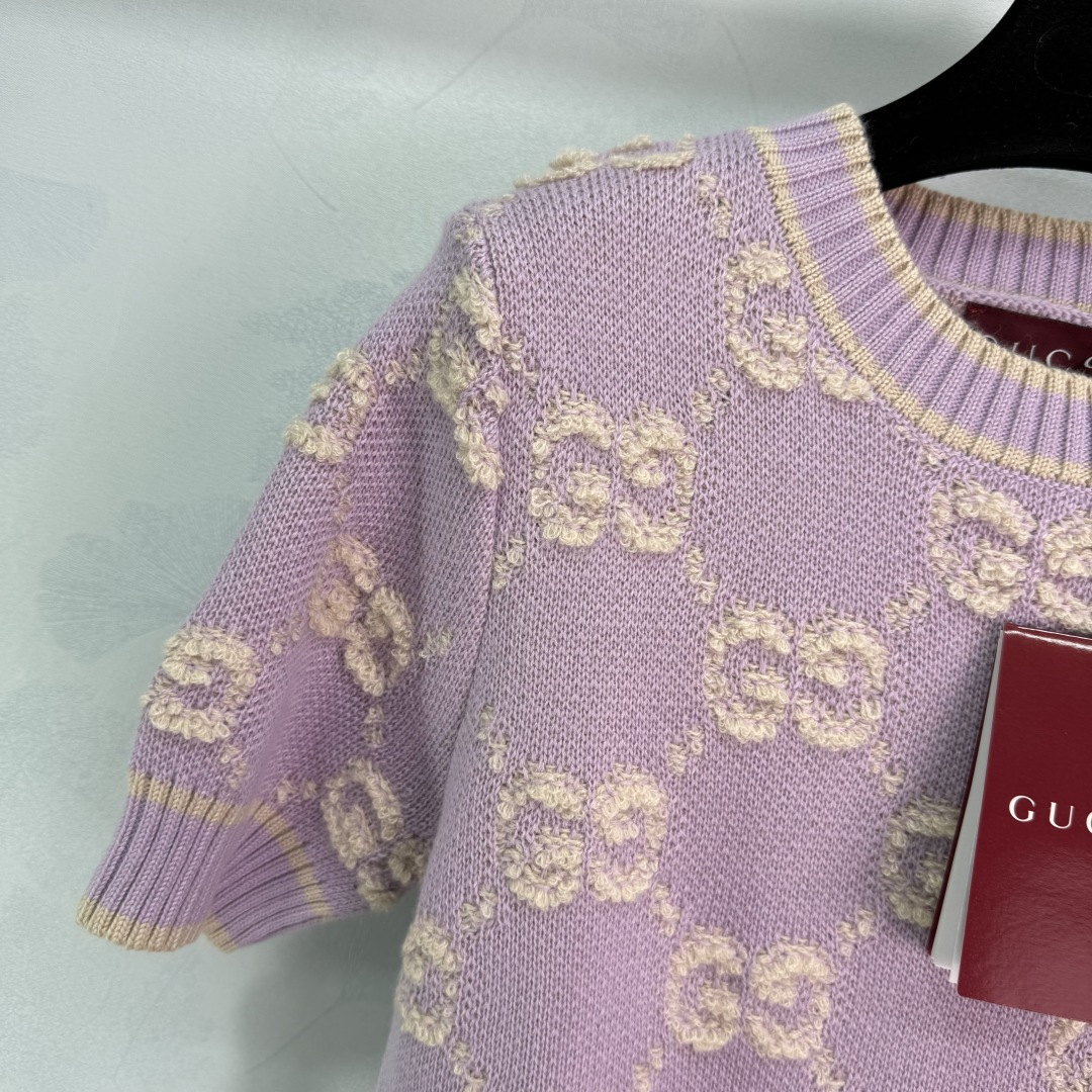 Details: early autumn round-necked jacquard short-sleeved woolen sweater with a tailored fit and double G patterns. High-end customization, delicate craftsmanship