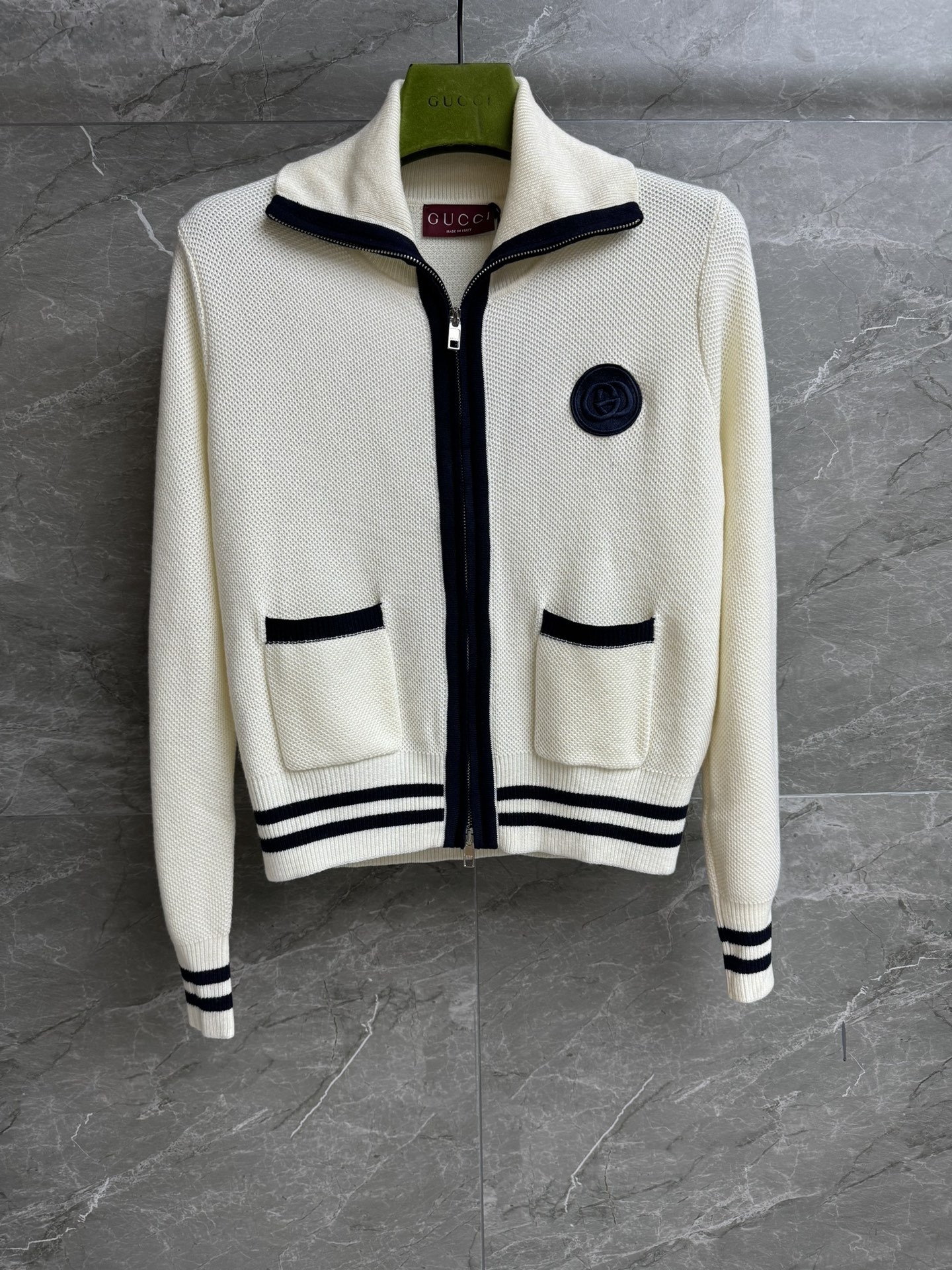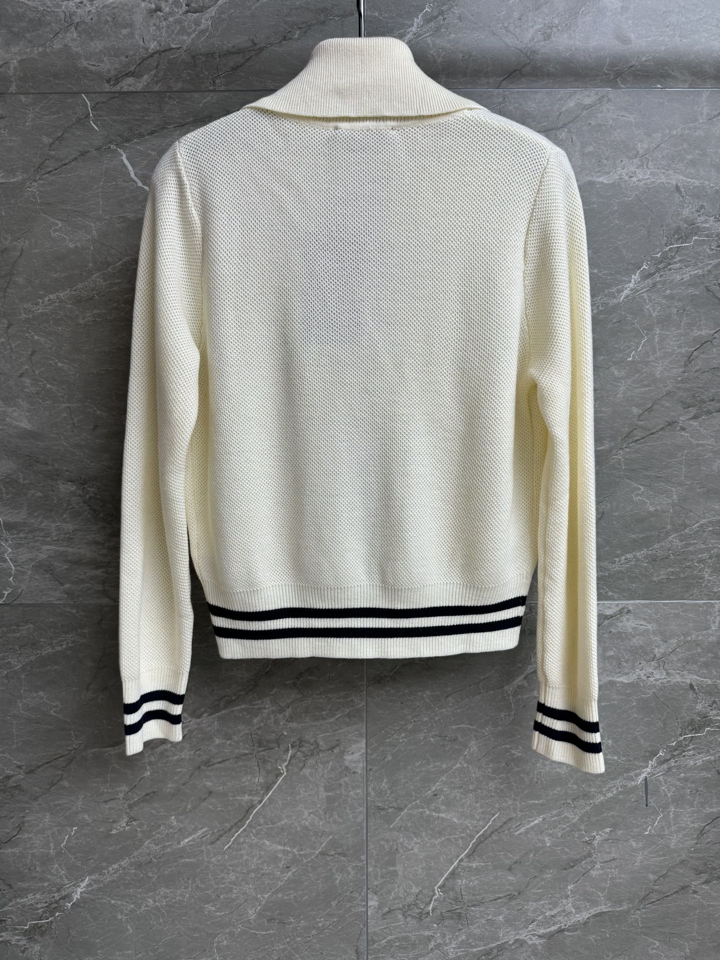 Details: Early Autumn Knitted Cardigan with Retro Color Blocking. Wool Fabric, Flattering and Elegant. Premium Tailoring, Exquisite Workmanship, Authentic Quality Replica.