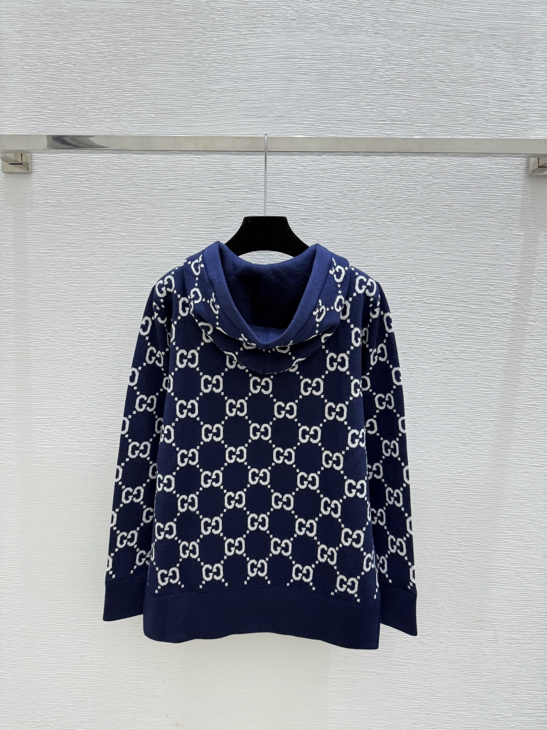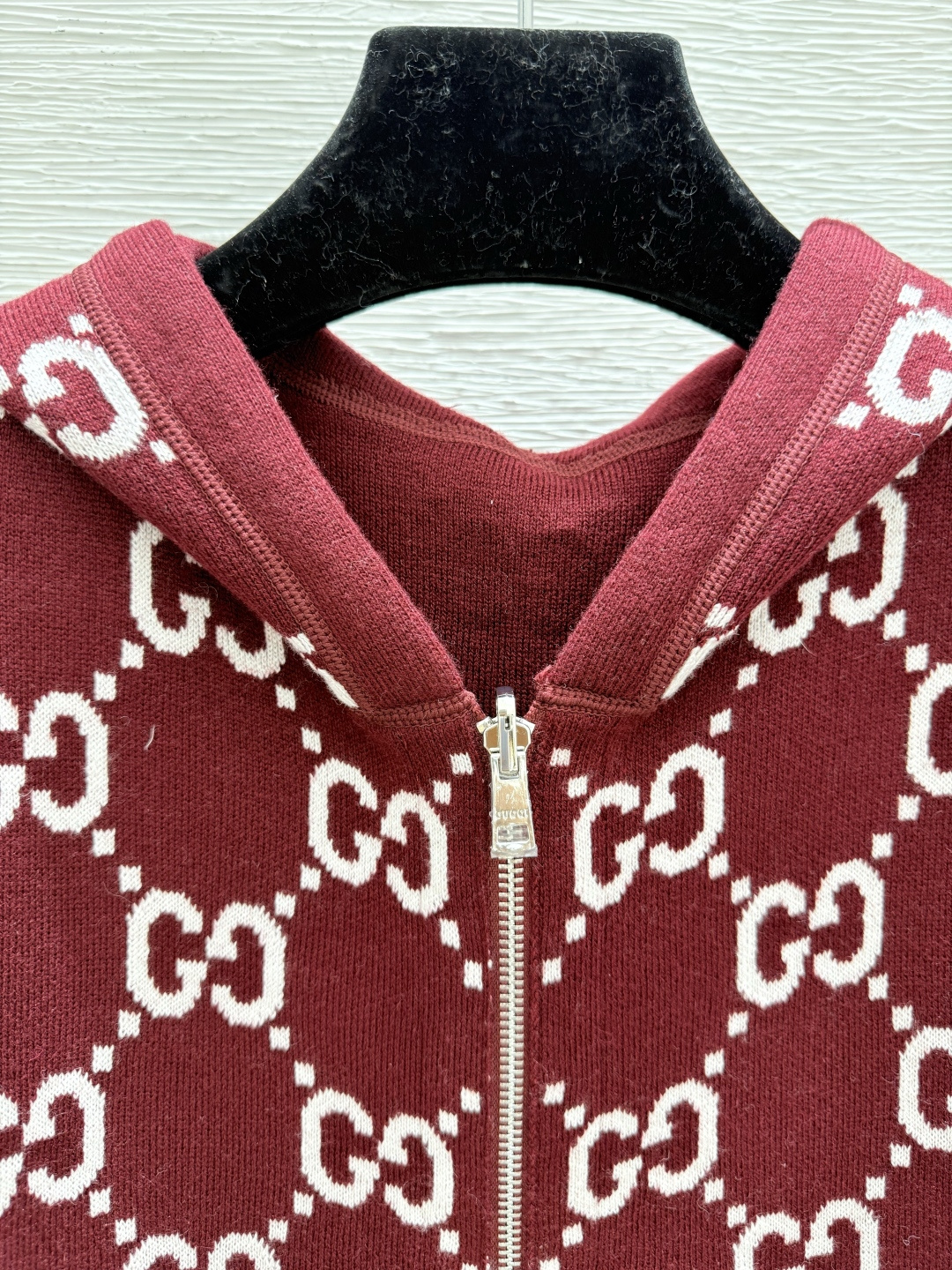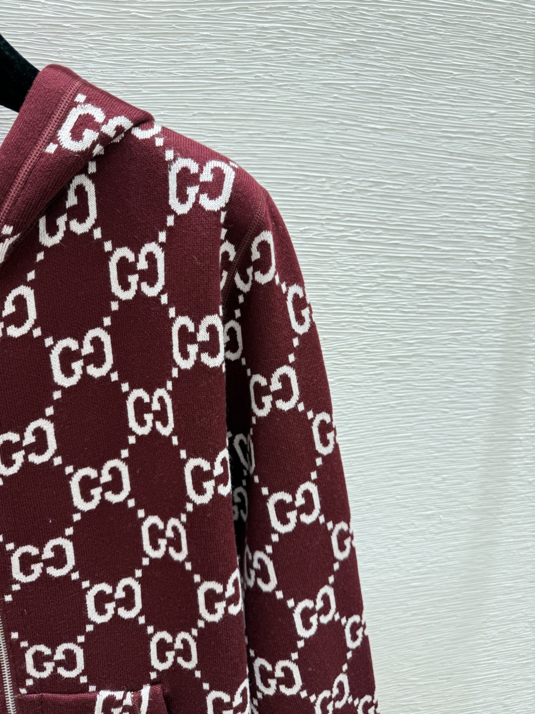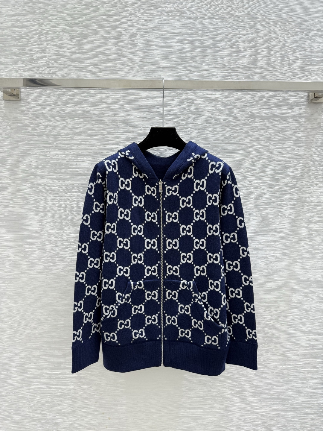 Details: Early autumn monogram knitted cardigan in red and sapphire, available in sizes 36 - 40. High-end custom, fine workmanship
