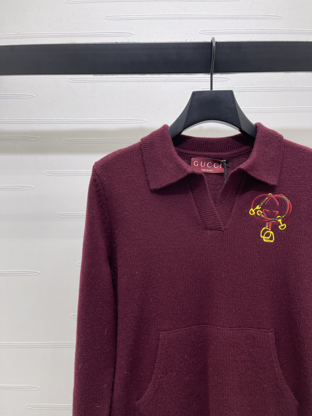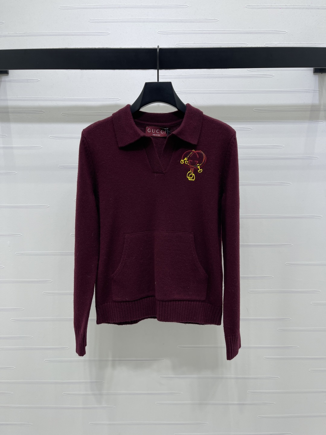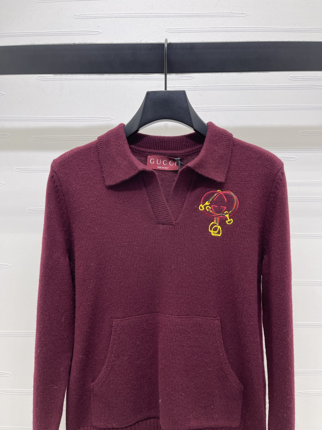 Details: Early Spring Collared Embroidery Letter Knit Long - Sleeve Sweater, Custom Yarn, 2 Colors, 3 Sizes. High - end Custom, Fine Workmanship