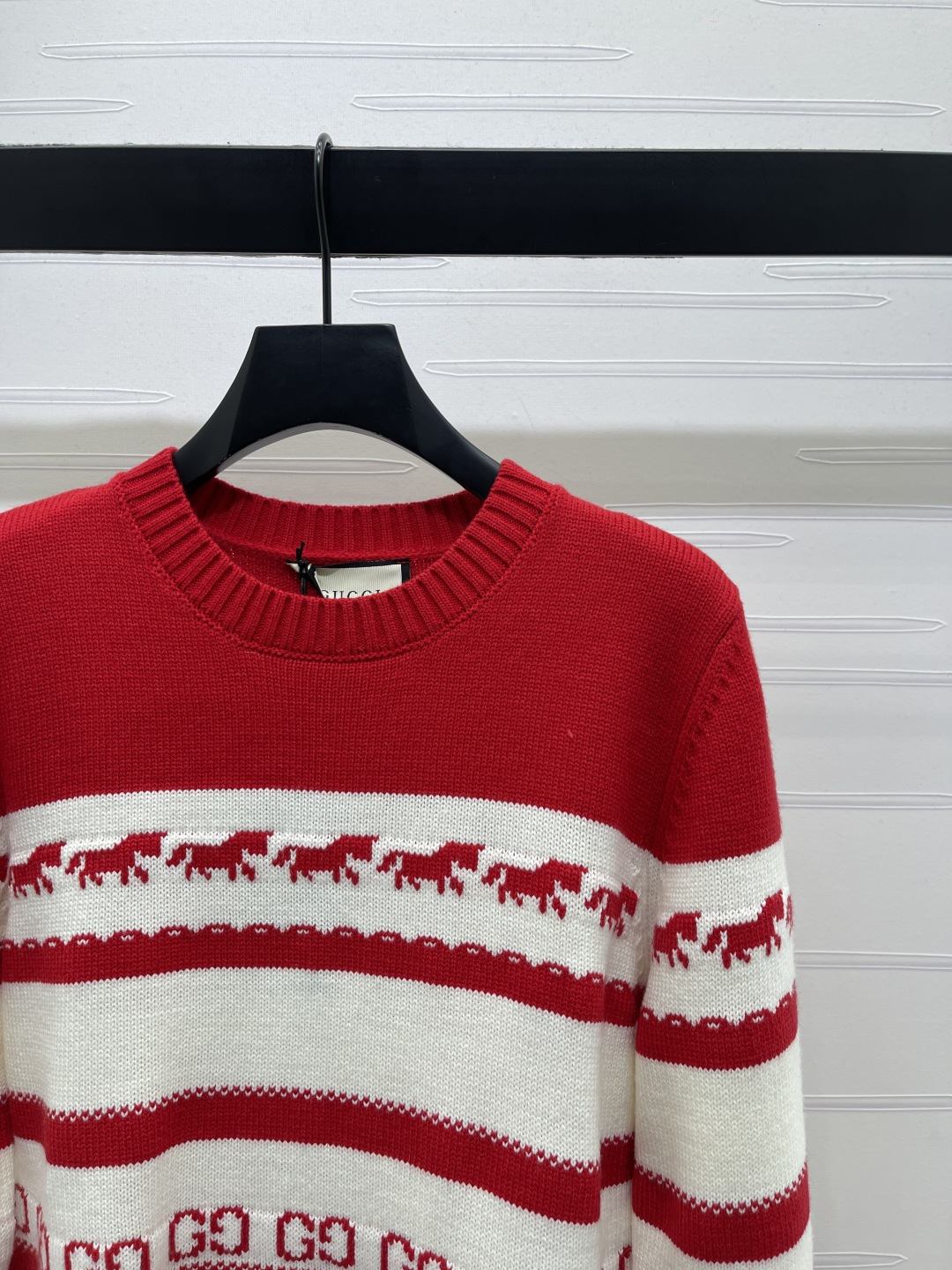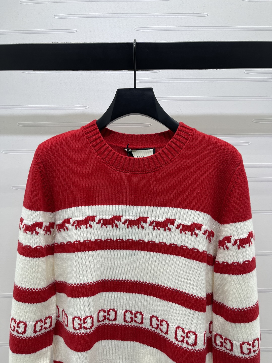 Details: Autumn-Winter Horse-themed Striped Pullover Sweater, 2 Colors, 3 Sizes, High-End Custom, Fine Workmanship
