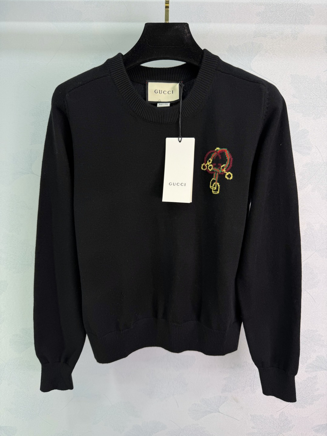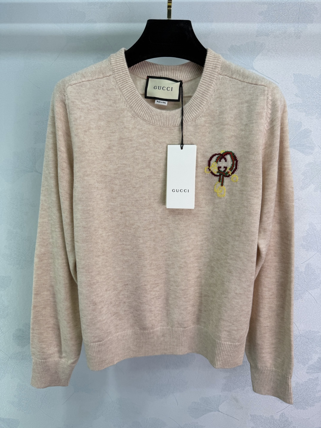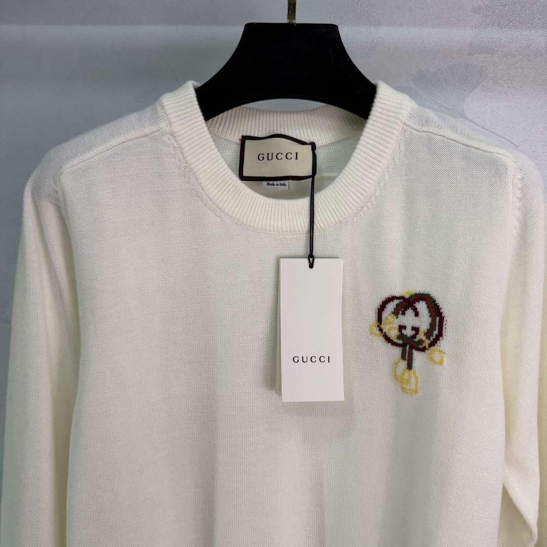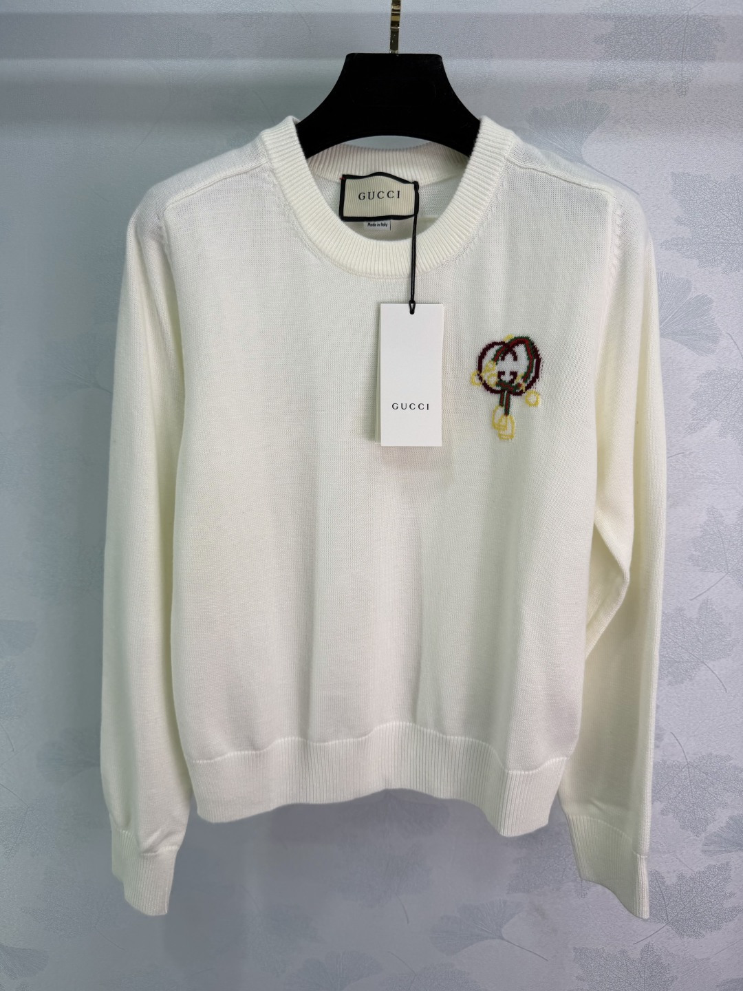 Details: Early spring knitted sweater with embroidered letters and logo, custom wool yarn, comfortable and stylish, regular fit.