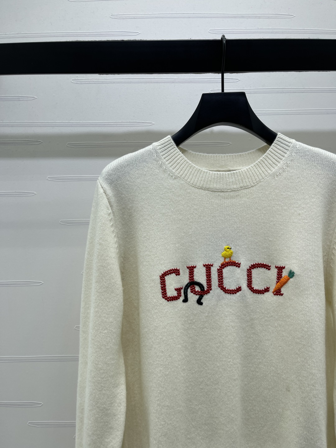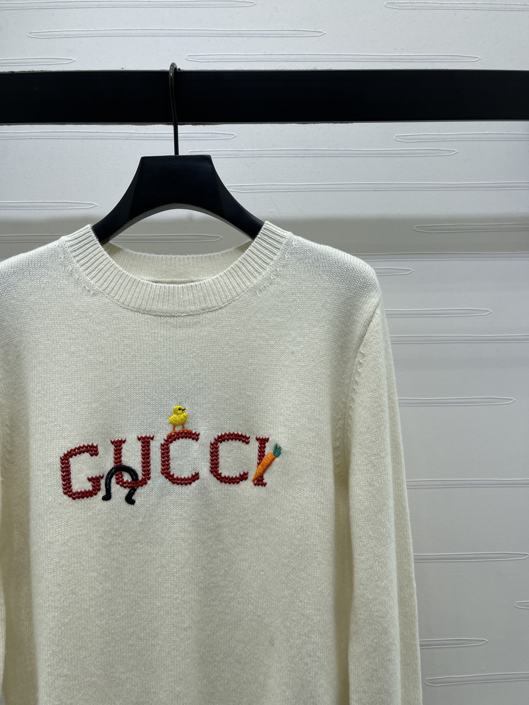 Details: Spring New Knitted Sweater with Hooked Letter Pattern, Custom Wool, 2 Colors 3 Sizes