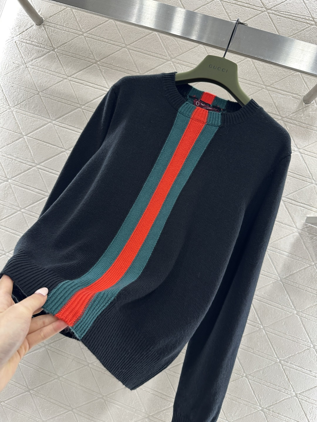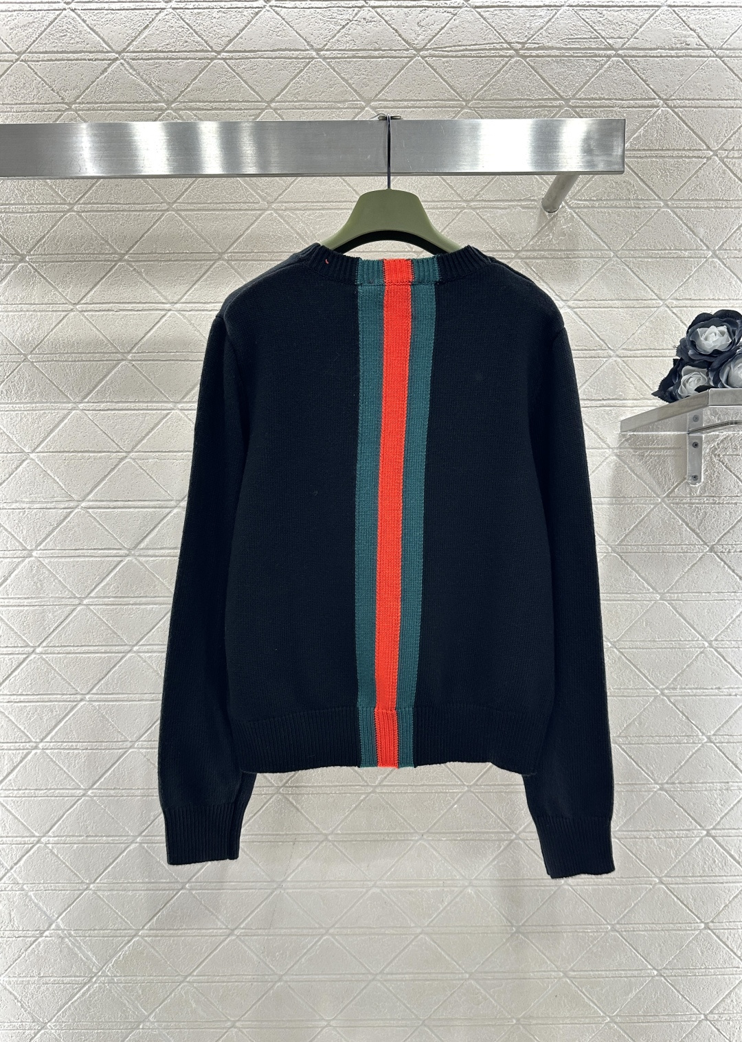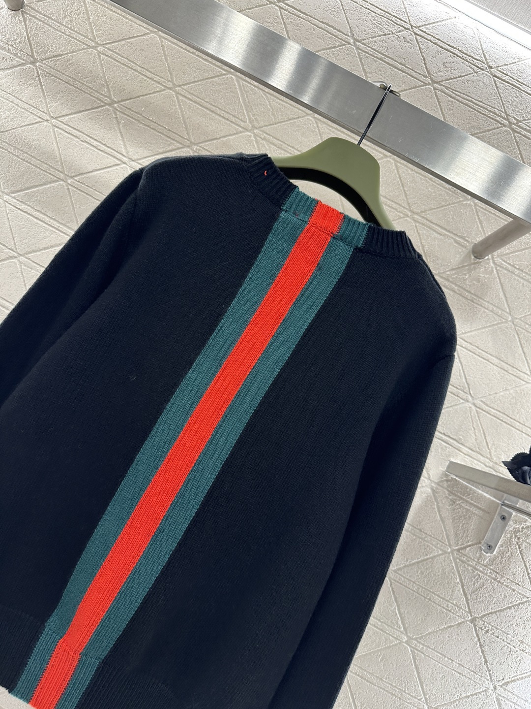 Details: Round-Neck Sweater with Striped Ribbon, 4 Colors, High-End Custom, Fine Craftsmanship