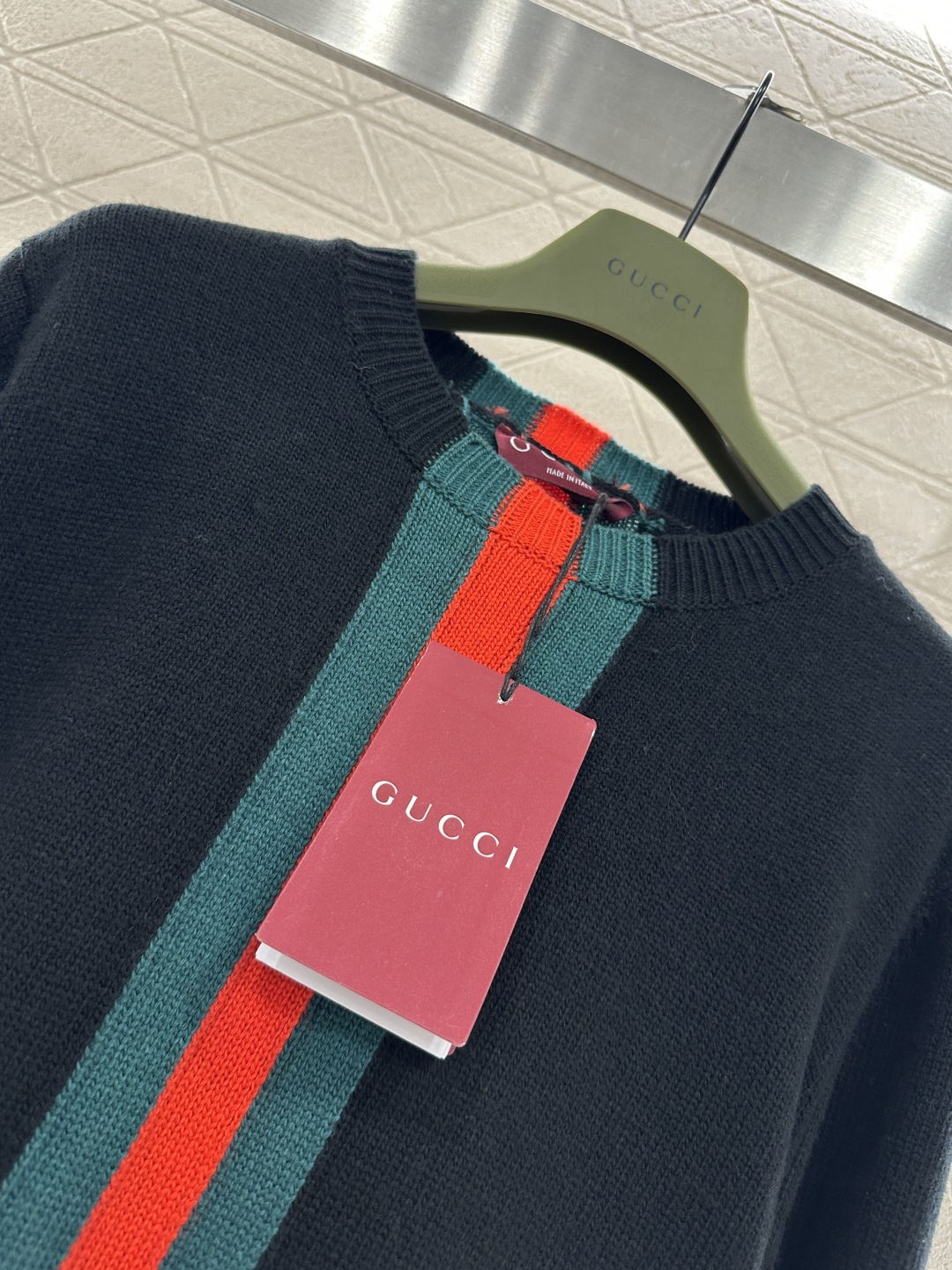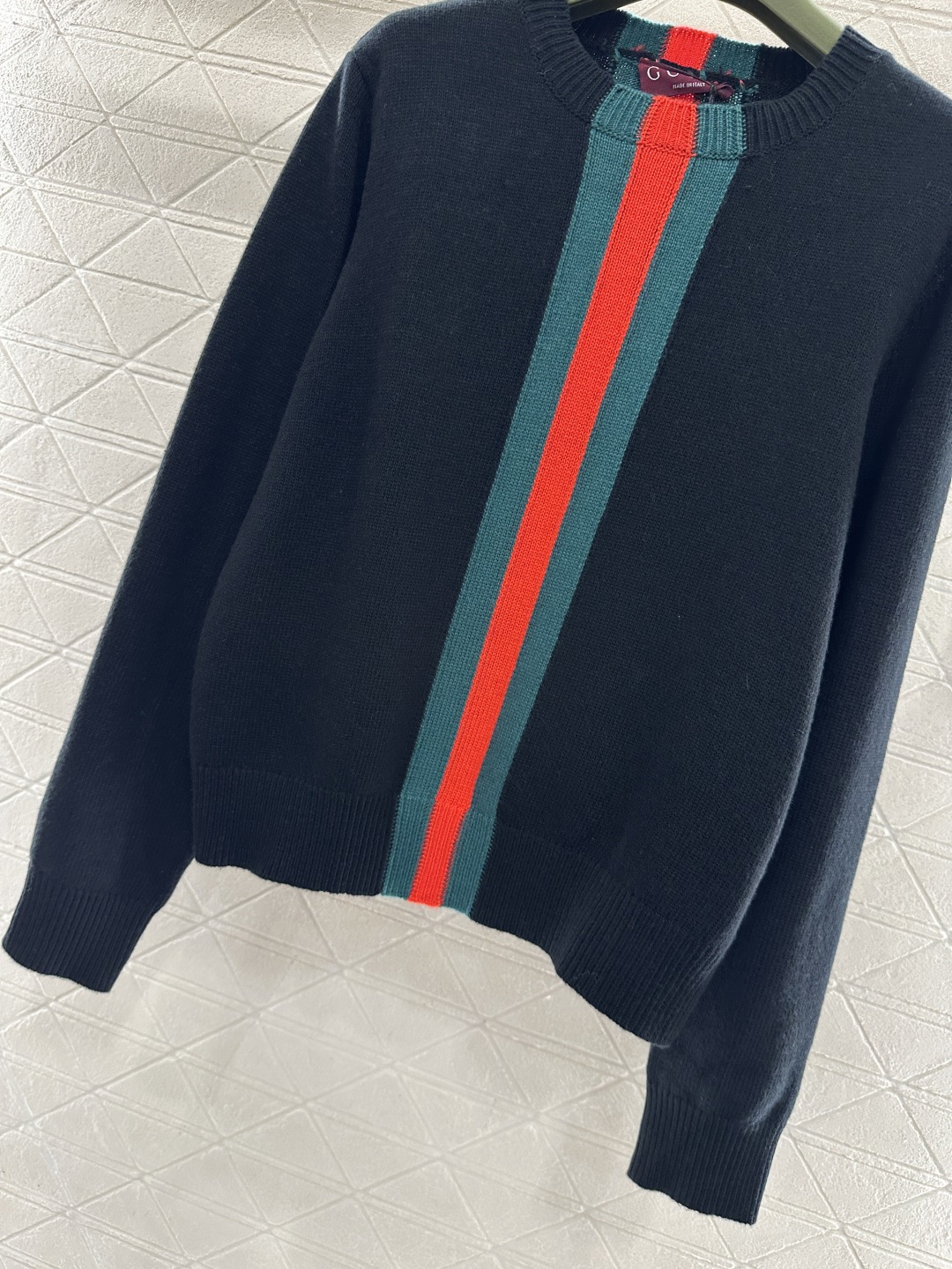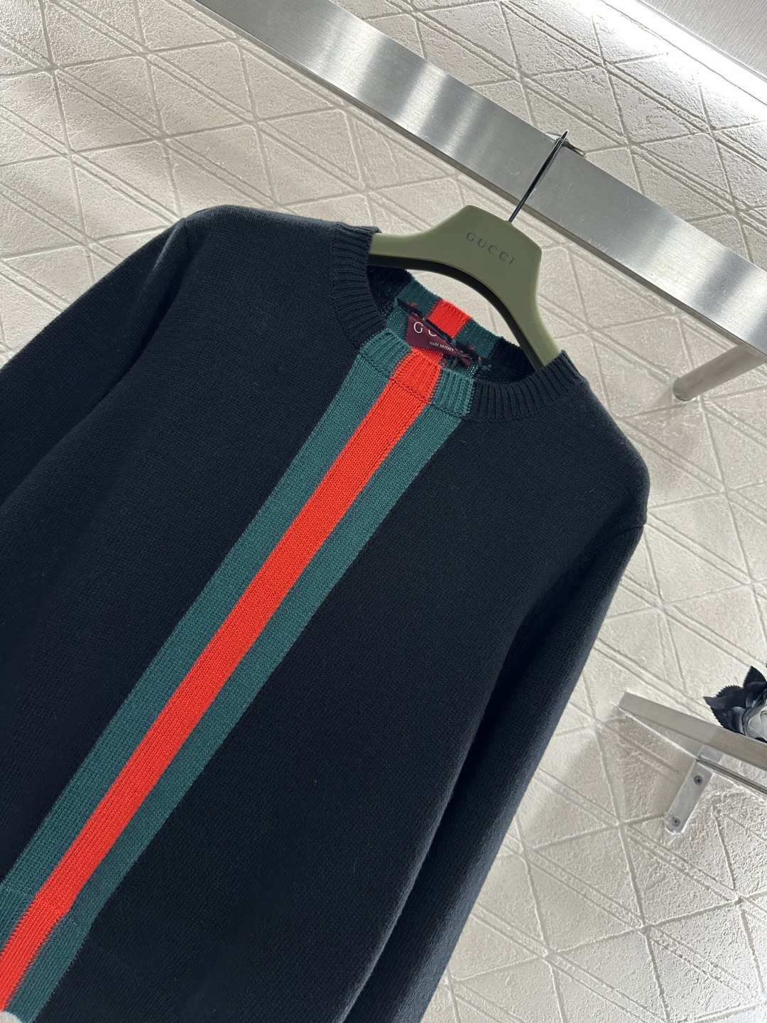 Details: Round-Neck Sweater with Striped Ribbon, 4 Colors, High-End Custom, Fine Craftsmanship