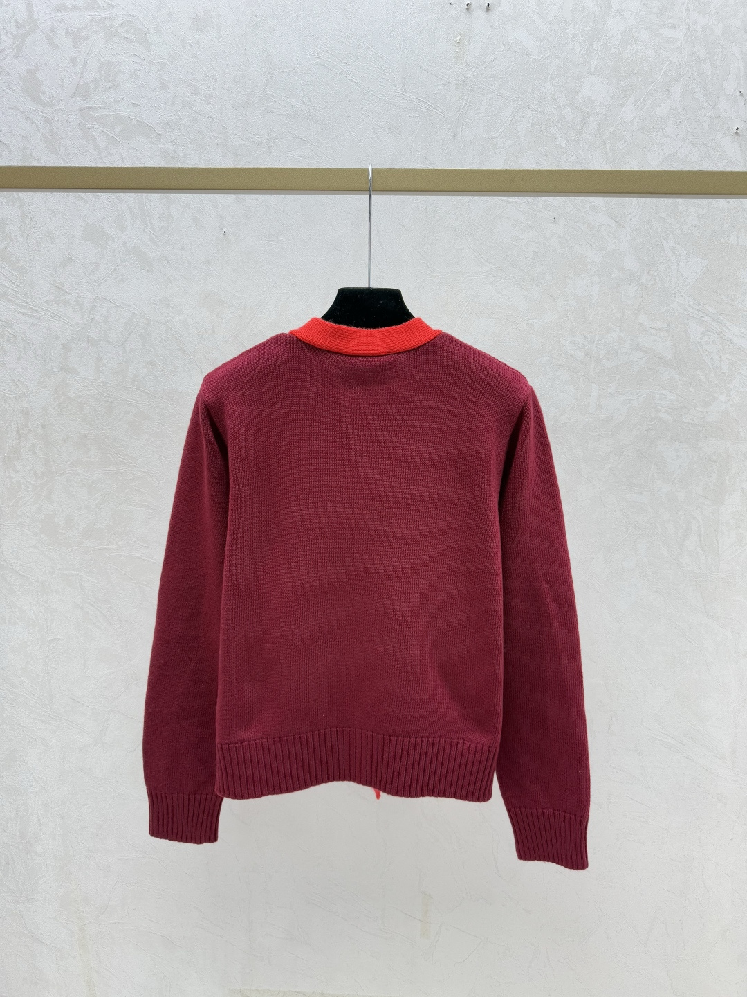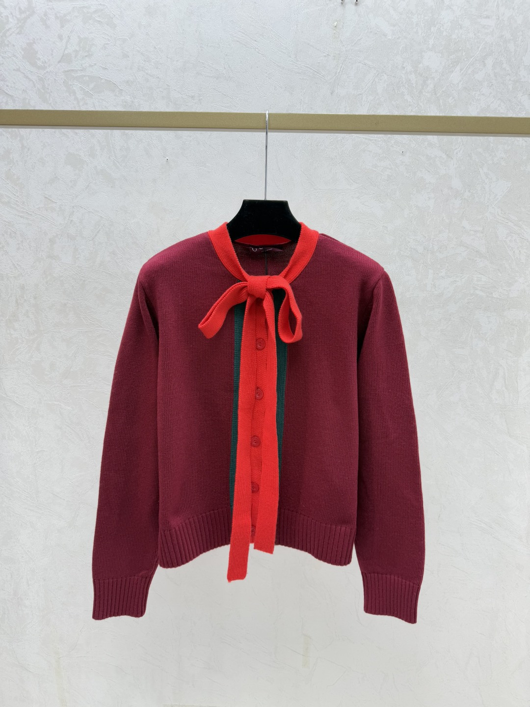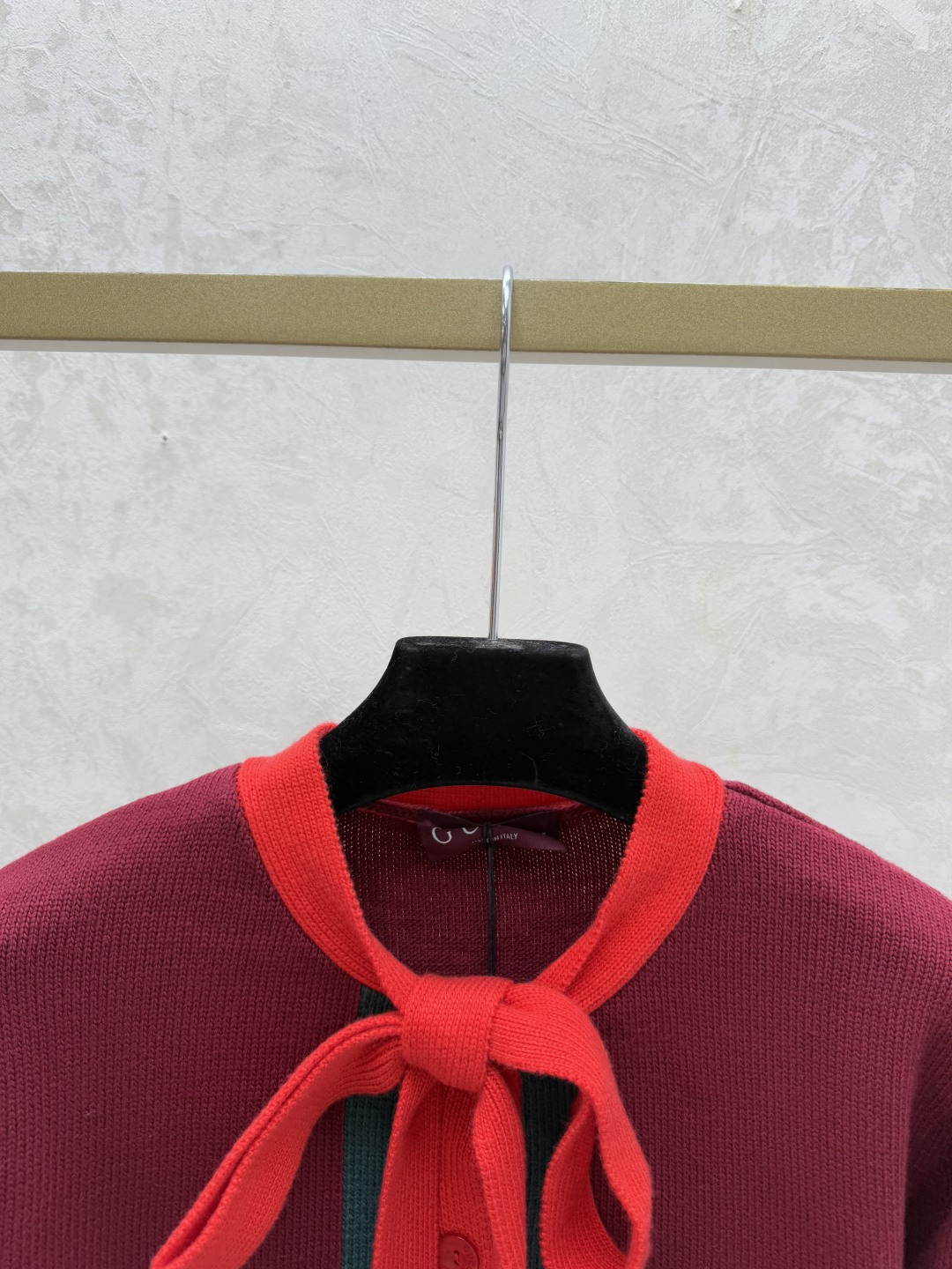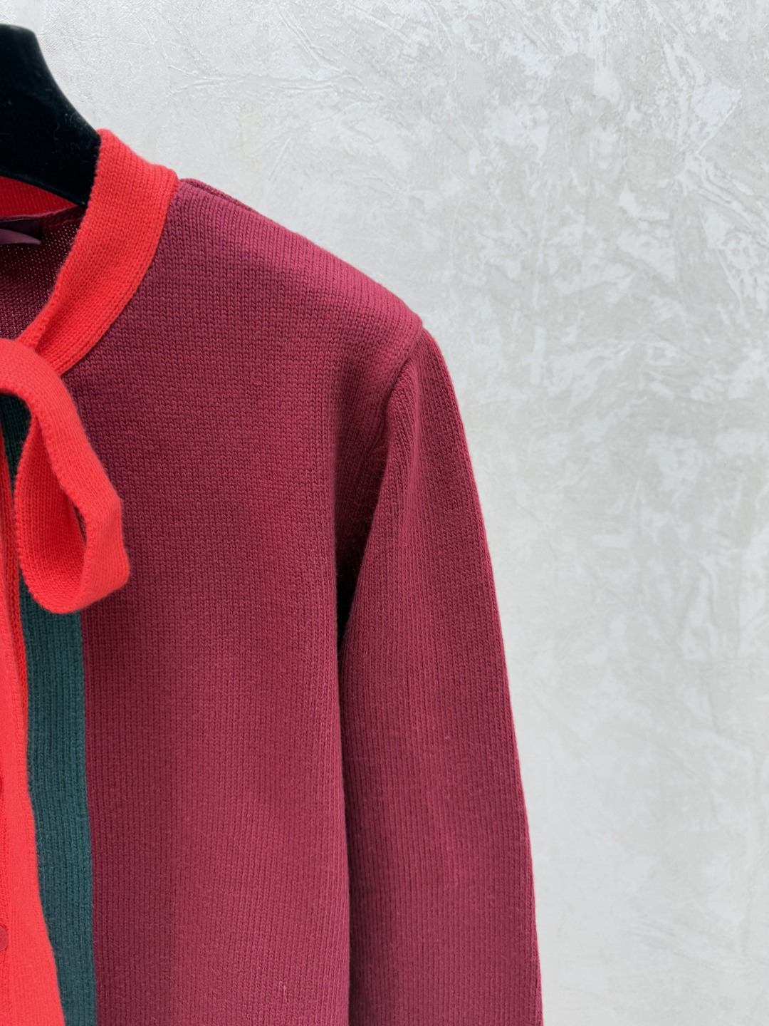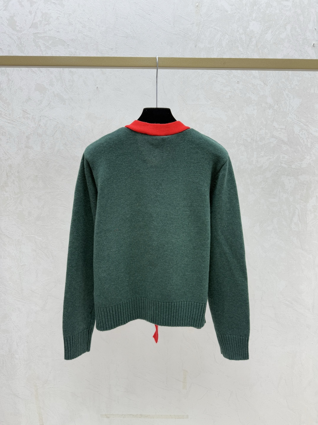 Details: Early autumn new collared knitted long - sleeve with bowknot. Colors available: red, green. Sizes: 36, 38, 40. High - end customization, fine workmanship