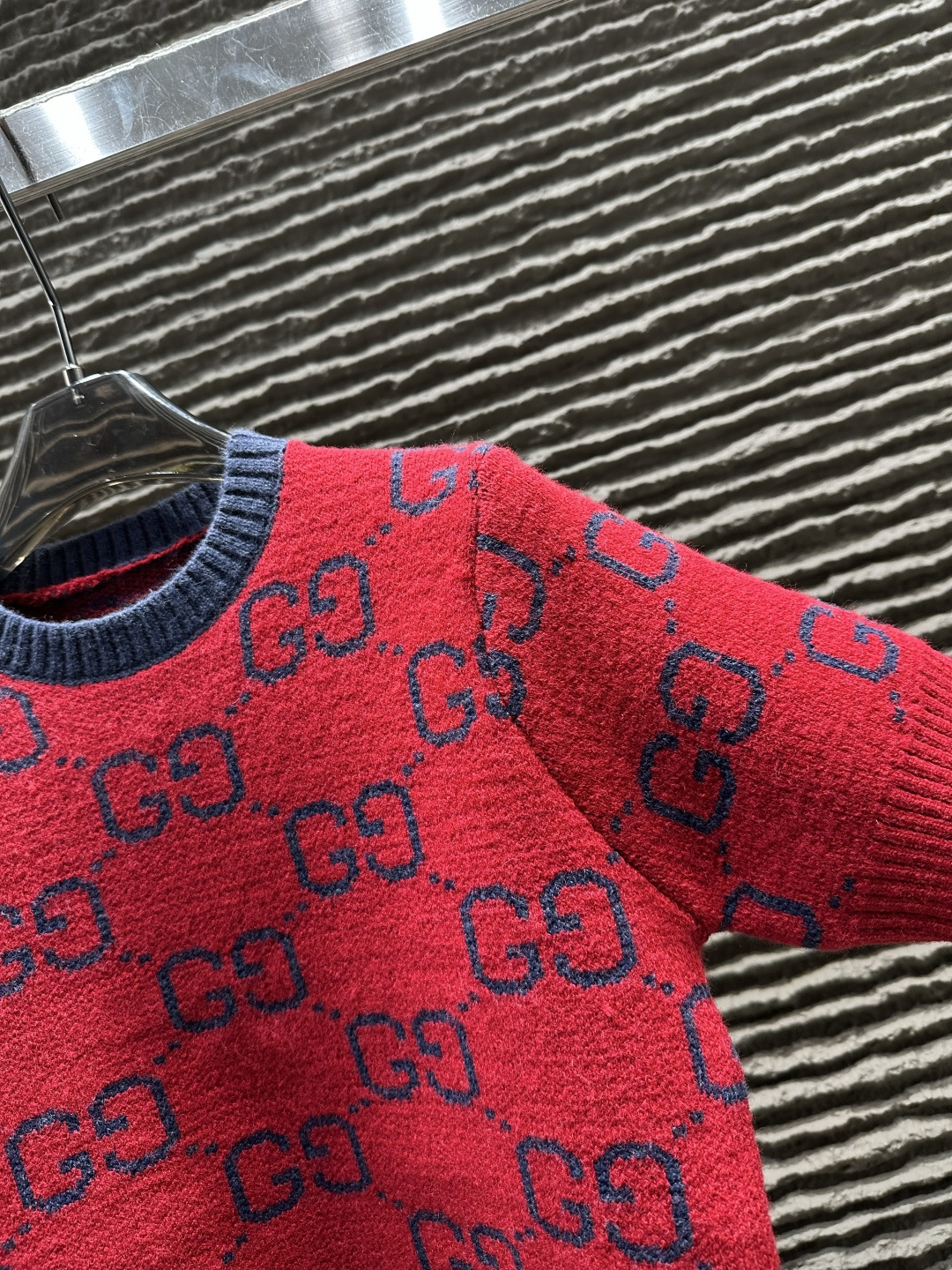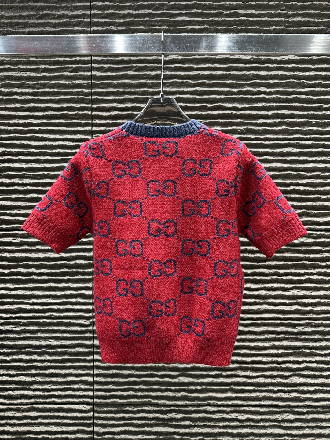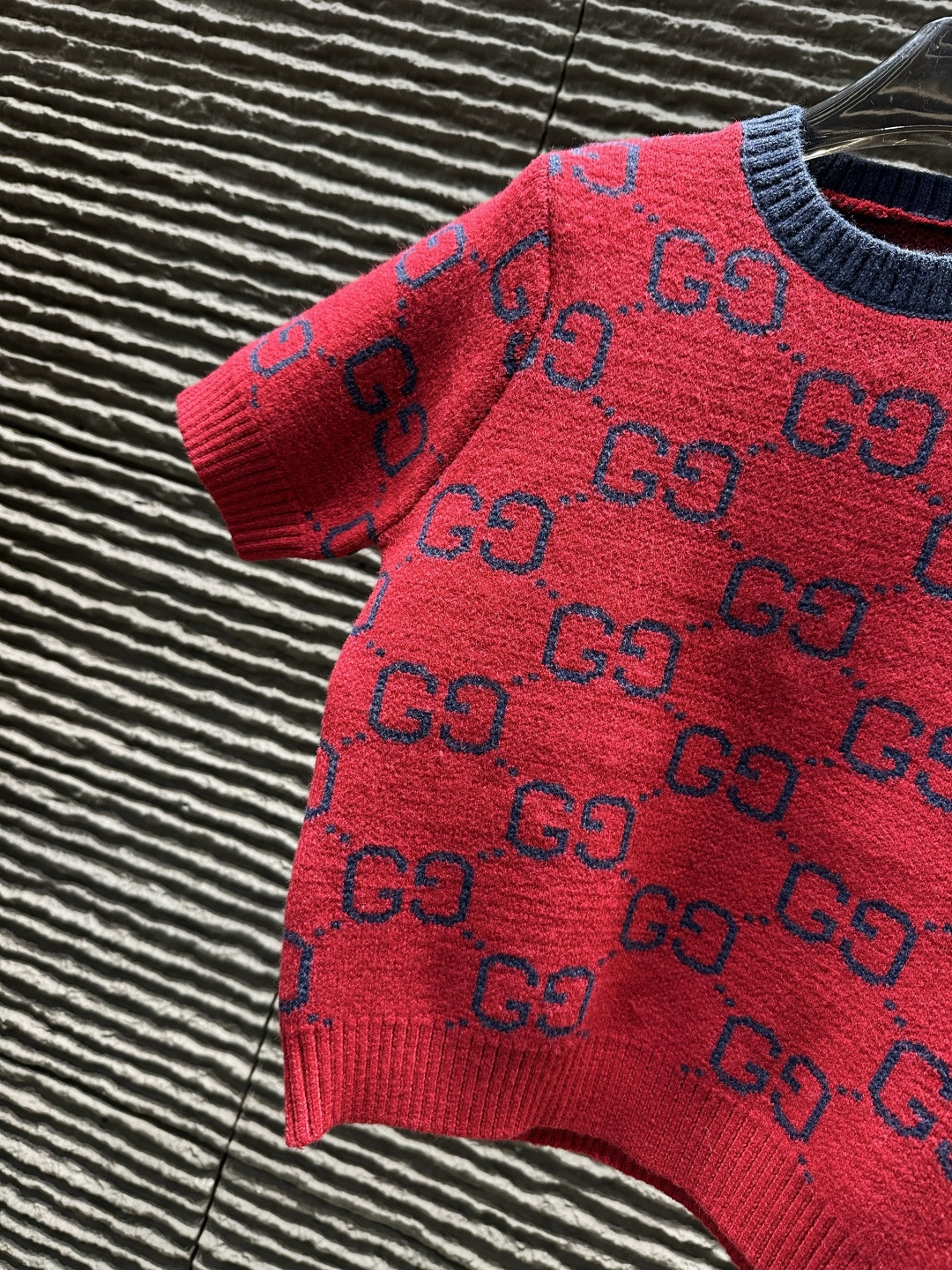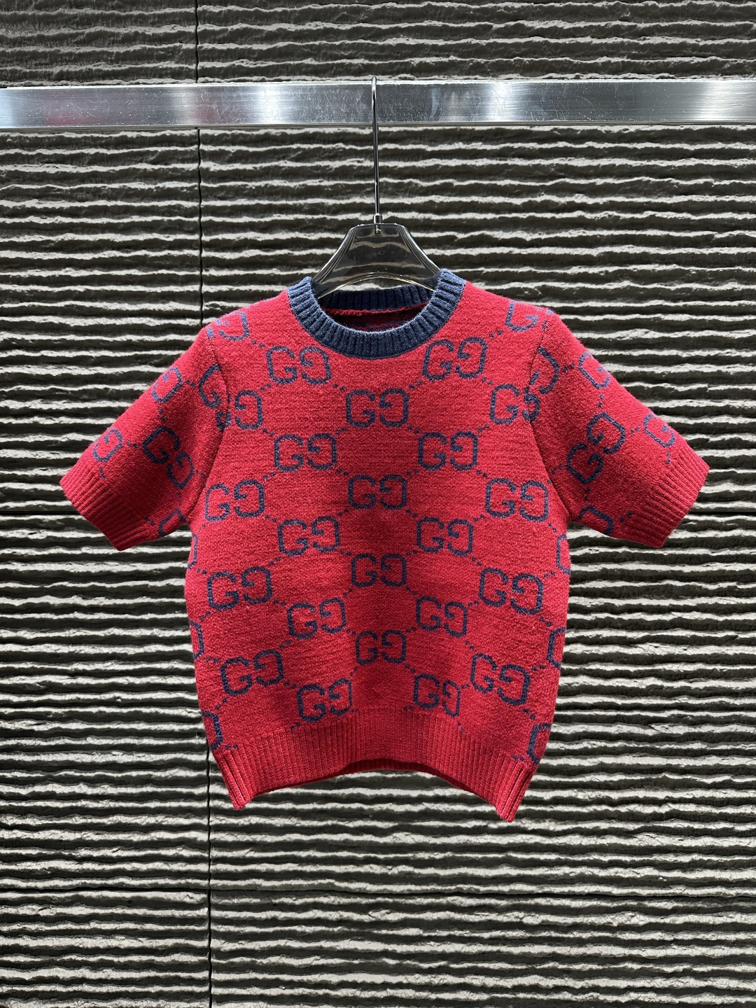 Details: All-over embroidered letter knitted short-sleeve, high-end custom, fine workmanship.