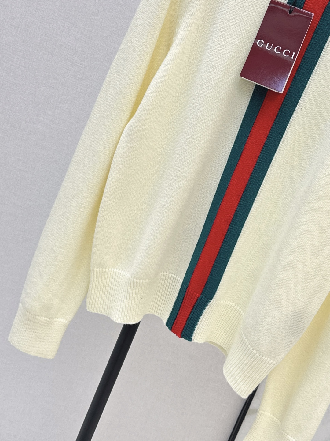 Details: Early spring round-neck cashmere sweater with vertical striped webbing, soft to the touch and stylish in appearance.