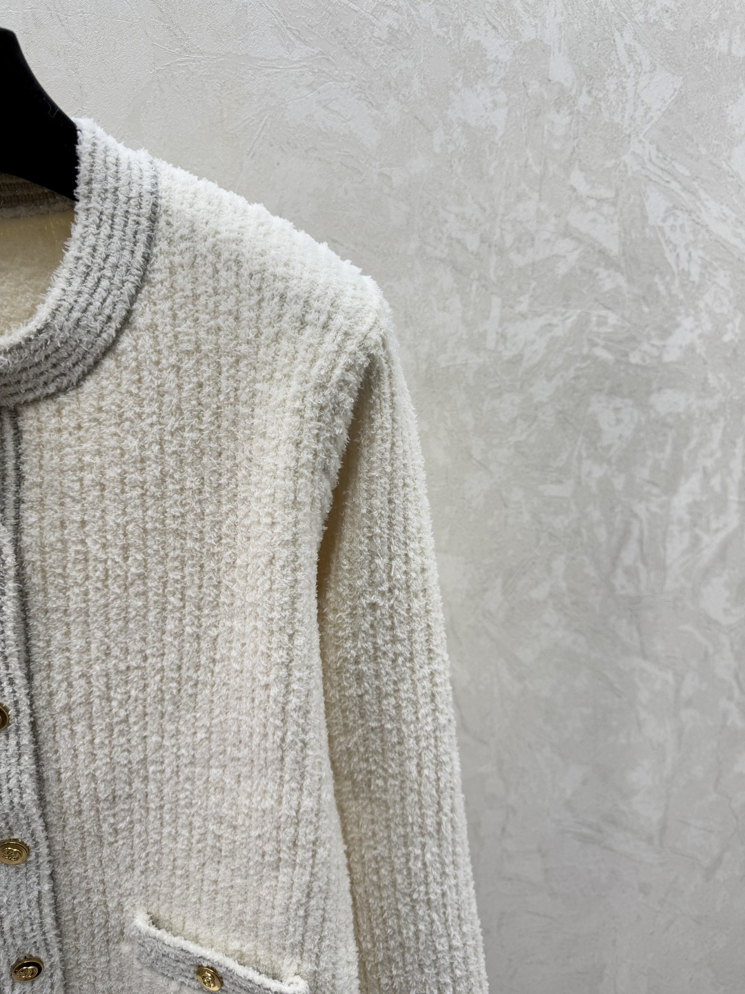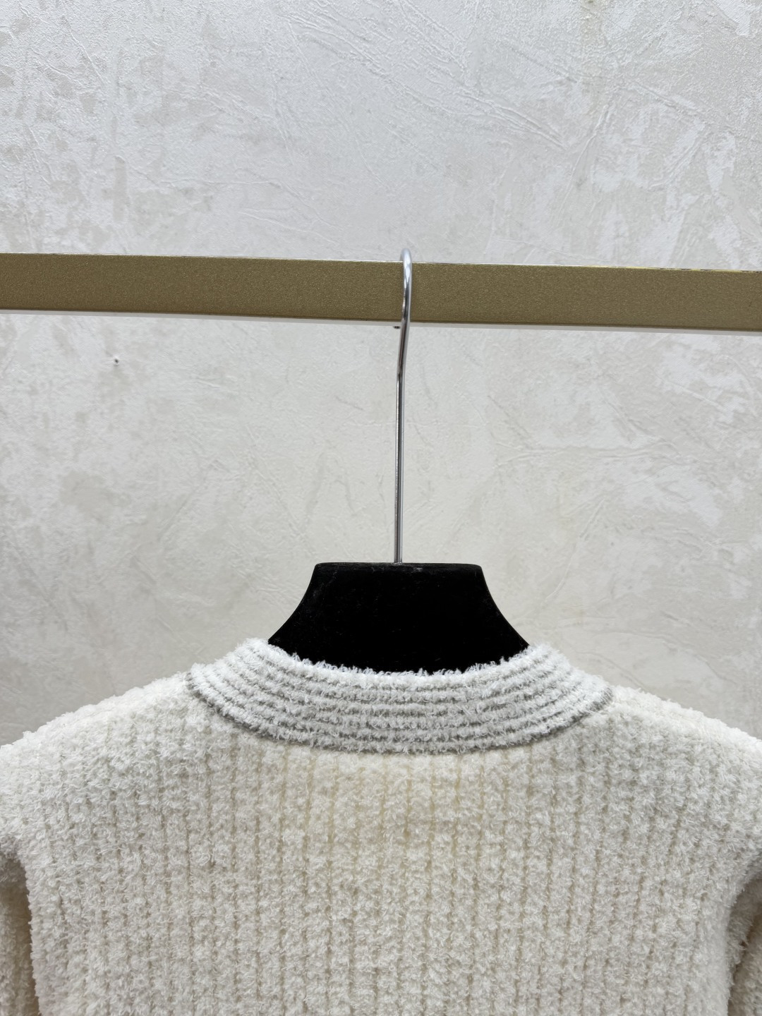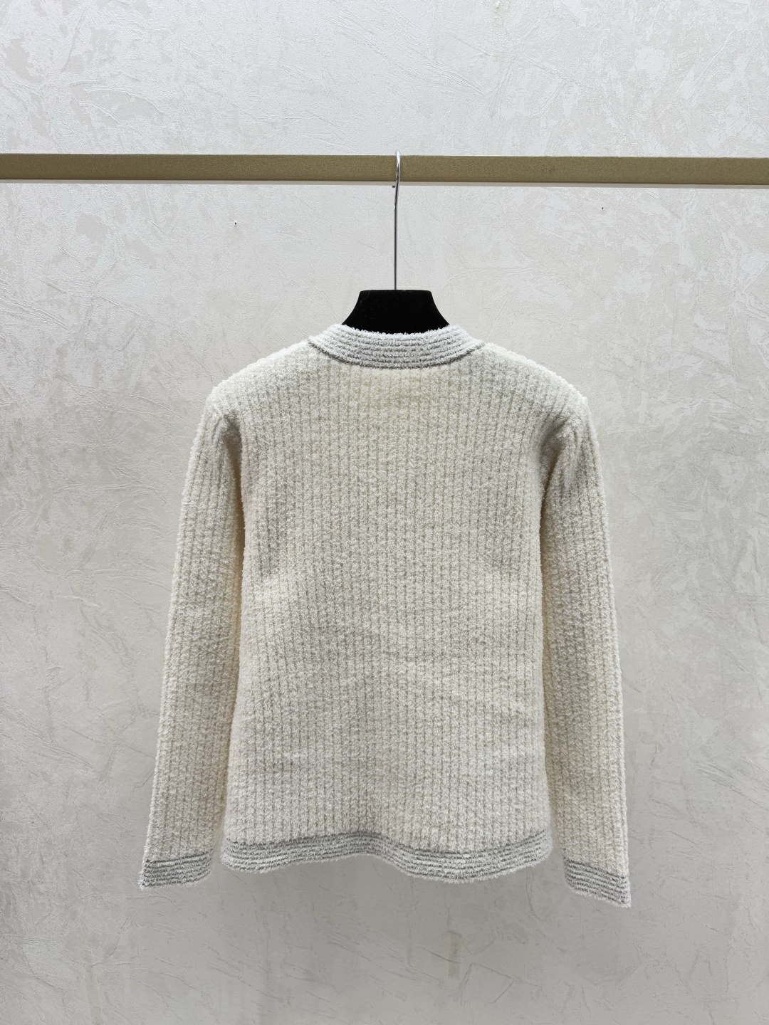 Details: Early autumn color-blocked round neck simple knitted long-sleeved cardigan in white, sizes 36-40
