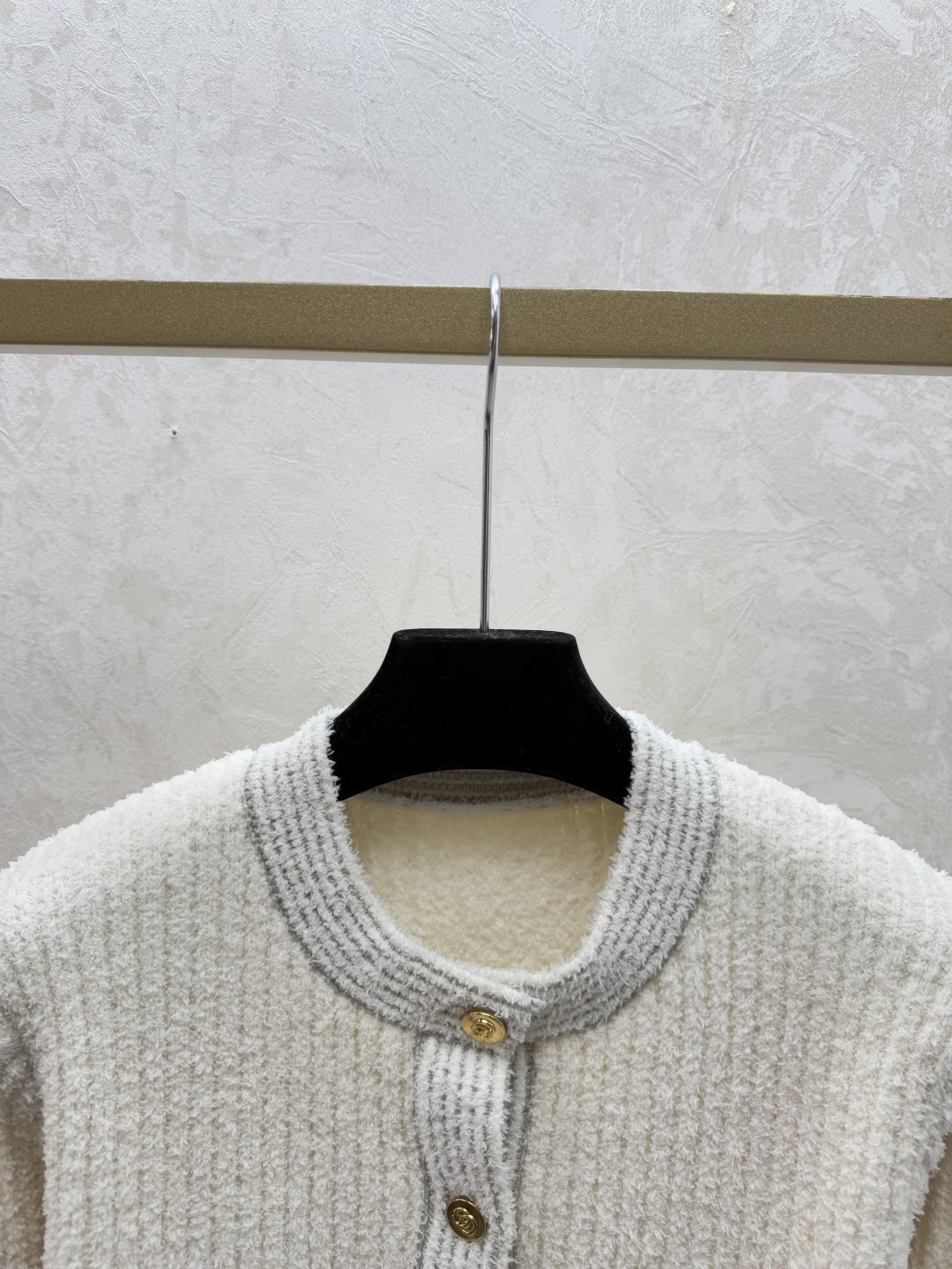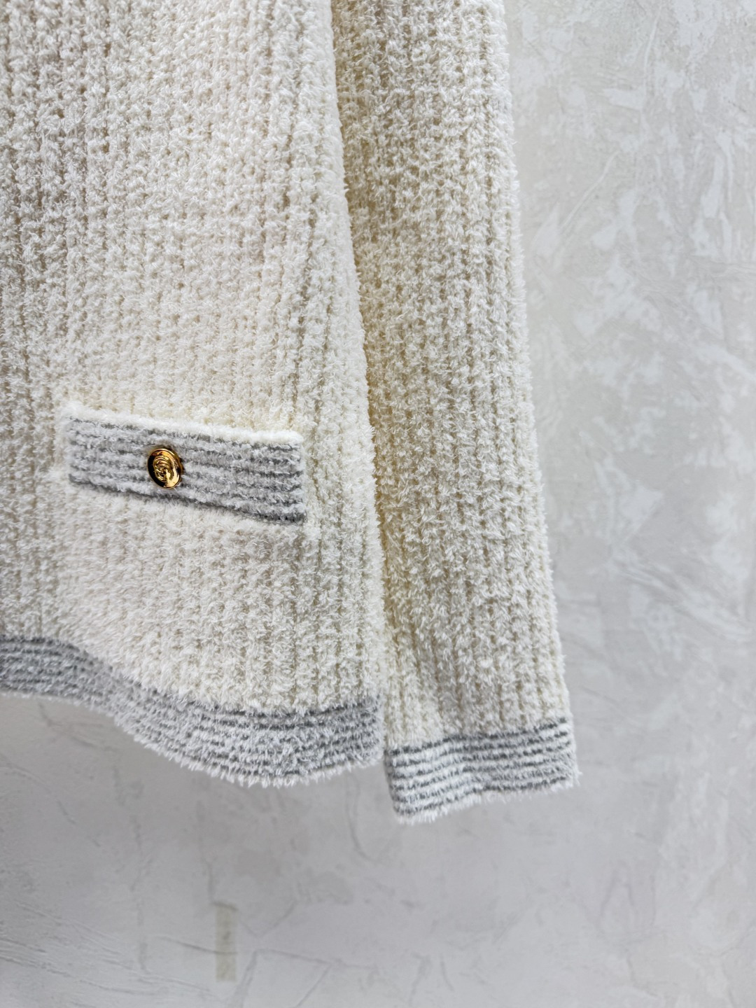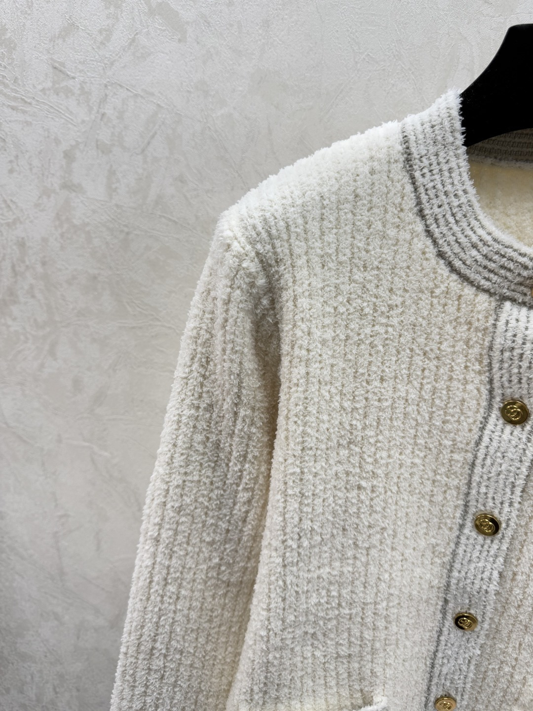 Details: Early autumn color-blocked round neck simple knitted long-sleeved cardigan in white, sizes 36-40