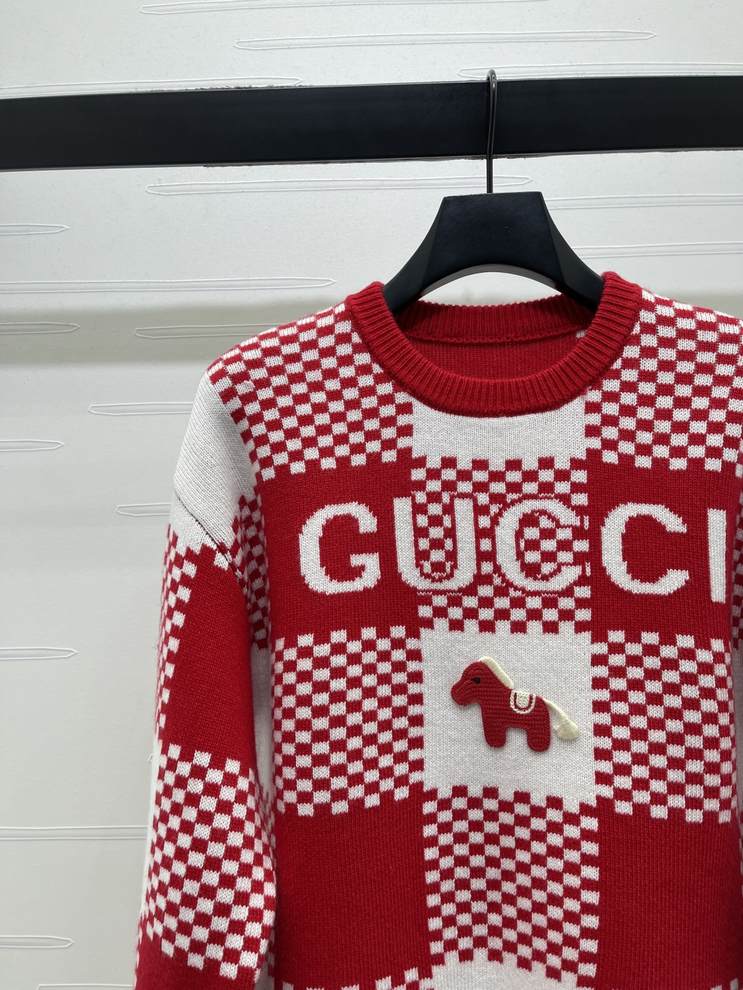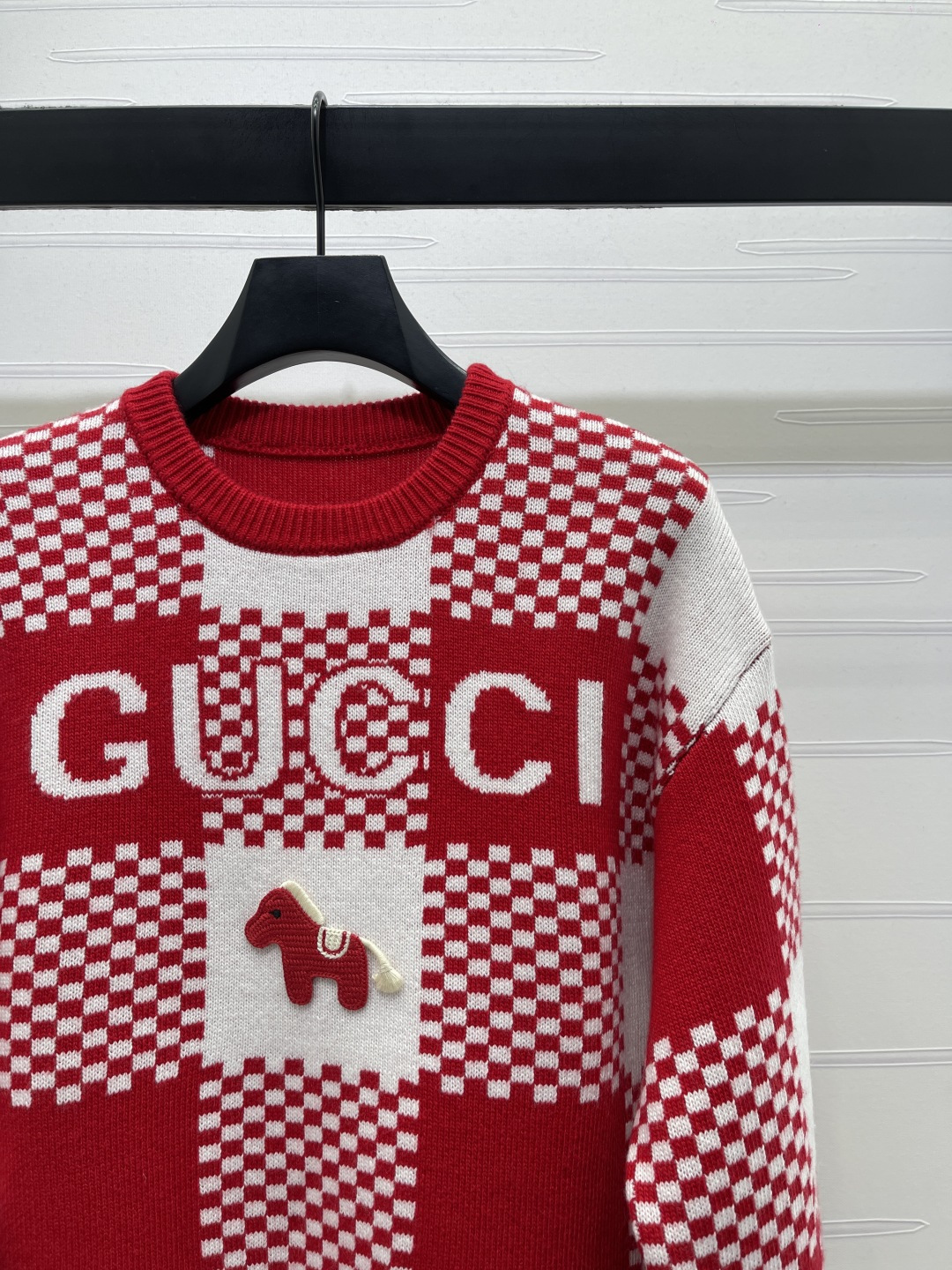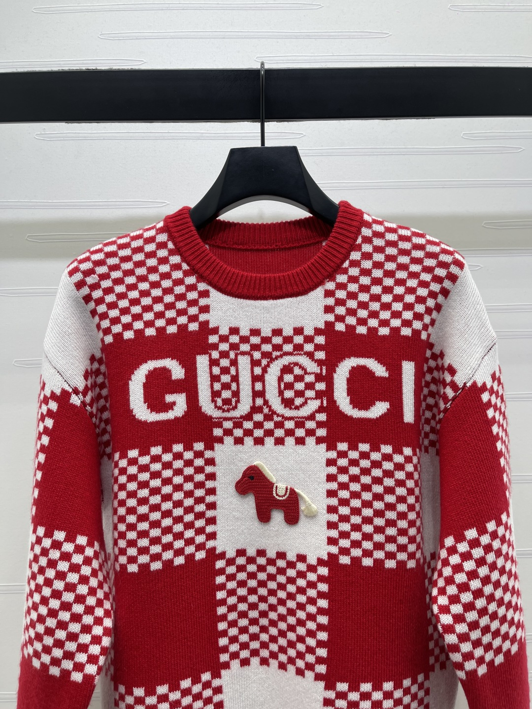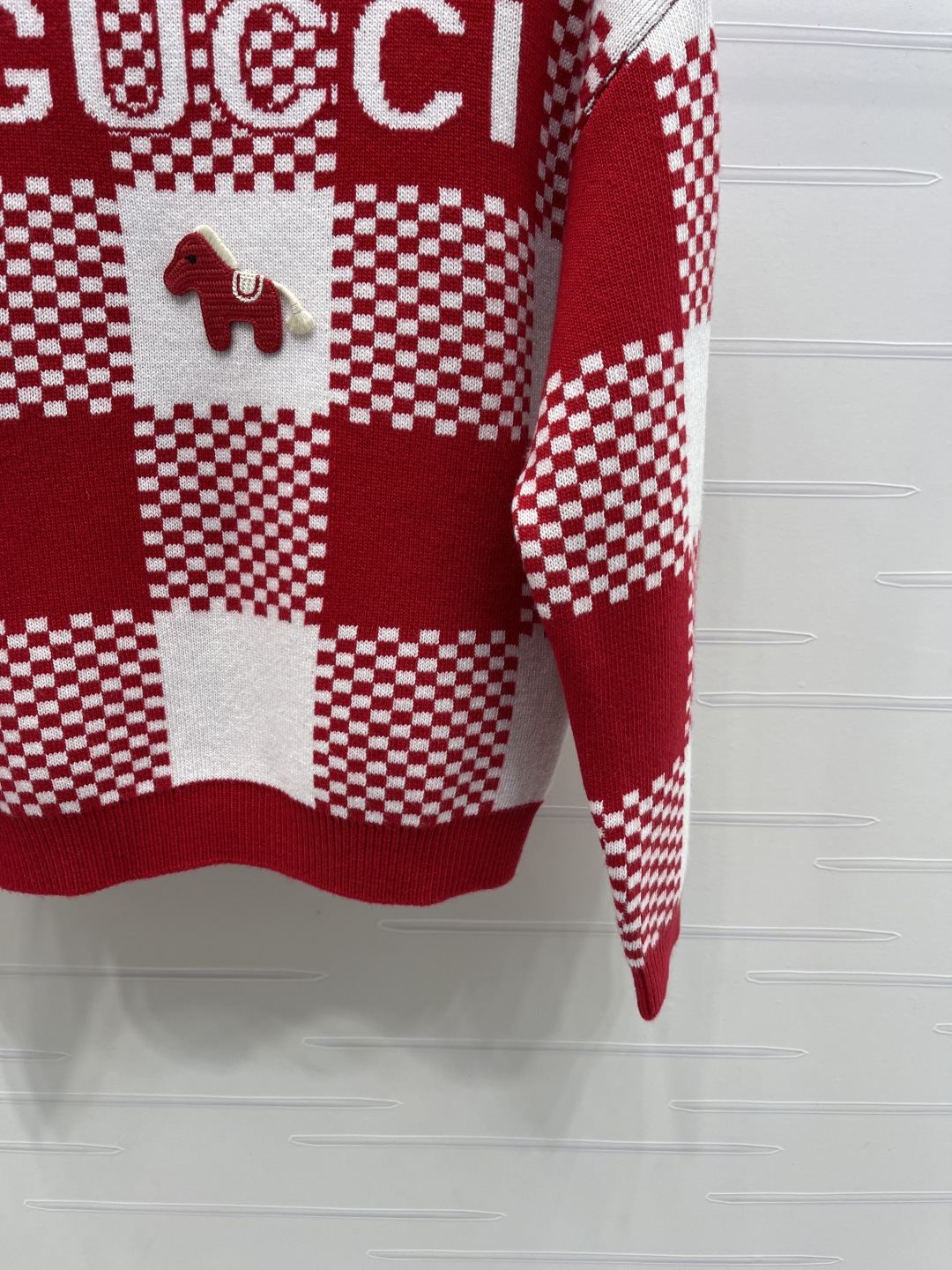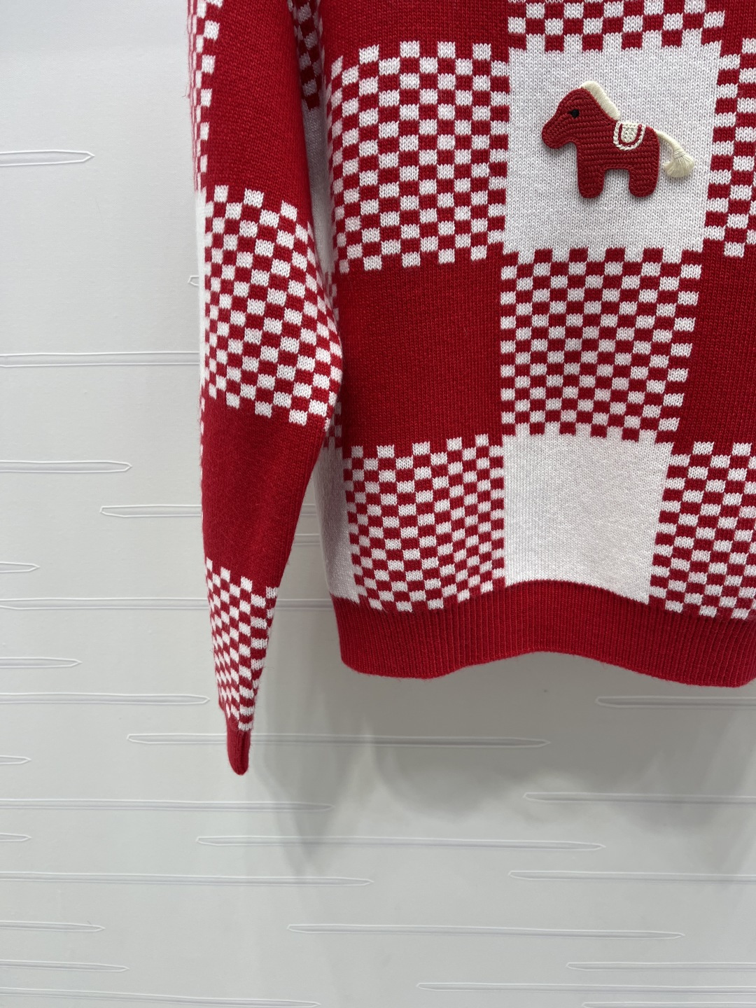 Details: Early Spring Checkered Horse Knit Sweater, Premium Custom-made Wool, Cozy and Retro