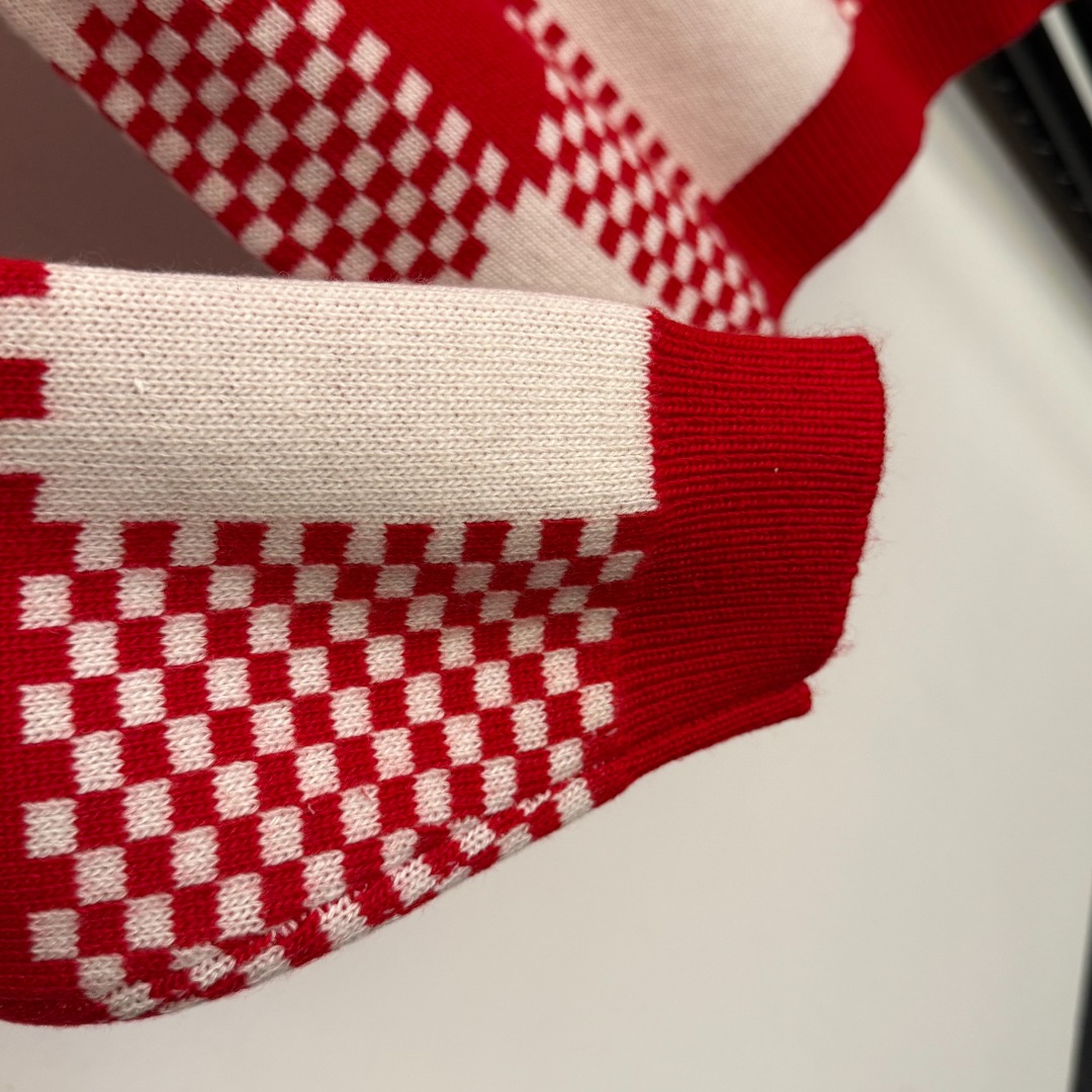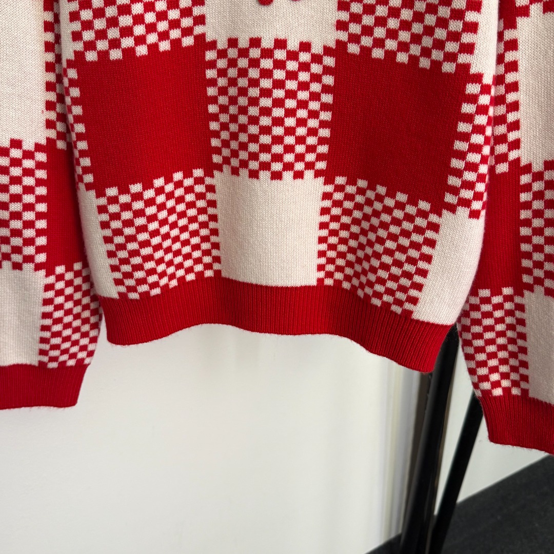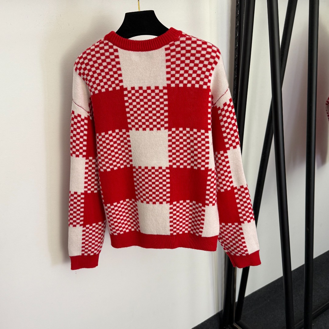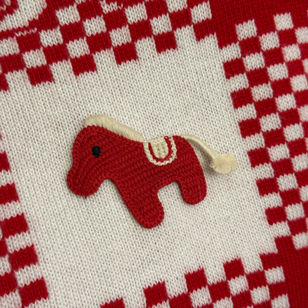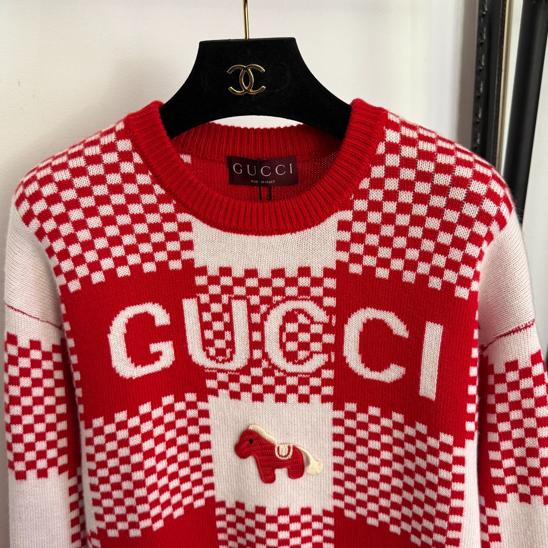 Details: New cute pony embroidered color - blocked grid wool cashmere knitted sweater, red, SML sizes