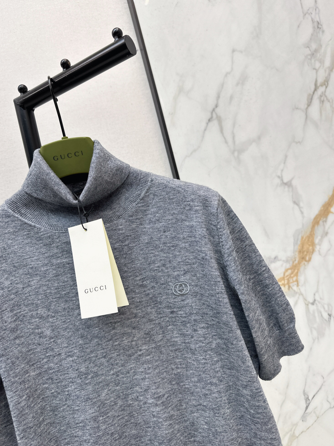 Details: Early spring wool high-neck short-sleeved knitted top, gentle, versatile, available in SML sizes