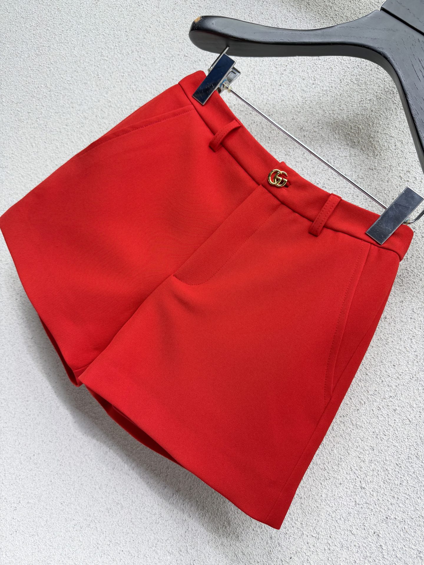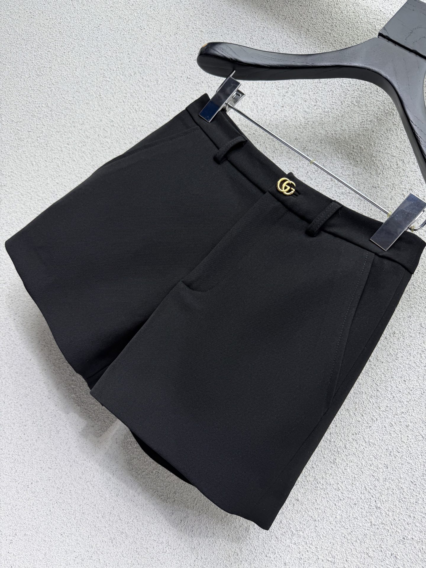 Details: Men s suit shorts with double G metal buttons, elegant, slimming, high-quality, two colors, SML sizes.