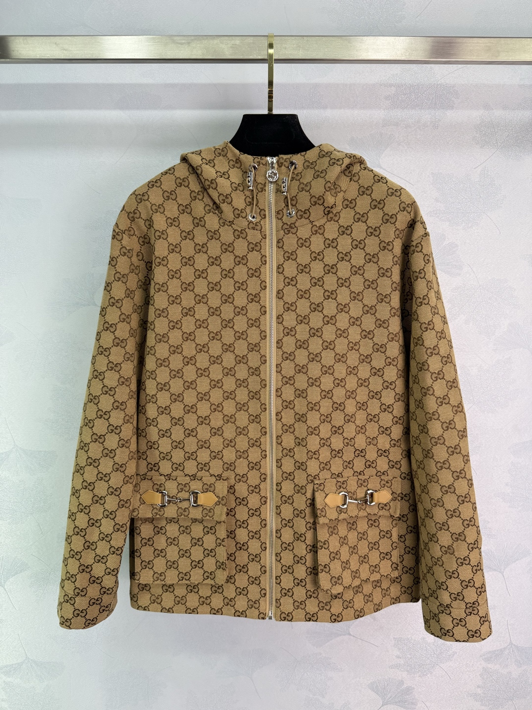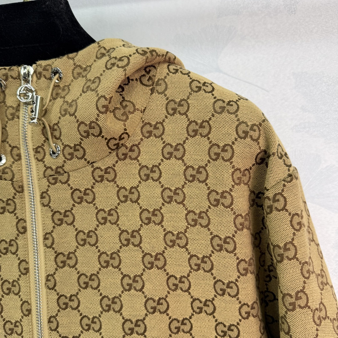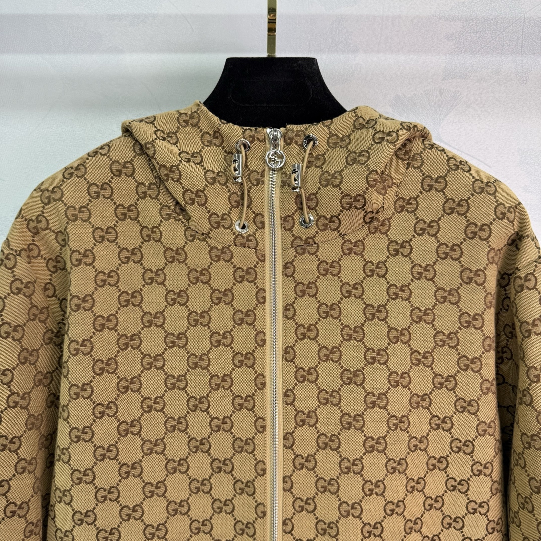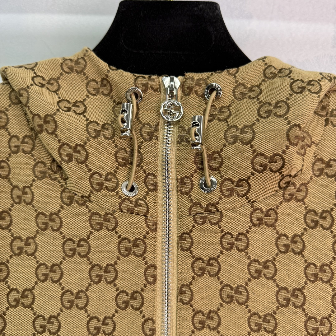 Details: new double G jacquard hooded coat, with adjustable waist and metal hardware, high-end custom with fine workmanship